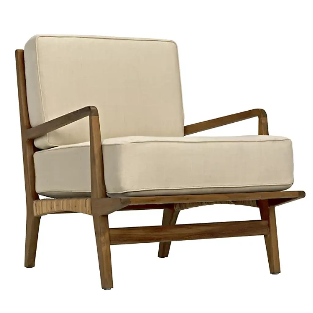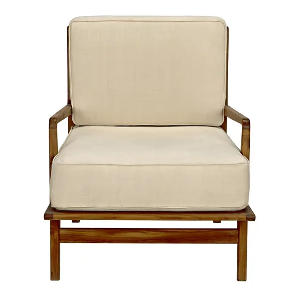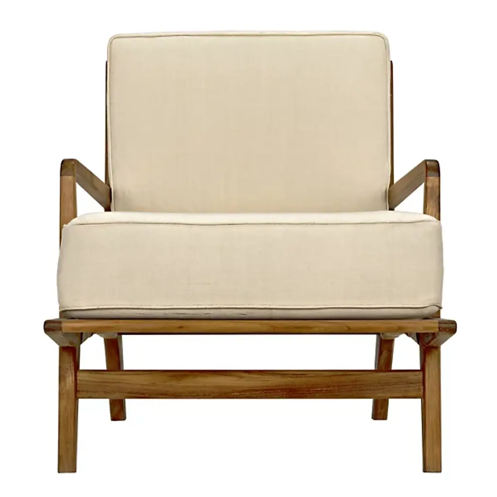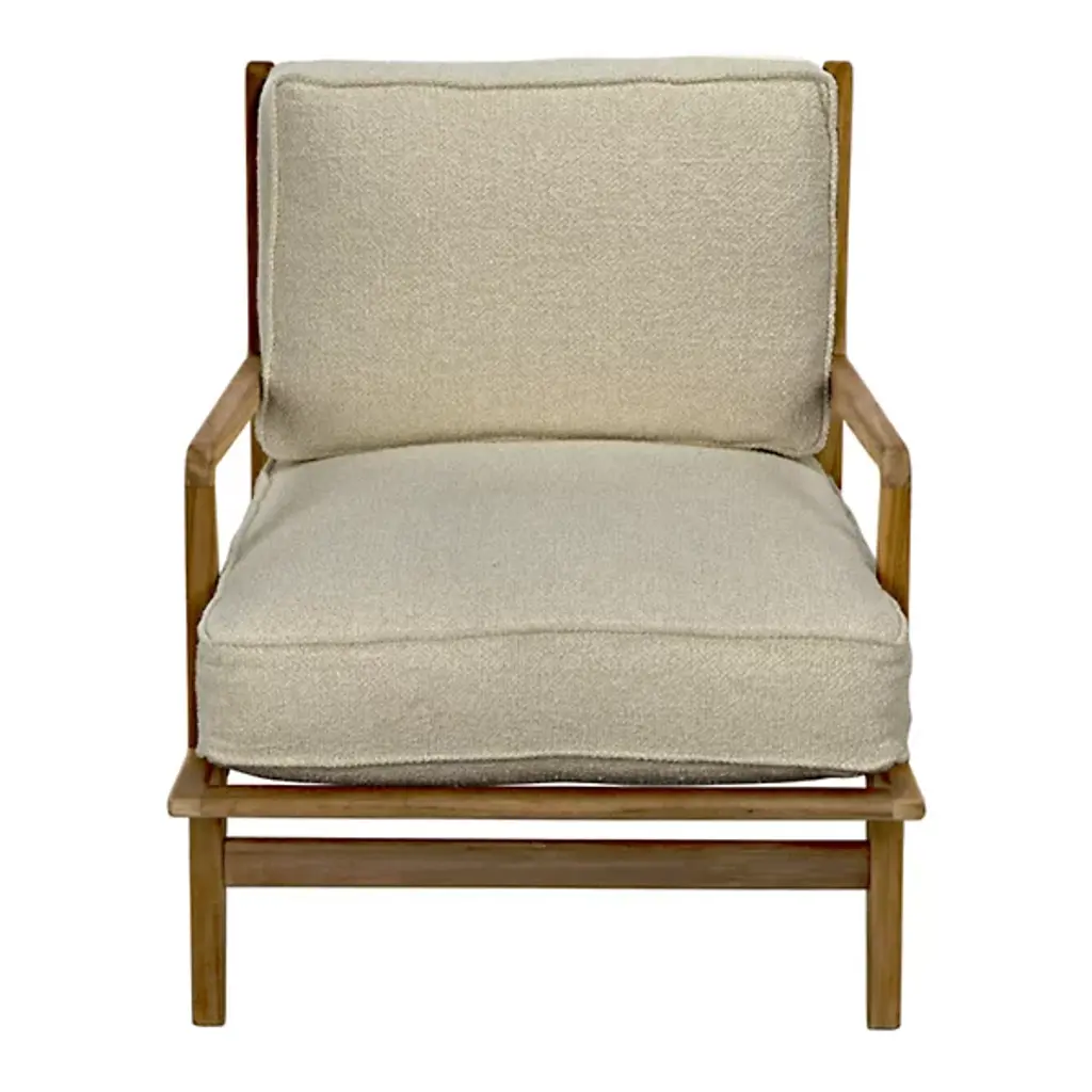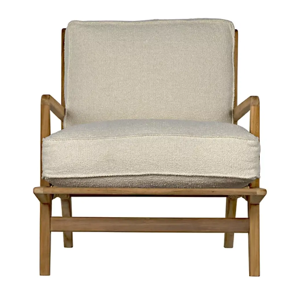 Give a stately retro-modern presence to interior living spaces with the Allister Chair from Noir. Made in Indonesia from smooth teak, it starts with an angular frame, using a weave across its lower section to support a plush foam and feather-fill seat and back cushion. The smooth wood and intricate grain contrast well with the soft cushions, creating both comfort and clever appeal in a single simple package with notes of California Modern and Contemporary notes.