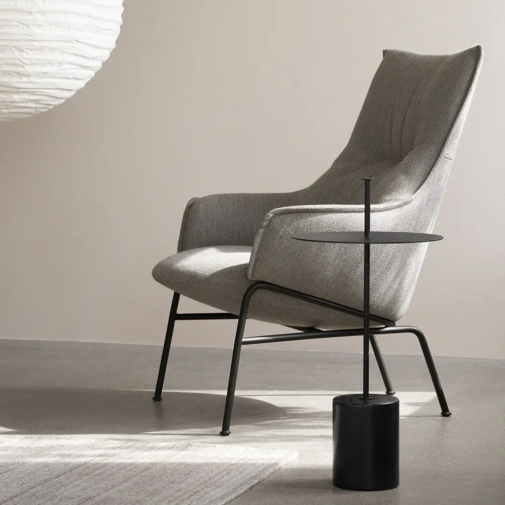 Matching footstool sold separately. Taking its design cues from the characteristic leaves of the Aloe plant, the upholstered shell of the Aloe Chair is designed with a strong outline refined by piping details along the edge, lightly suspended on a black powder-coated steel frame.