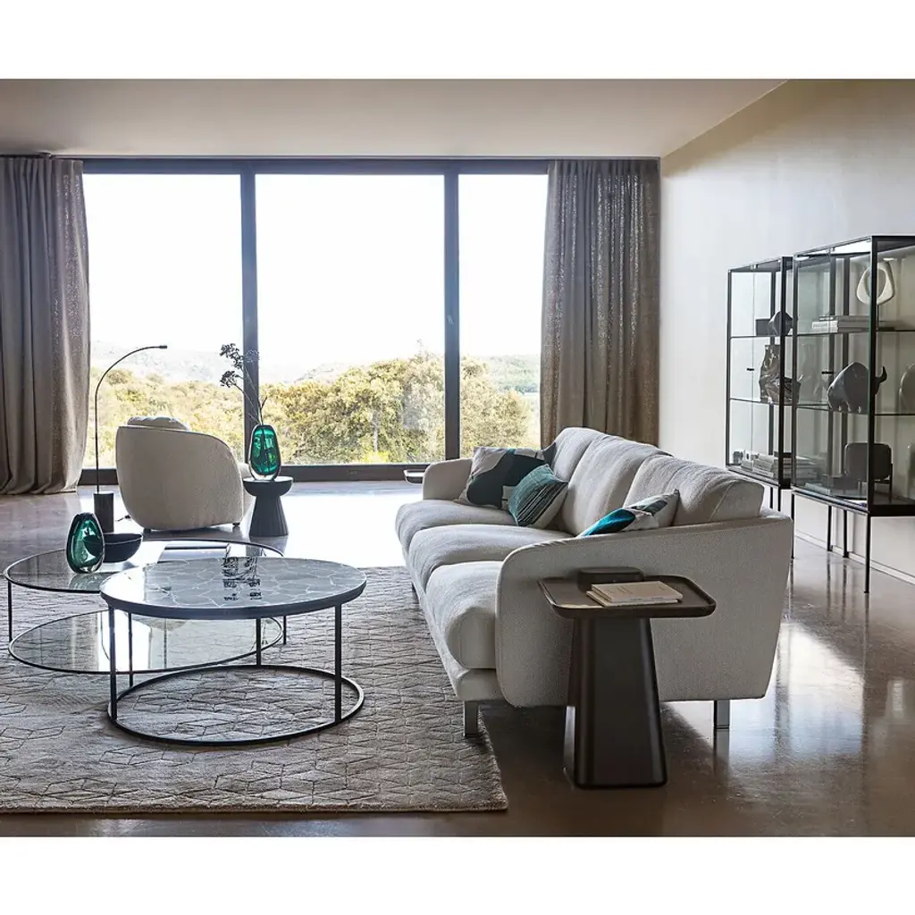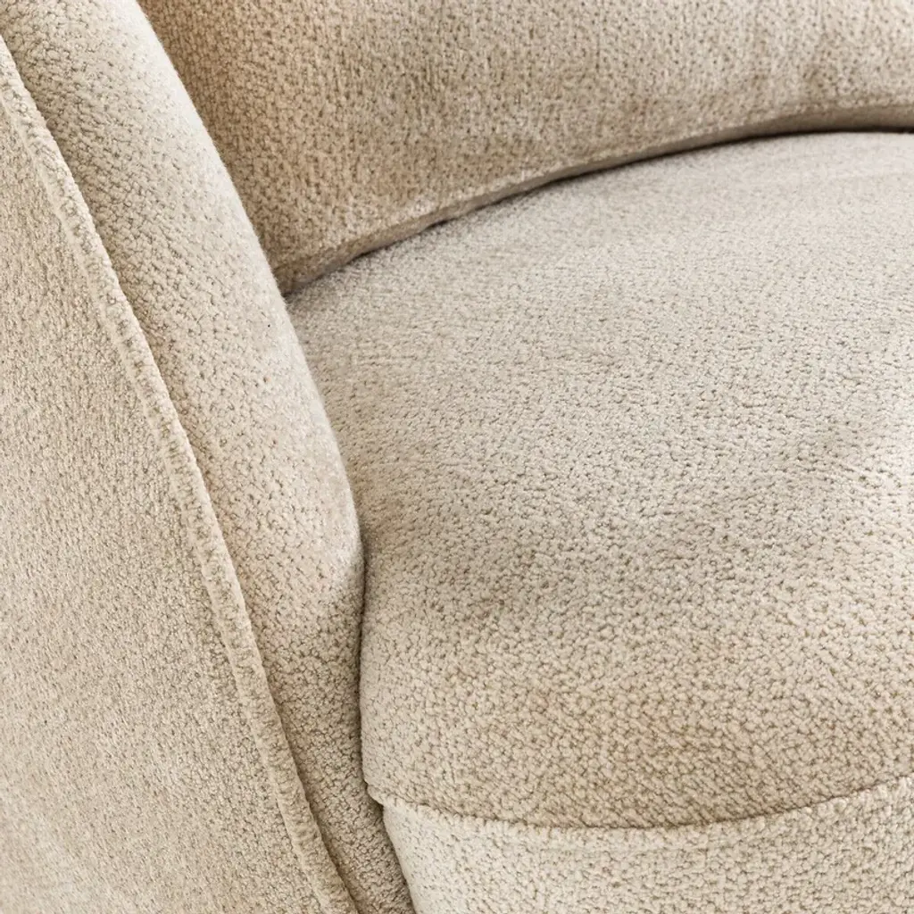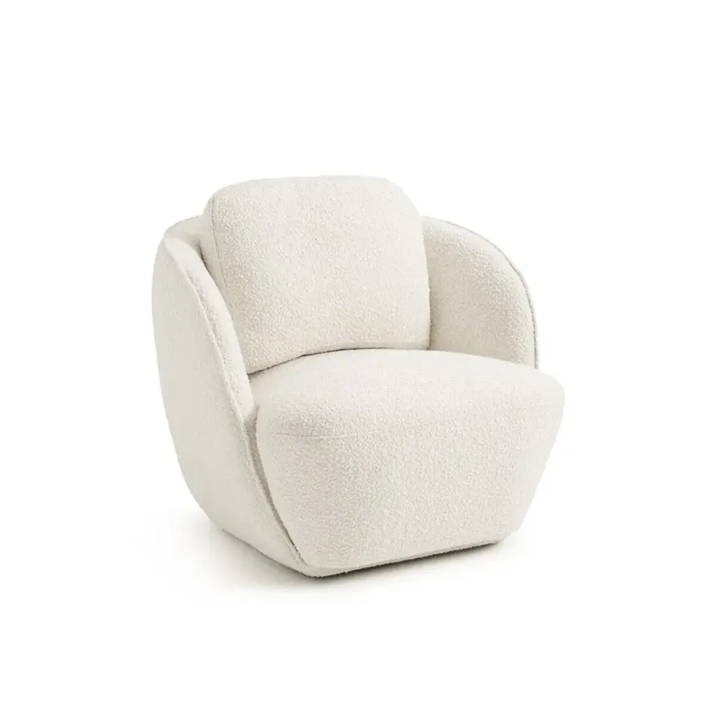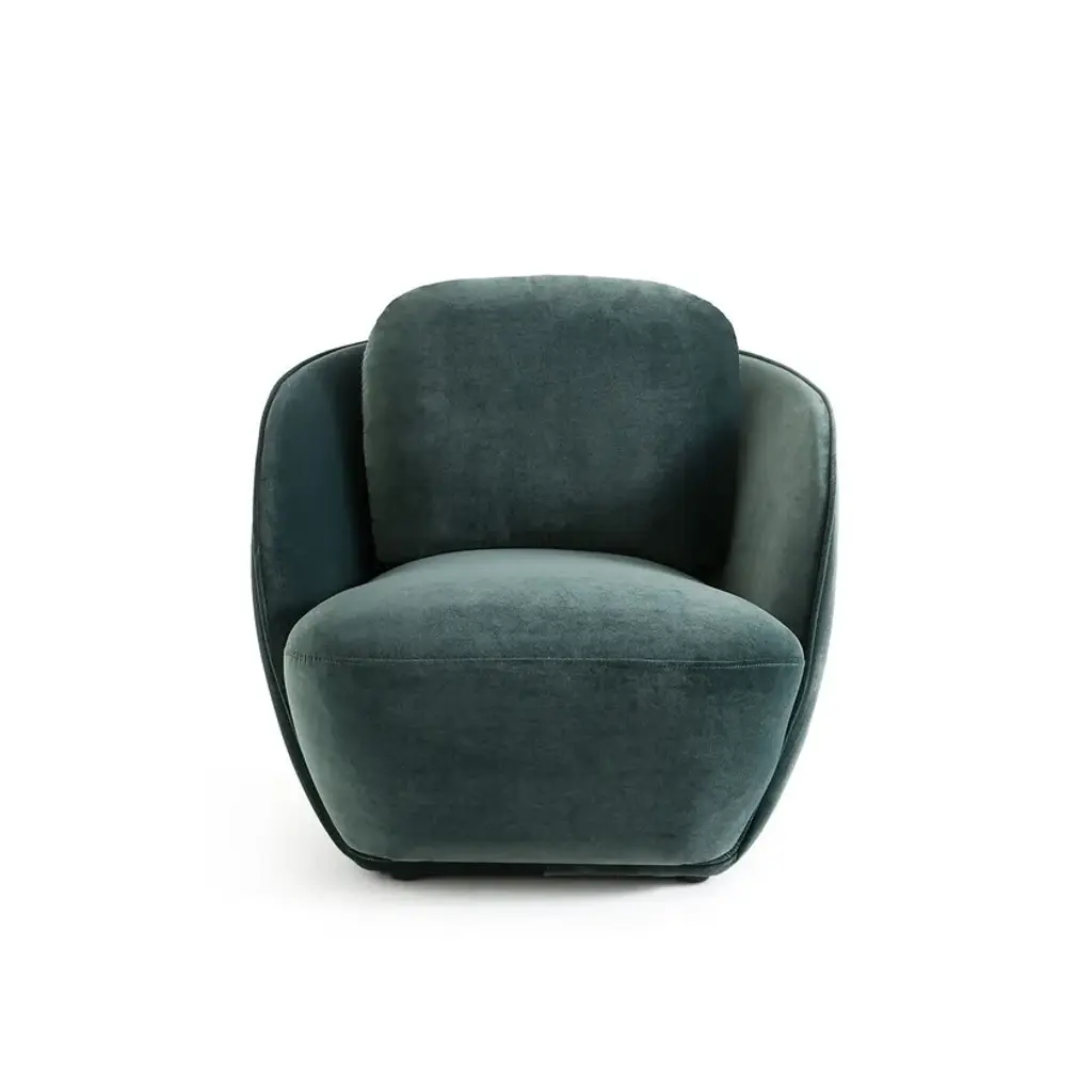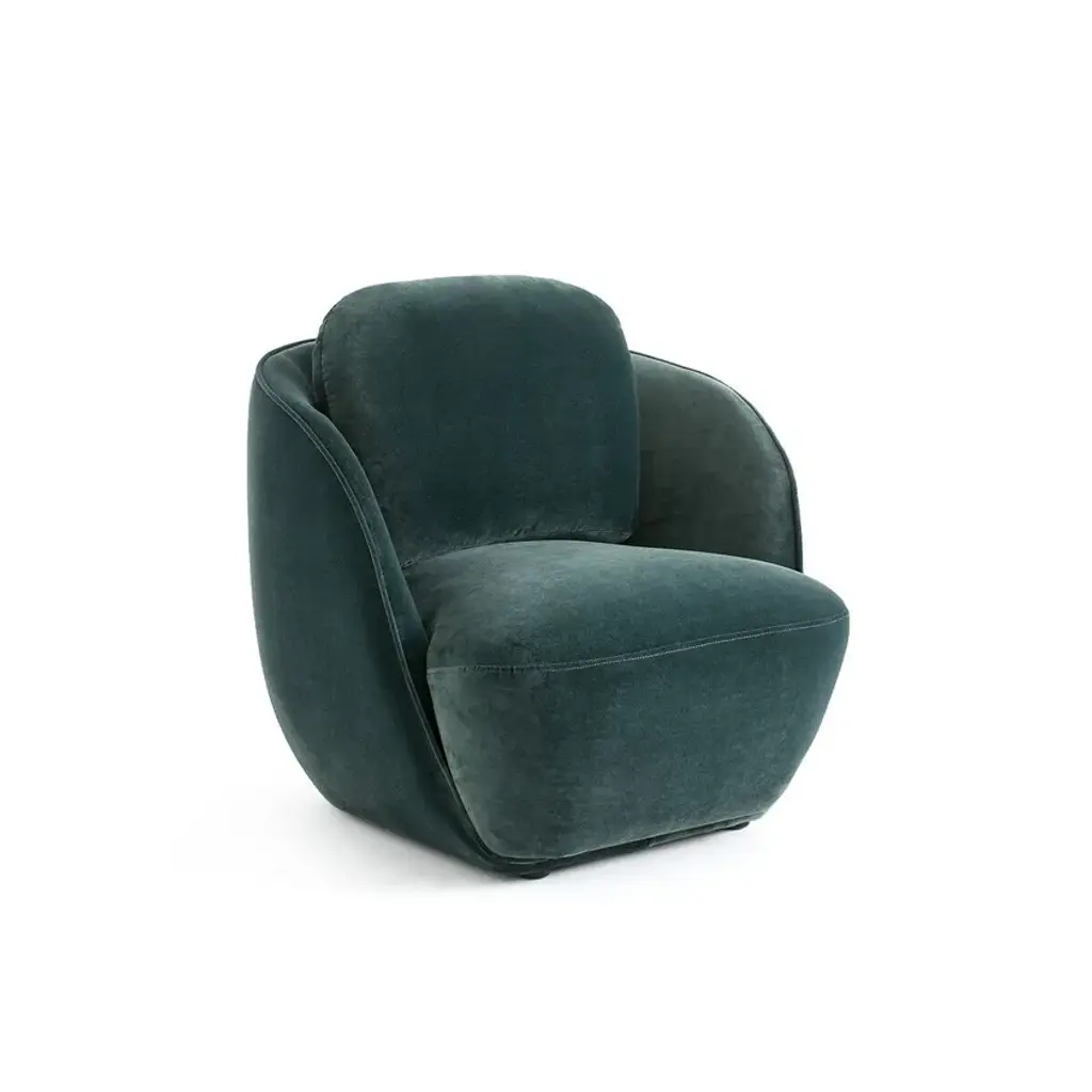 Low, wide, as if anchored to the ground, we find in this Alpine armchair the inspiration of 1970s contemporary design. The shape evokes a round cotton flower with generous volumes. A single contour-marked edge fits into the seat to perfectly envelop the body. Alpine, a small-volume armchair adapted to our current lifestyles by AMPM. Made entirely in Europe: frame manufactured and assembled in Poland, upholstery woven in Italy.Upholstery:Velvet effect 60% acrylic, 40% cotton, woven in Italy. 678 g/m2Velvet 100% polyester, 314 g/m², European design (Italy)Bouclé fabric 95% polyester, 5% acrylic (589 g/m2)Chiné fabric 39% acrylic, 39% polyester, 14% cotton, 8% wool, 548 g/m², made in EuropeFrame: plywood, chipboard and solid pine fiber.Suspension: NoSag springs and strapsLegs (to be assembled) : PVC, adjustable in height, H15 mmPaddingSeat: In polyurethane foam 21 kg/m³ and 30 kg/m³ and polyester fiberBackrest: made of 21 kg/m³ polyether foam and polyester fiberBack cushion: mix of 50% feathers and 50% silicone fiber, 21 kg/m³ polyurethane foam core