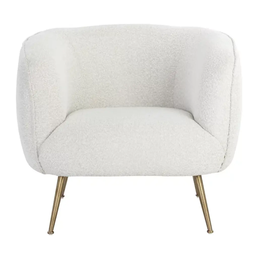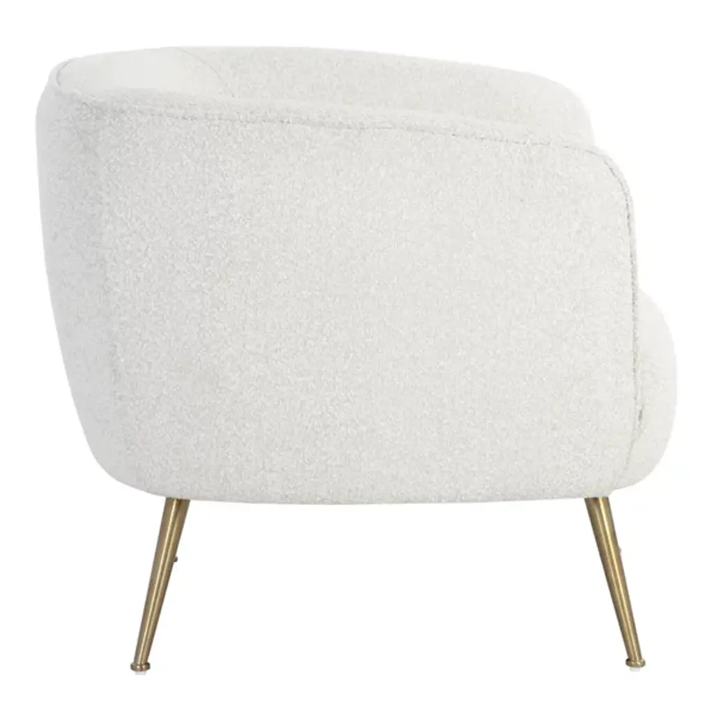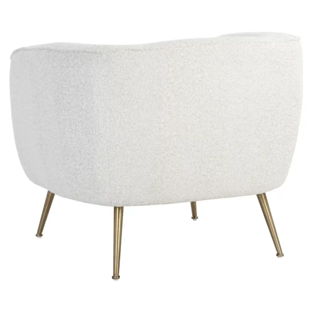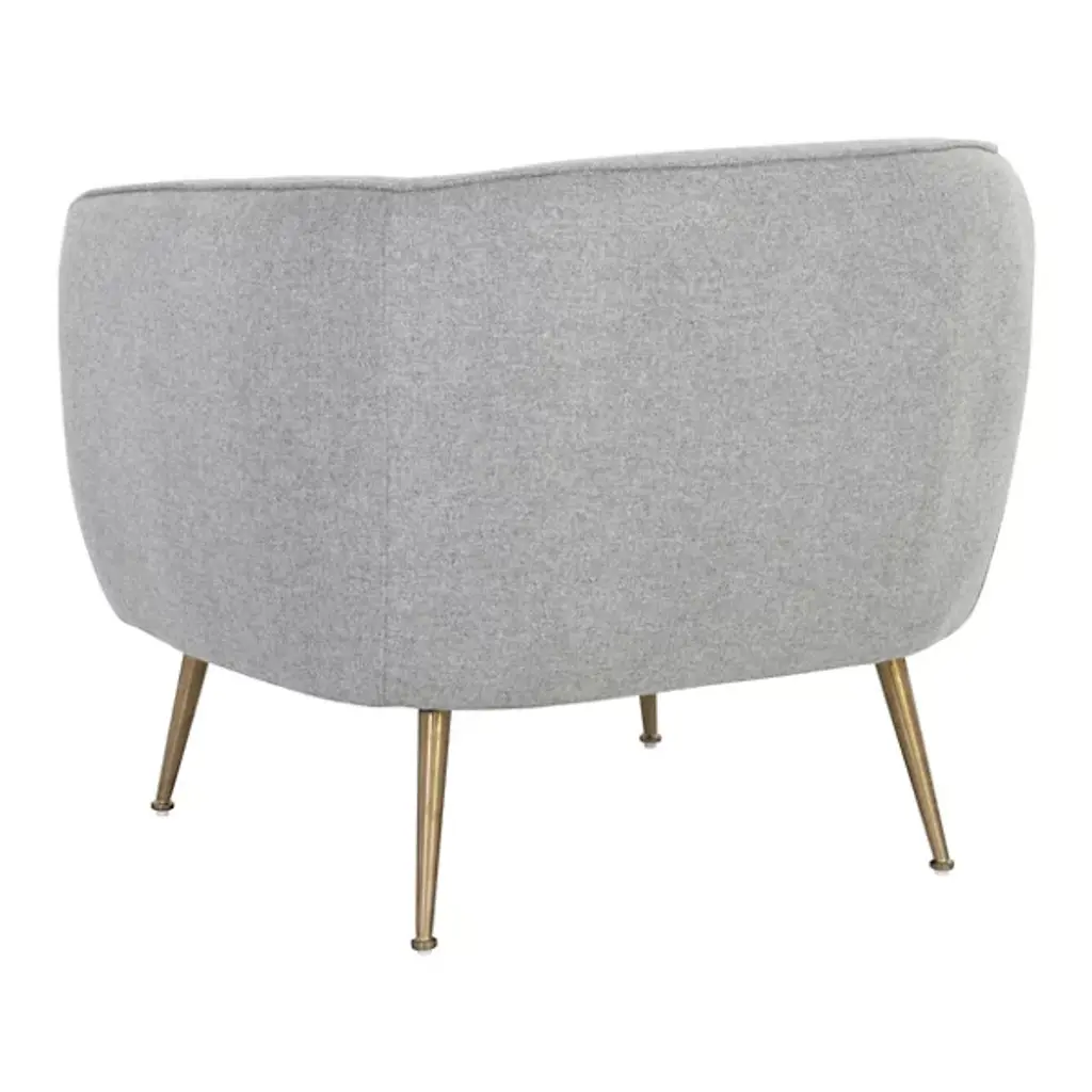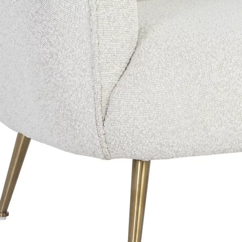 Charming curves wrap the tailored navy fabric around The elevated midcentury modern Amara Lounge Chair from Sunpan A sweeping armchair silhouette, plushly upholstered beneath the fabric, relaxes on tapered stainless steel legs plated in gold, elevating its design in a light, luxurious appeal. The seat is sleekly sophisticated, its curving contours and sleek legs contrasting well with each other and paring magnificently with other retro-modern seating with its artfully shaped profile.