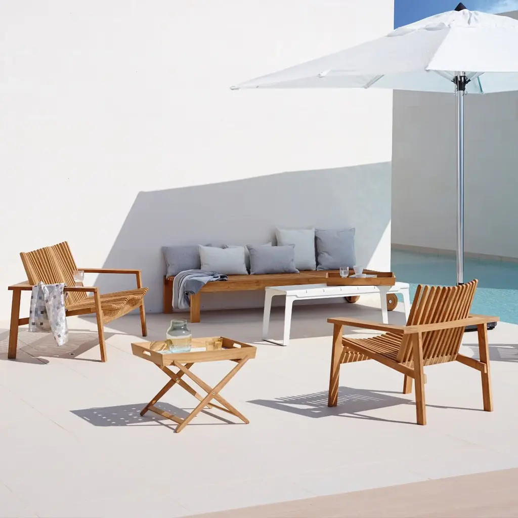 Our renowned designers Foersom + Hiort-Lorenzen presented Cane-line to a series of beautiful teak furniture representing the best and finest of craftsmanship. Instantly the nature of the products appealed and offers an opportunity to mix these elegant teak furniture pieces with our other products and thereby creating a more sophisticated and contemporary look. Amaze lounge chair stands out with focus on simplicity and comfort. The wide arms and the curved teak slats in the seat create a unique and high comfort level. Note: Frame and cushion may be shipped separately and lead times may vary. Please contact us for more information.