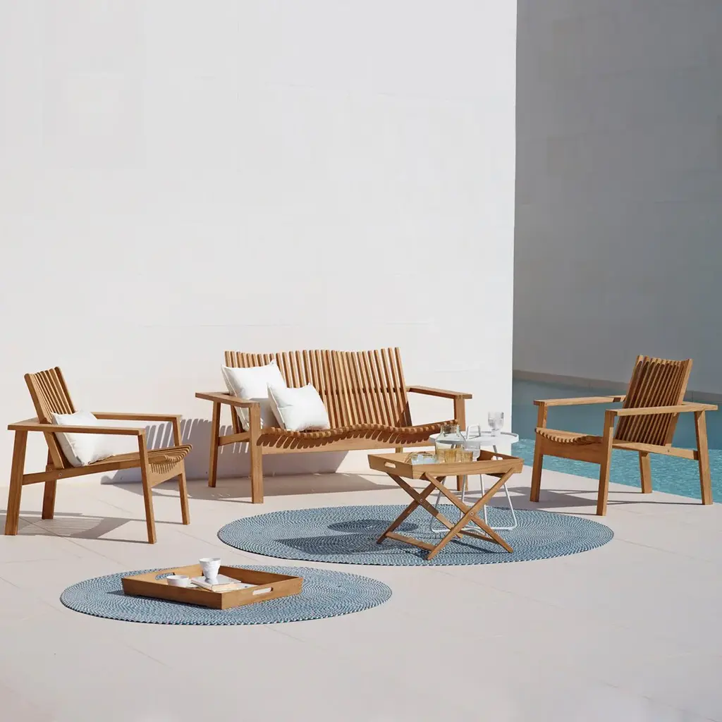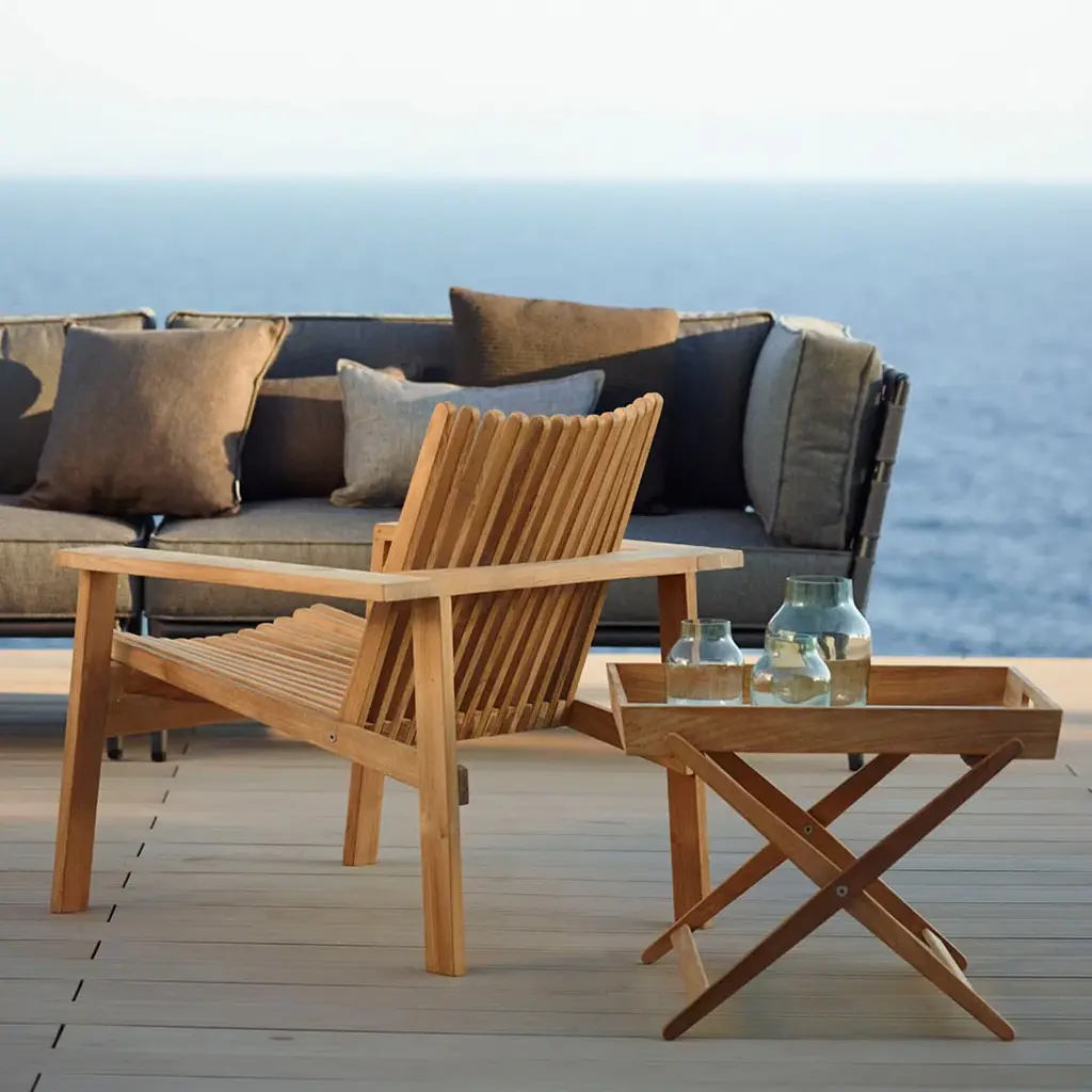 Our renowned designers Foersom + Hiort-Lorenzen presented Cane-line to a series of beautiful teak furniture representing the best and finest of craftsmanship. Instantly the nature of the products appealed and offers an opportunity to mix these elegant teak furniture pieces with our other products and thereby creating a more sophisticated and contemporary look. Amaze lounge chair stands out with focus on simplicity and comfort. The wide arms and the curved teak slats in the seat create a unique and high comfort level. Note: Frame and cushion may be shipped separately and lead times may vary. Please contact us for more information.