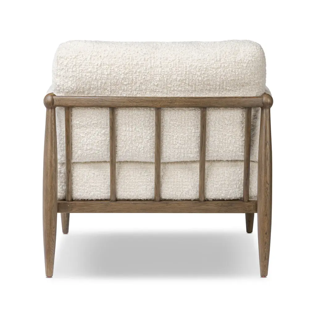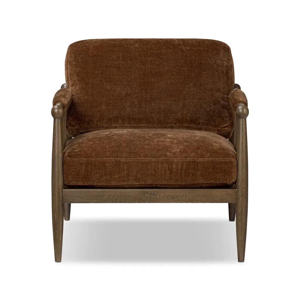 A classic silhouette meets contemporary style with the Amber Lewis x Four Hands Warren Lounge Chair. This accent chair features vintage-inspired details, including tapered legs, spindles along the arms, and bauble accents, all crafted from robust solid oak and finished in a rich vintage brown. The cushions are filled with a blend of materials for ultimate comfort, making this chair a timeless and comfortable addition to any room. Highlights A prominent figure in the world of interior design, Amber Lewis is celebrated for her distinctive style that seamlessly blends modern sensibilities with timeless elegance. With her eponymous design firm, Amber Interiors, she has carved out a niche in the industry, creating spaces that exude warmth, character, and a sense of lived-in luxury. Her signature style embodies a relaxed California aesthetic infused with global influences and has been widely featured in Architectural Digest, Elle Decor, and Domino.