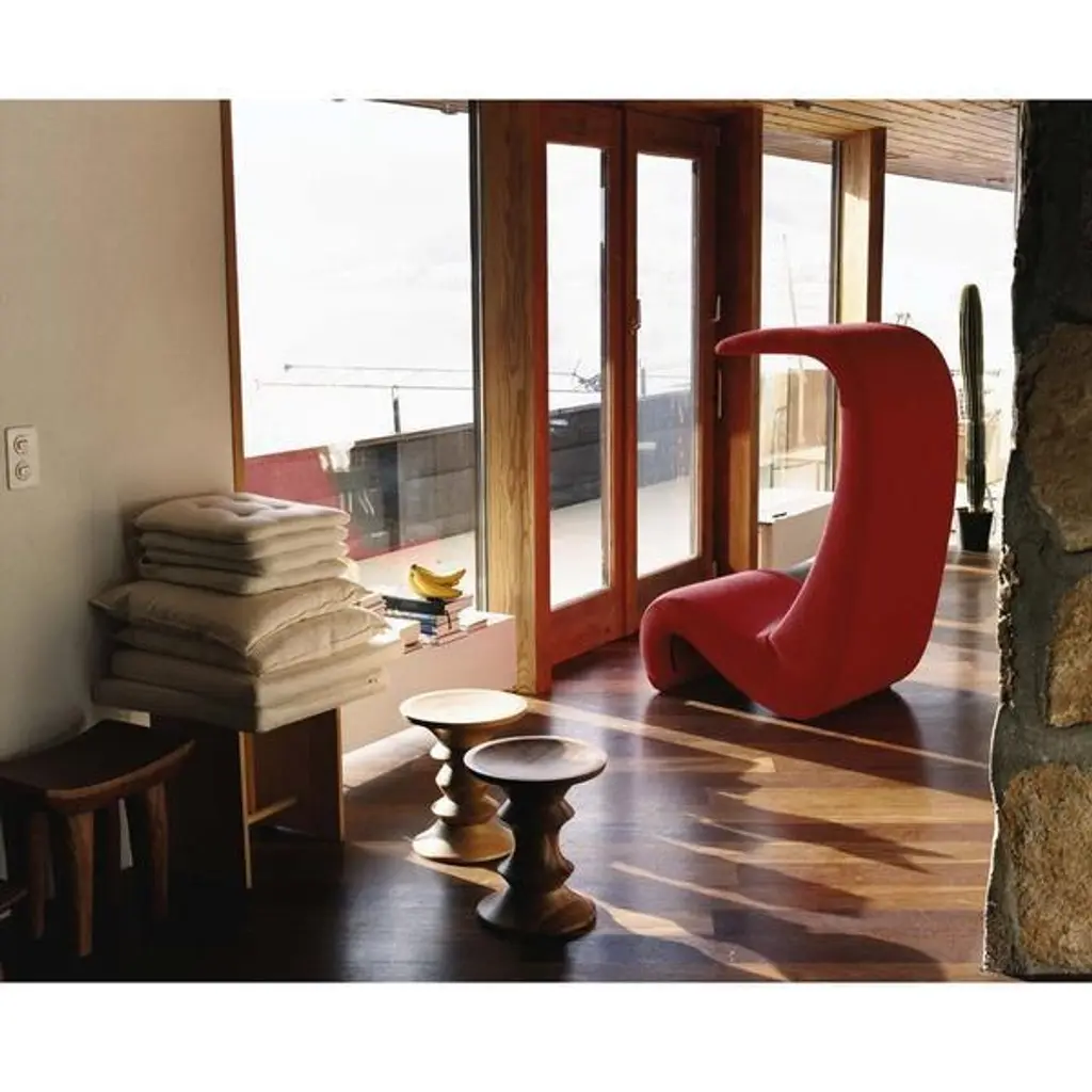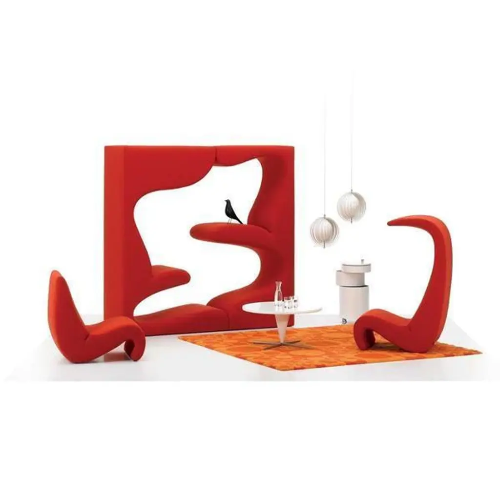 Amoebe was created by Verner Panton in 1970 for his famous Visiona installation, which included several versions of this lounge piece. It embodies the exuberant spirit of the early 1970s. Thanks to its upholstered surfaces and the flexible back shell, Amoebe offers a high level of comfort. The Amoebe Highback version of the chair has a flexible backrest that curves over the head of the sitter, forming a sculptural canopy. This striking accent gives the chair a sense of shelter and seclusion. Both chair versions are available in a variety of brightly colored fabric covers.
