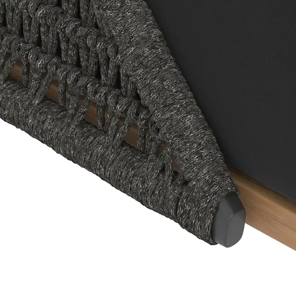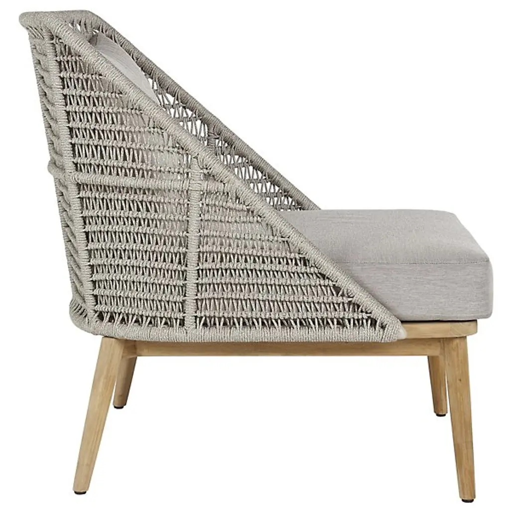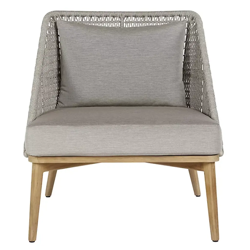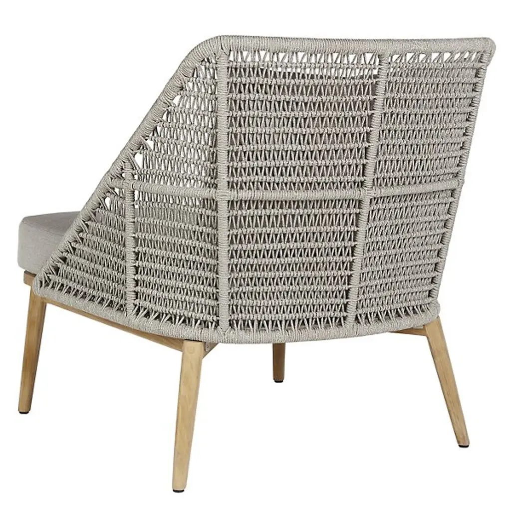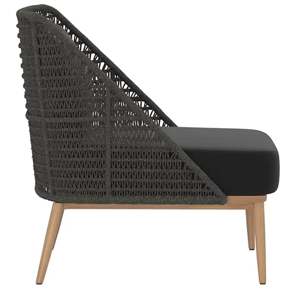 A memorable intersection of multiple materials cleverly coordinated in an intricate array. The Andria Outdoor Lounge Chair from Sunpan is dressed to impress, ascending from a seat and out-angled legs of sustainably-certified teak wood, while an aluminum seat back accompanied by angular-patterned, tightly-woven Greymix Weave provides a welcome touch of coastal contrast. A soft cushion and plush back pillow of quick-drying foam extend an additional layer of comfort, surrounded by the more solid structural sections for enduring and well-calculated comfort.