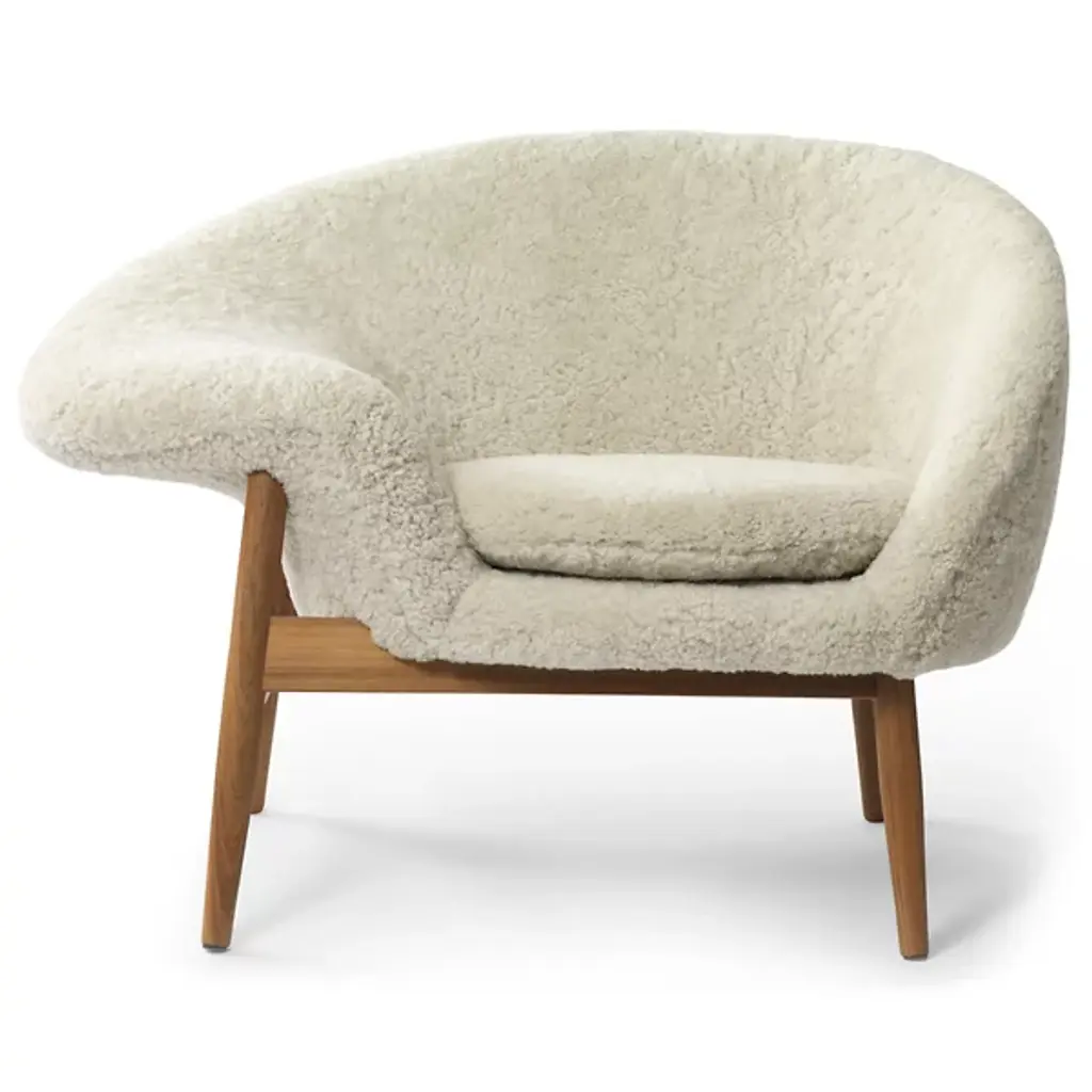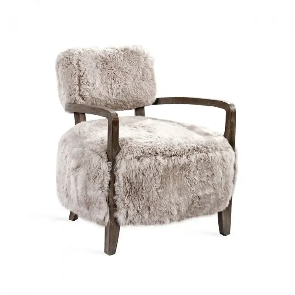 Taking cozy-chic to the next level, the Angelica Lounge Chair features an ash wood frame in an autumn brown finish and plush morel taupe Tibetan lambskin. This item is genuine sheepskin. Subtle variations in coloration are to be expected and add to the uniqueness and charm of each piece.