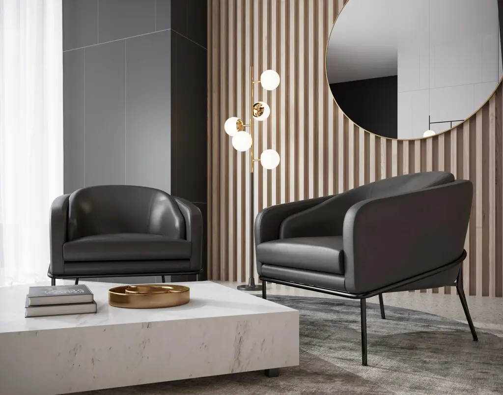 The timeless silhouette of the Angelo Lounge Chair exudes luxury within any home. Sleek black steel legs wrap around a robust and accommodating seat complementing our premium filled backrest. Angelo's chic ambiance creates an indulgent lounging experience, adding to your home's overall aesthetic. Bring Italian inspired design home with this modern piece available in your choice of premium upholstery. Explore our entire Angelo Collection here.