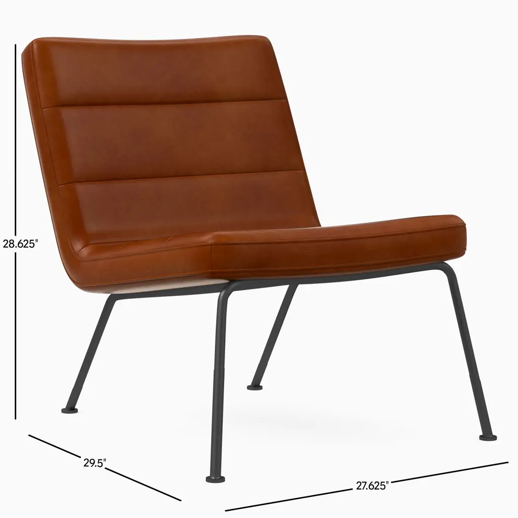 Our low-slung Angus Leather Slipper Chair instantly adds relaxed style to your living room or bedroom. Its reclined back and armless design make it easy to lounge in, while buttery leather upholstery gives it some luxe. Plus, it's Contract Grade, so you'll know it's extra durable.