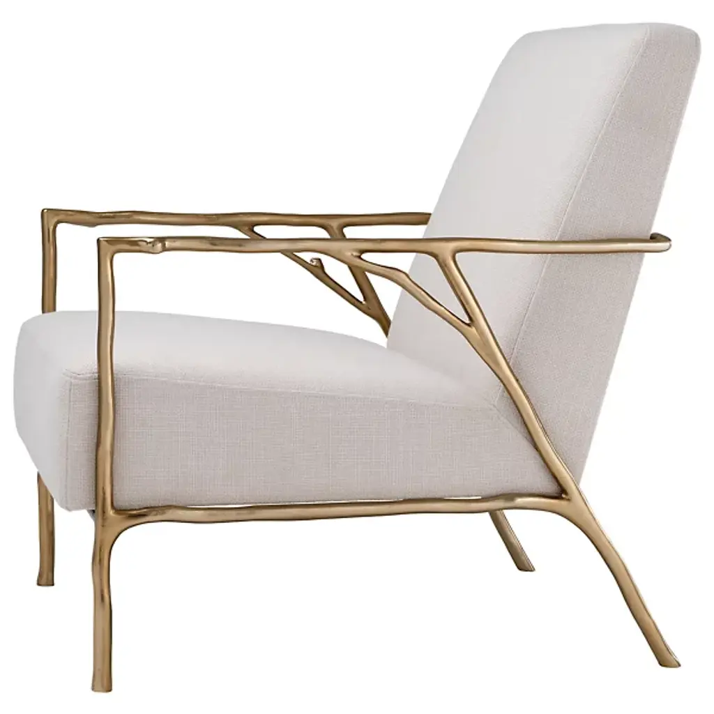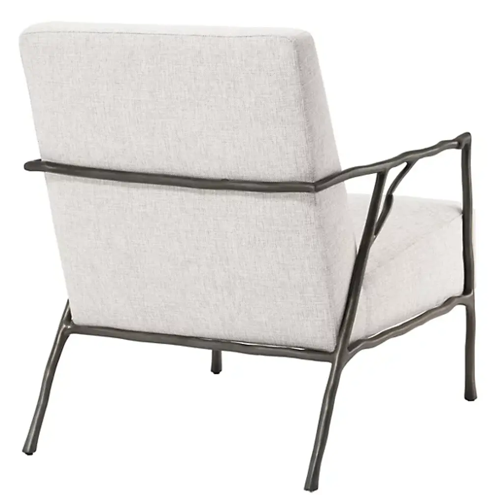 Suspending the body with a beautiful branch-like setup. The Chair Antico from Eichholtz appeals to the easy-going space as a clean, thoughtful design. It’s a modern piece with an antique-style decorative quality. The metal frame impresses with sharp angles that sit one low and leaned back. This metal frame warrants a closer look as its undulating surface evokes a deep textured branch. Smooth like sanded stones, a back and seat cushion match up inside with a pleasant fabric upholstery. These cushions work with the armrests to provide a memorable lounging experience.