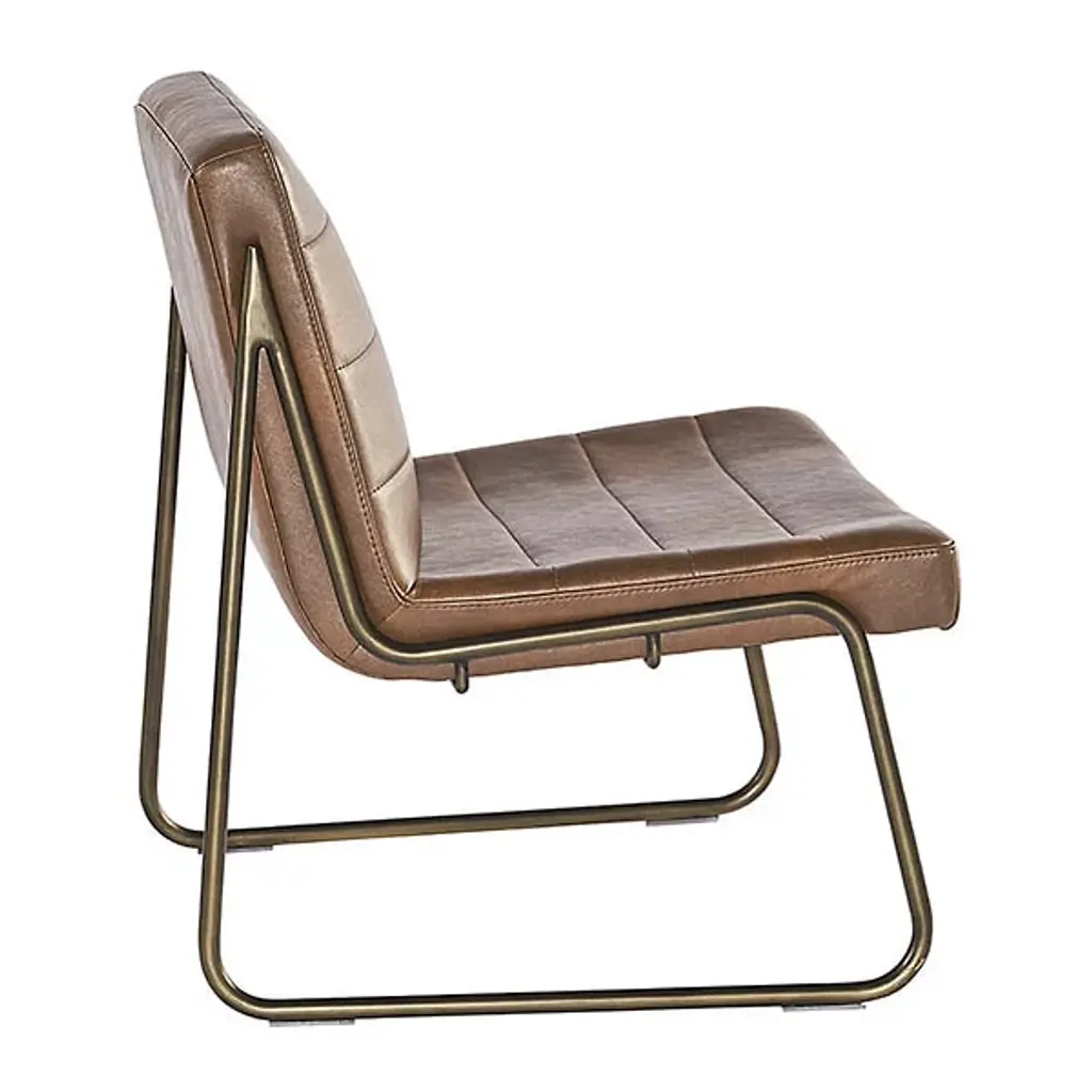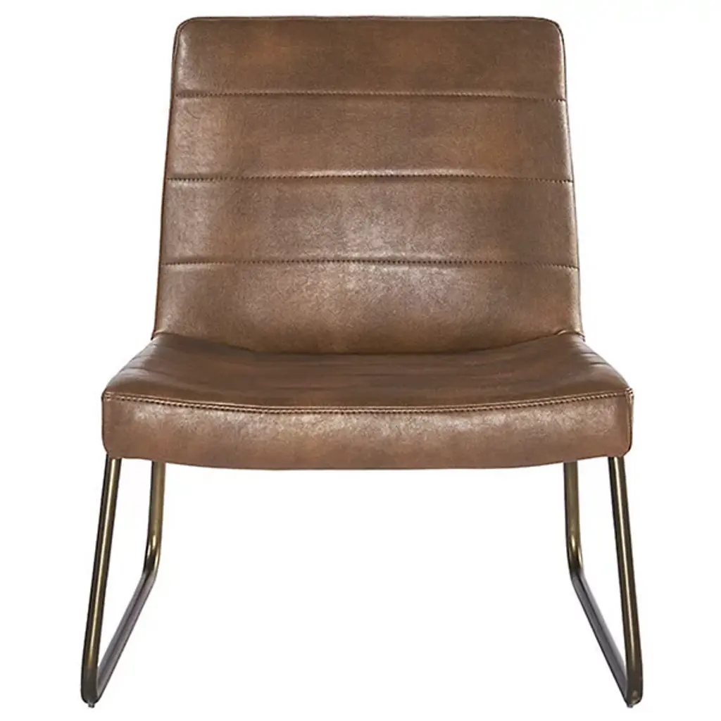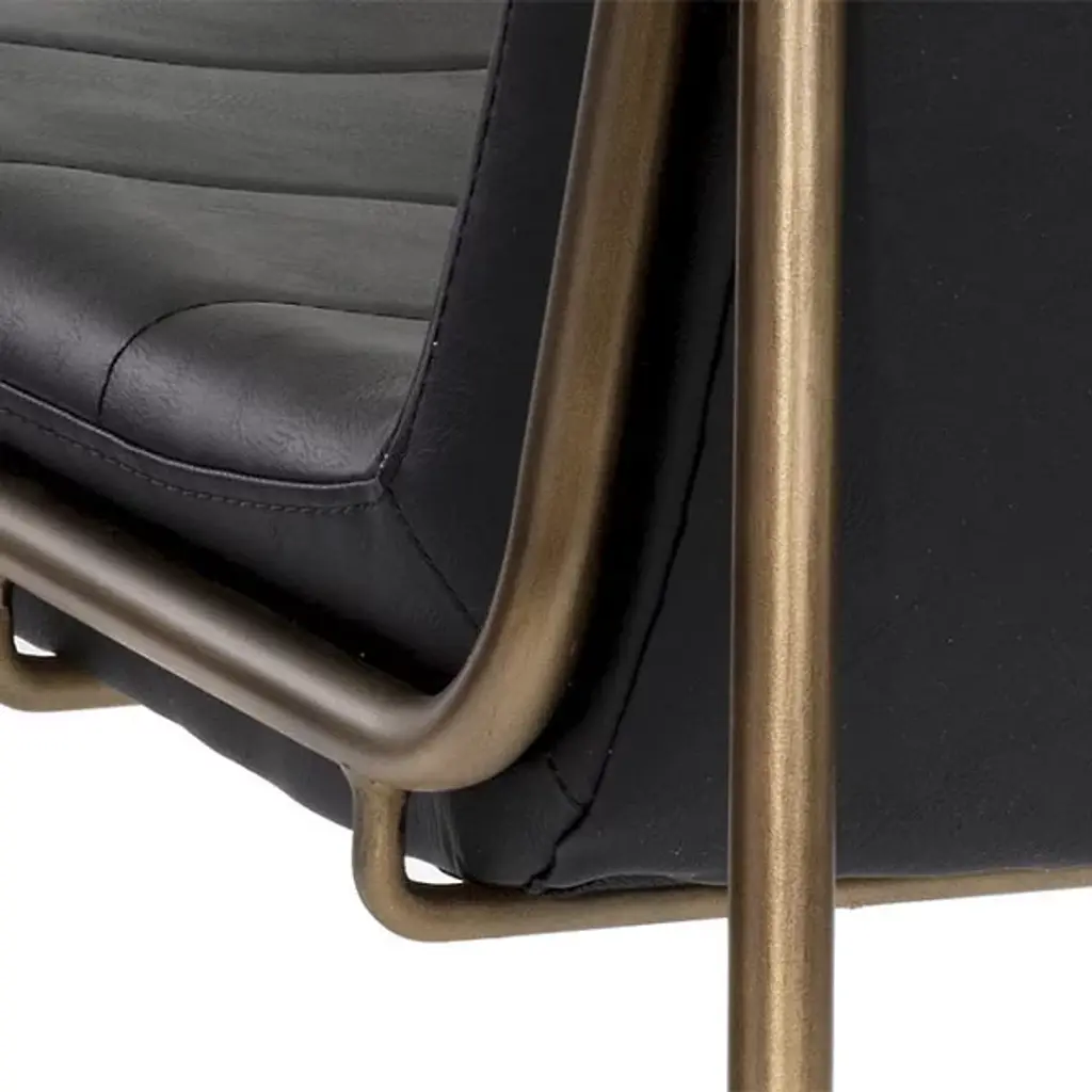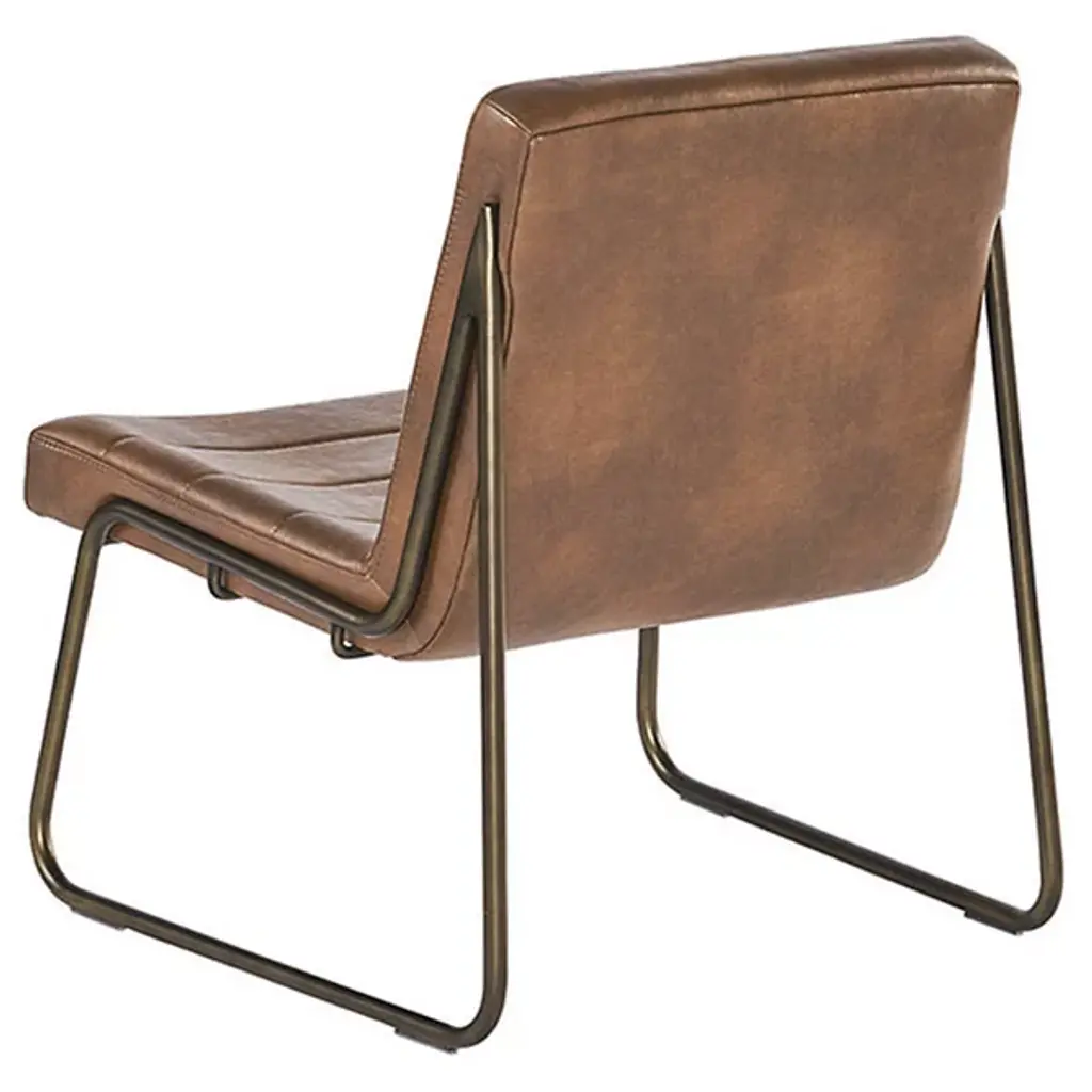 Elevate your urban or contemporary space with the Anton Lounge Chair from Renwil, a perfect fusion of comfort and style. The chair's sculpted seat and seatback, upholstered in rich bravo cognac faux leather, offer visual appeal and ergonomic support. Its distinctive rustic cantilever frame adds an industrial touch while ensuring stability and durability. The faux leather upholstery is meticulously designed to mimic the natural beauty of genuine leather, complete with unique color variations, markings, wrinkles, grooves, and subtle scratches that make each chair a one-of-a-kind masterpiece.