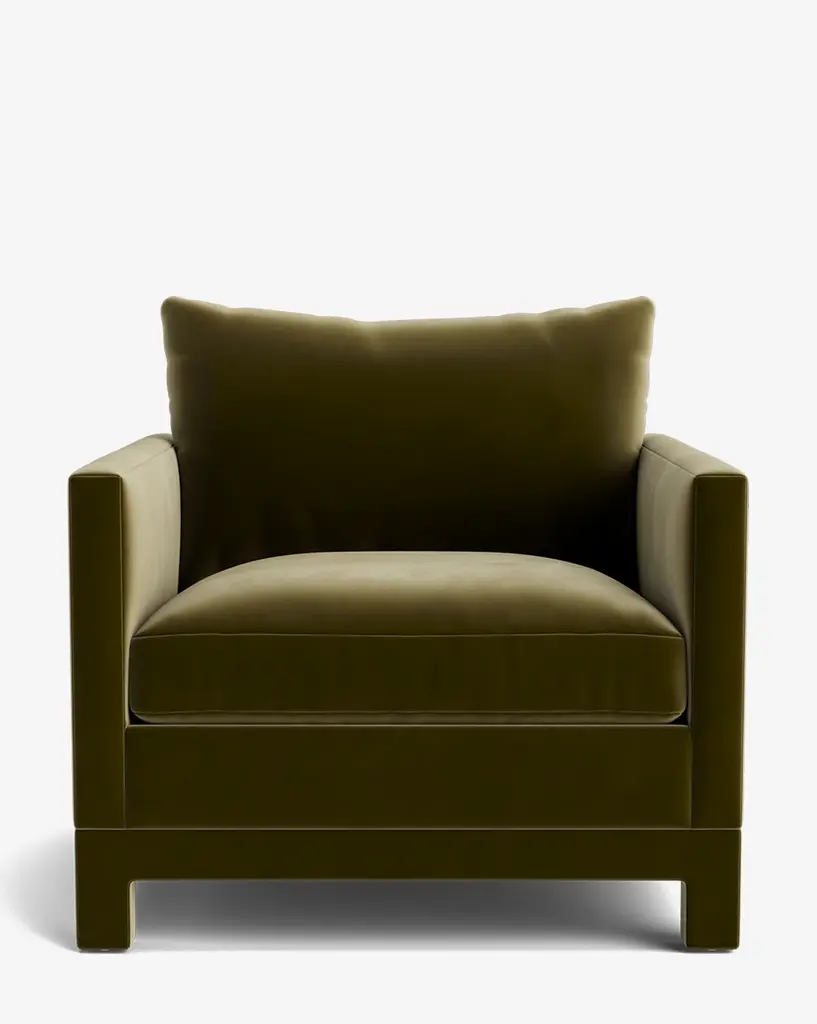 Made to order with a timeless silhouette and upholstered legs, the modern frame of the Appoline Chair holds a wide cushion that is firm, yet comfortable. As part of the made to order Upholstery Collection, the chair is available in a selection of high-quality fabrics that highlight its simple and elegant frame.