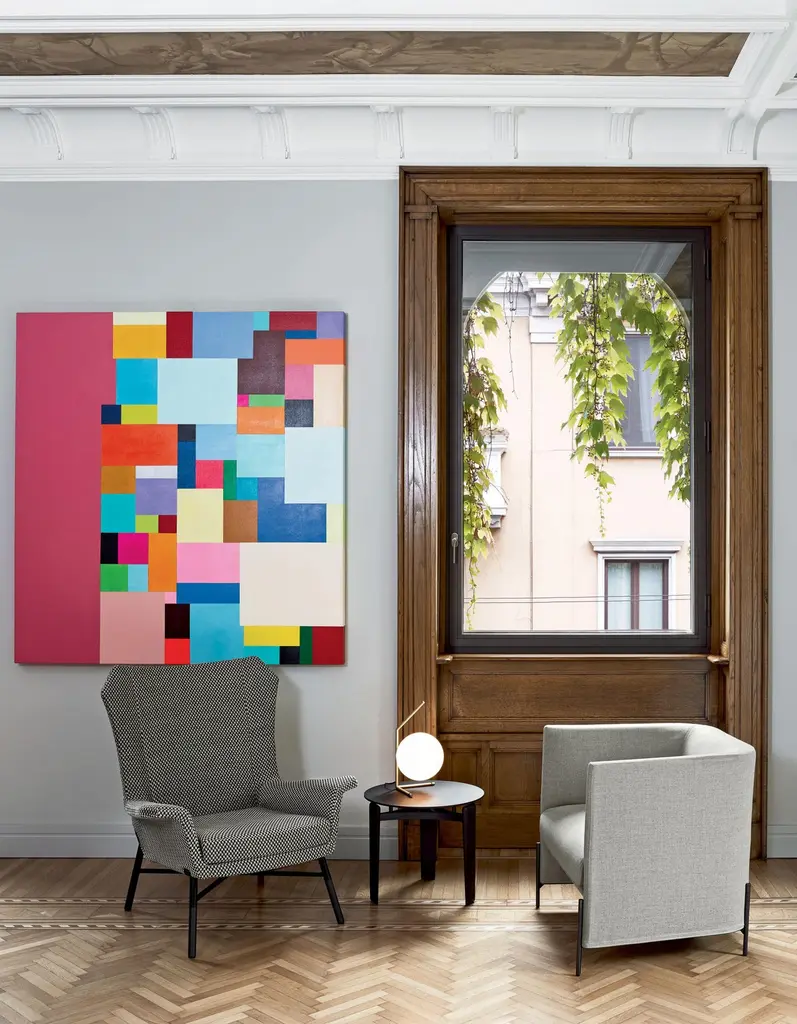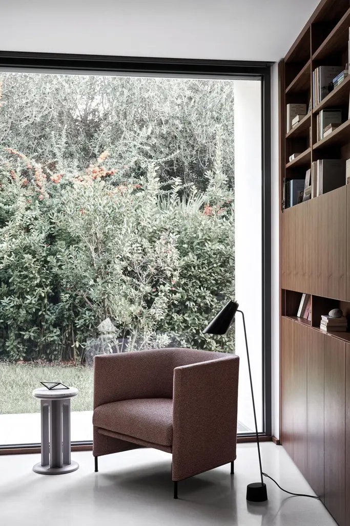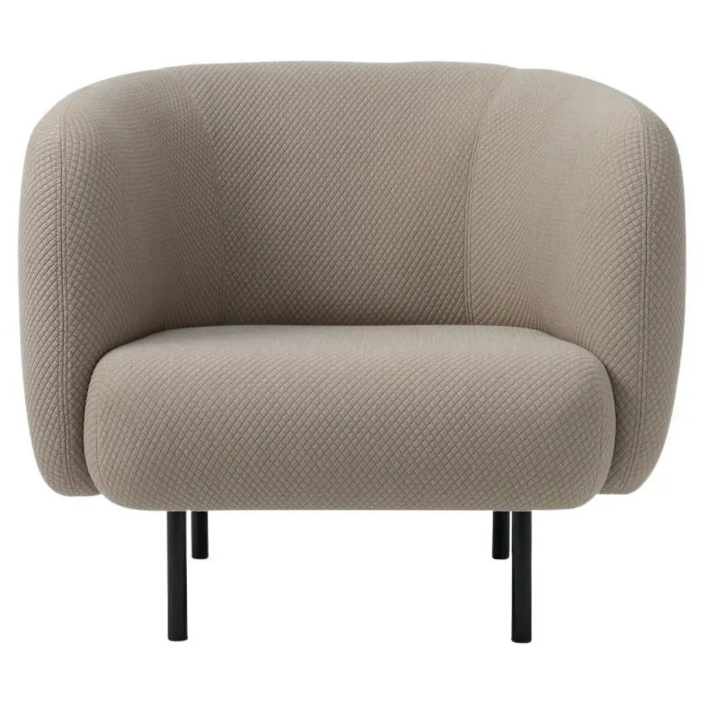 The Algon lounge Chair was developed together with the Algon Chair, melding Scandinavian simplicity with a patterned quilted upholstery. Contrary to the Algon Chair, that has a strict formality, the Algon lounge chair has high sides, that allow for a sense of privacy, perfect for hushed late-night conversations or a solitary moment of respite. Like the Papoose sofa, presented last year, Algon’s name references the North American Algonquian tribes. Both frames of the armchairs are realized in moulded polyurethane foam. The internal cover can be improved by a quilt, that offers a pleasant welcome sensation; the seat cushion is made by shaped polyurethane foam with differentiated density. The seats stay lifted from the floor through the feet, in metal lacquered in the arflex collection or nickel-plated.Additional information:Materials: Upholstered seat with black lacquered baseColor: Fabric Boucle 14, T3Base: Black lacquered base and protective nylon glidesStructure: MetalSpringing: Elastic strapsFrame upholstery: Moulded polyurethane foam / polyester slipcoverSeat cushion upholstery: Shaped polyurethane with differentiated density / polyester slipcoverCover: Fabric or leather. Fully removable cover, except for leather versionDimensions: W. 81 x D. 71 x H. 75 cmSeat height: 43 cmAvailable in other upholstery option: Aran, Brest, Cabas, Etoile, York/devon, Cherie, Lama, Walls, Blog, Hero, Lucky, Misttral, Soho, Steelcut2, Divina Md, Giada, Ametista, PerlaAvailable in other base option: Gun Metal Grey, Black Nichel Available in other options for lacquered version: Burnished, Gold or CopperAvailable in other version: Armchair with quilted cover, High version armchair