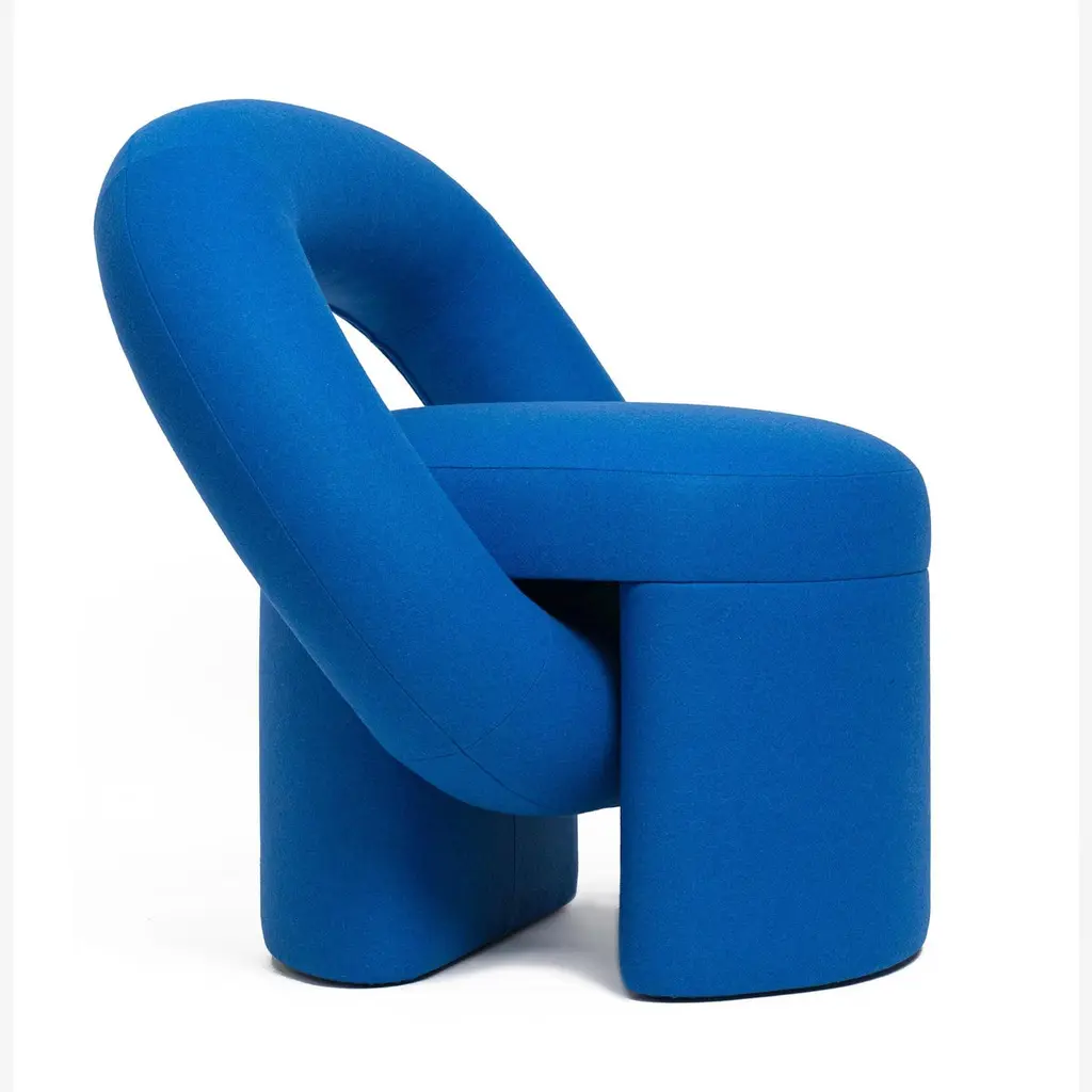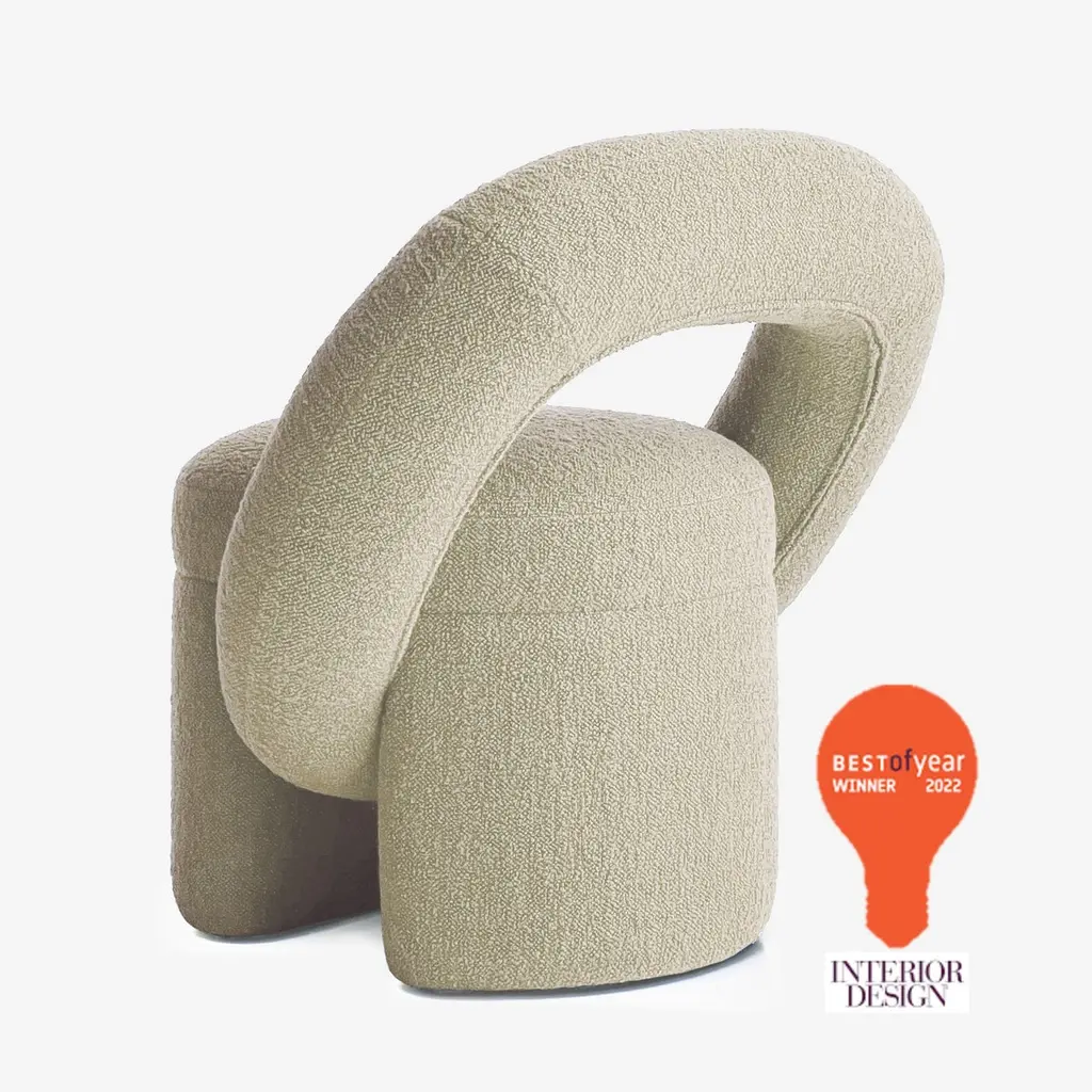 PLAY Armchair by Dmitriy Kozinenko – Award-Winning Design That Redefines Comfort and PlayfulnessThe PLAY armchair, designed by Dmitriy Kozinenko, is a bold and playful piece that combines geometric artistry with exceptional comfort. Winner of the "Best Residential Lounge Seating 2022" by Interior Design Magazine, this armchair stands out as a true testament to modern design and Ukrainian craftsmanship.The armchair’s unique silhouette is formed from a combination of geometric elements, with its distinctive bagel-shaped backrest serving as both a functional and aesthetic highlight. Its ergonomic design ensures superior comfort, making it perfect for lounging, relaxing, or simply making a statement in any interior.Handcrafted in Ukraine, the PLAY armchair reflects meticulous attention to detail and a blend of creativity and sincerity. Designed to spark joy and interaction, it adds personality and character to any space—be it a stylish living room, creative office, or gallery-like setting.Built with a sturdy plywood frame, high-quality polyurethane foam, and premium fabric upholstery, the PLAY armchair ensures durability and timeless appeal. Its thoughtful design and exceptional craftsmanship celebrate the ingenuity of contemporary Ukrainian design.Key Features:Award-winning design: Best Residential Lounge Seating 2022 by Interior Design Magazine.Unique geometric form with a playful, bagel-shaped backrest.Handcrafted in Ukraine with premium materials: plywood, polyurethane foam, and fabric.Versatile accent armchair that adds character to any space.Elevate your interior with the PLAY armchair—a functional work of art that brings charm, comfort, and sophistication to modern living.