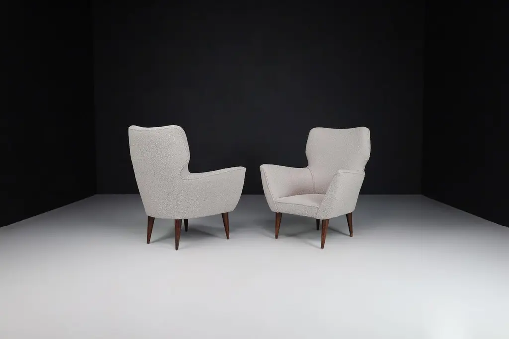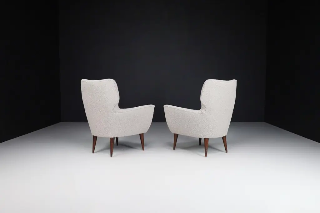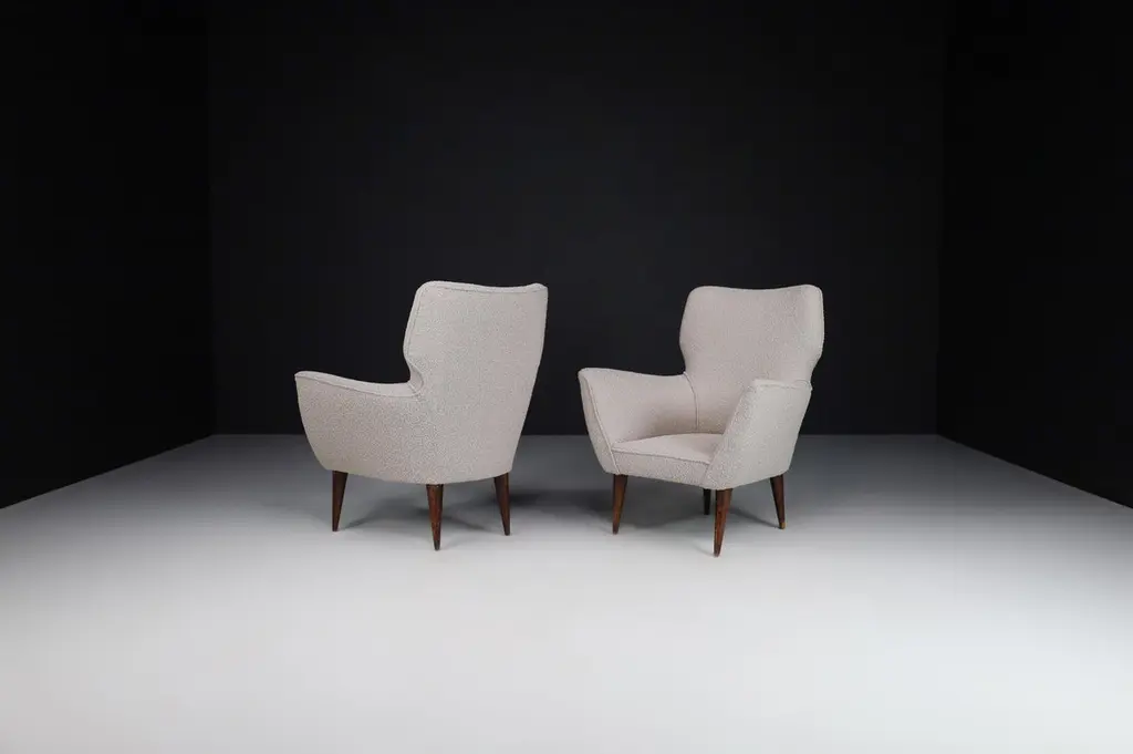 Armchairs With Tapered Wooden Legs In The Style Of Gio Ponti, Italy, In The 1950
