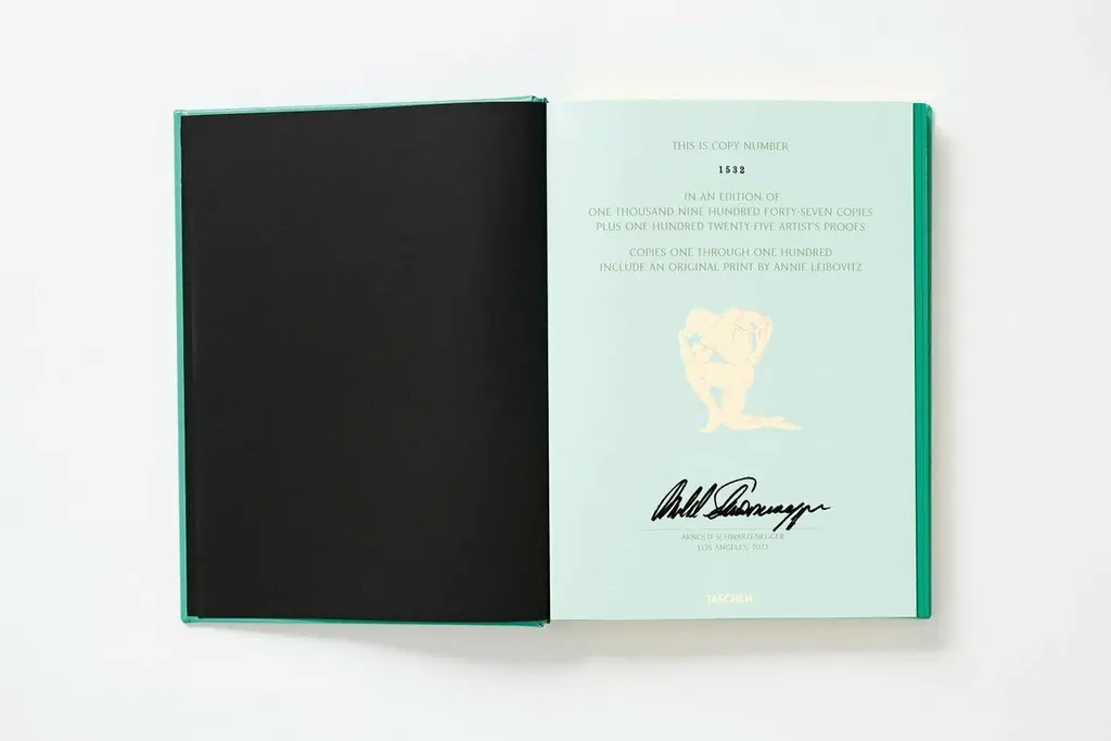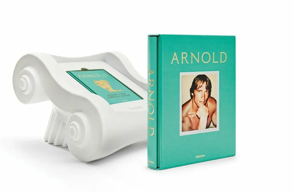 He’s a four-time Mr. Universe, seven-time Mr. Olympia. His films have grossed four billion dollars worldwide. He won the California governor’s race by a landslide. He has one of the most recognizable faces in the world, an oft-imitated accent, and a physique still heralded as the most perfect ever built. He’s Arnold, the one and only, with first name recognition worldwide, and now with a two-volume edition equal to his impressive size and unabashed ego.A decade of collaboration in the making, this photo tribute covers 75 years of Schwarzenegger, from the future Terminator’s impoverished childhood in Thal, Austria, to his rise as a young athlete, his journey to America to become the most celebrated bodybuilder of all time, to his career as the world’s leading action film star, then into the California governor’s mansion and beyond.Along the journey, Arnold’s muscular body, chiseled features, and charismatic personality made him a favorite subject of photographers, including Richard Avedon, Annie Leibovitz, Robert Mapplethorpe, Herb Ritts, Francesco Scavullo, and Andy Warhol. The big book includes them all, while the smaller companion volume gives you more intimate bodybuilding images, behind-the-scenes film stills, dozens of photos from Arnold’s personal archive, and exclusive interviews with Arnold and those who know him best, including directors Ivan Reitman and Bob Rafelson, and bodybuilding legends Franco Columbu, Dave Draper, and Frank Zane.The Capitello edition comes with a unique book stand – a 1:2 scale reproduction of the iconic Capitello chair, famously created by Studio65 in 1971 and produced by Gufram. Its pop subversion of the classic Greek ionic capital and column is a fitting homage to the Greek ideal embodied by Arnold’s famous physique.Capitello Edition (No. 101–950), numbered and signed by Arnold Schwarzenegger, with a Capitello book stand designed by Studio65.Hardcover with ChromaLuxe aluminum print cover, 34.3 x 46.2 cm, 7.69 kg, 334 pages, in slipcase, plus companion volume, 556 pages, on a Capitello book stand designed by Studio65 in hand-finished soft polyurethane coated with Guflac®? Ultra, produced by GuframARNOLD is limited to 1,947 copies, each numbered and signed by Arnold Schwarzenegger:Art Edition (No. 1–100), with a ChromaLuxe print, numbered and signed by Annie Leibovitz, and a capitello book stand designed by Studio65.Capitello Edition (No. 101–950), with a Capitello book stand designed by Studio65.Collector’s Edition (No. 951–1,947), with the book in a slipcase and the accompanying companion volume.