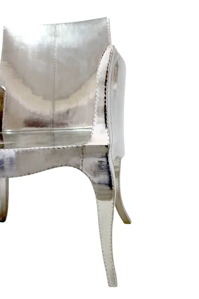 "Introducing the Art Deco Accent Chair Pair, a stunning set of Art Deco Accent Chairs designed by the renowned Paul Mathieu for Stephanie Odegard. These elegant art deco accent chairs boast a unique curved profile that exudes a sophisticated and timeless charm, making them the perfect addition to any modern or classic interior.Crafted with utmost care and attention to detail, these Art Deco Accent Chairs are made to order and are available in twelve metal clad finishes, ensuring that you can choose the perfect one to match your individual style and taste. The use of high-quality materials and expert craftsmanship ensure that each Art Deco Accent Chair is not only beautiful but also a true piece of art.The curved legs and side arms of these Art Deco Accent Chairs are hand carved from solid pieces of teak. Pattern makers trace and cut complex forms that will cover the chair in a skin of copper or purest silver (assayed at 96% purity, beyond sterling at 92.5%). The metal finishes will tarnish over time. Regular non-abrasive household metal polishes can be used to restore the original lustre.Overall, if you're looking for a piece of furniture that combines luxury, comfort, and style, then the Art Deco Accent Chair Pair is an excellent choice. With their distinctive curved profile and multiple finish options, this chair set is sure to elevate the look of any room it is placed in and be a beloved addition to your home for years to come.Art Deco Accent Chair Pair Designed by Paul Mathieu for Stephanie OdegardSize: 26"" L x 27"" W x 33"" HMaterials: White Bronze Metal sheet, Teak, Wood, MetalTechniques: Cast, Hand-Crafted, Hand-Carved, Metal Work, Wood Work, PolishedPlease note that moisture in the air, sudden changes in temperature, and natural movement of wood over time may cause the metal to wrinkle or bubble up. We use well-seasoned, reclaimed teak and high-quality marine-grade MDF (wherever technically possible) to avoid and delay the above-mentioned changes. However, a perfect stability of the metal cannot be guaranteed.Please note that our smooth finish metal clad pieces may have some unavoidable tool marks. This is proof that everything is done by hand. The smooth finish will not come out like a machine-made perfect surface, and the master artisan will do their best to make it look as good, clean, stable, and perfect as they possibly can."