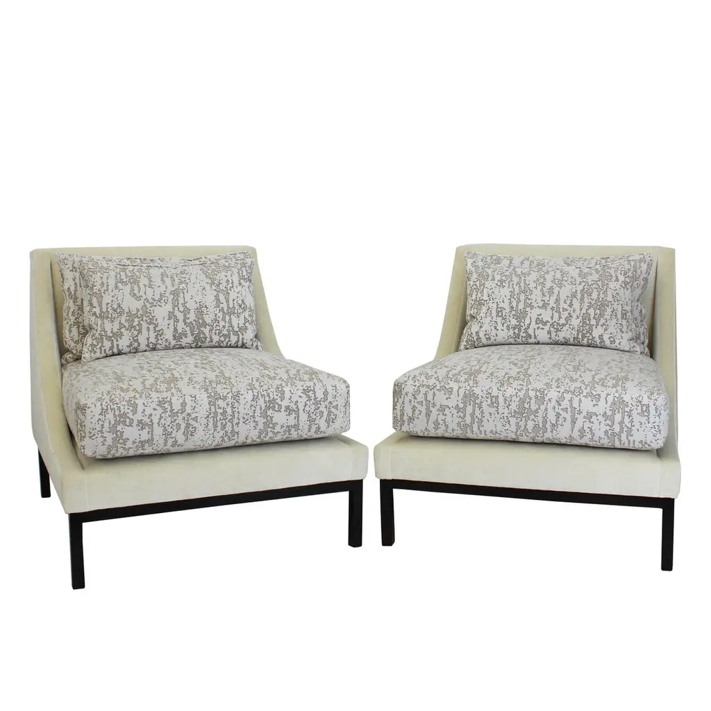 Art Deco inspired Club style chair features loose feather/down back and seat in feather/down wrapped foam. Shown in a Zinc jacquard velvet fabric with a unique burnt-out appearance and an abstract, textural design reminiscent of cork. The frame is made in solid hard maple. Leg are ebony stained. Customization with size adjustments and fabric is available upon request. Measurements:Outside: 29”W x 29”D x 31”HInside: 24"W x 17"D x 15"H Seat height: 18"Price as shown: $5,580 eachCOM price: $2,685 eachCustomization may change price.How We Work:Made to order by Connecticut-based furniture design and manufacturing company The Tailored Home. Submit your customization desires by 1stdibs messenger for a quote. After orders are placed our workshop manager creates a visual work order for your approval for quality assurance.Customization Options:Dimensions can be customized. Ask for details.The fabric shown may come in more colors. We also carry thousands of other materials and can send you samples and fabric pricing upon request. We accept your fabric for a COM fee of 5% of the cost of the piece. Welting, piping, tape, or trim can be added. Different species are available for pieces with exposed wood and can be painted & lacquered in any Benjamin Moore color (for an additional charge) or stained in one of our stain options. Custom color matches cost $75 per sample.We accept inspiration photos of pieces you like.2021 - Made to OrderThis piece can be made as is or custom-made with the customer’s choice of materials and size adjustments.9-10 weeks