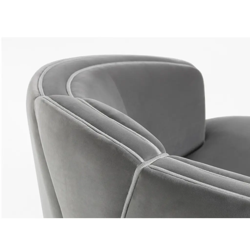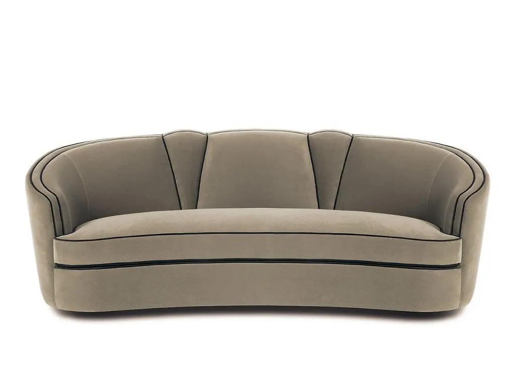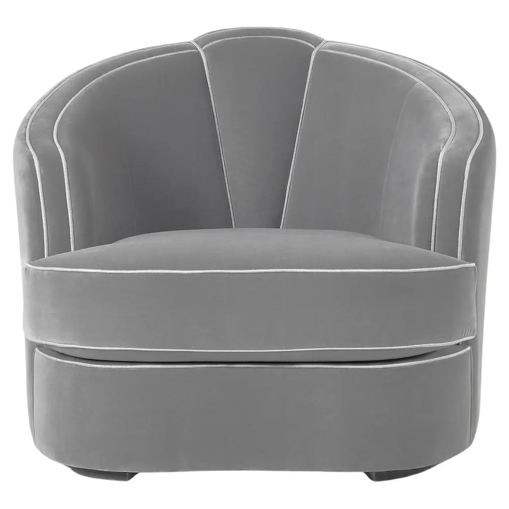 This armchair features a wonderfully elegant fan-shaped motif, with its accentuated curvy lines with decadent and lavish finish. The feminine curves are ravishingly enhanced by the different colored toned piping.Upholstery: Velvet. Feet: Upholstered with Velvet.Handmade in Europe.We do our best to expedite production and to ship and deliver product within the listed lead time, however current lead times might be longer due to global shipping backlog and delays. These delays are out of our control and cannot be a reason to cancel an order.Our pricing includes all costs for international shipping to the U.S., as well as duties and customs clearance fees. Please be aware that local delivery within the U.S. is not included. We offer white glove, front door, and warehouse delivery options. For shipments outside the U.S., kindly reach out to us for a detailed quote.