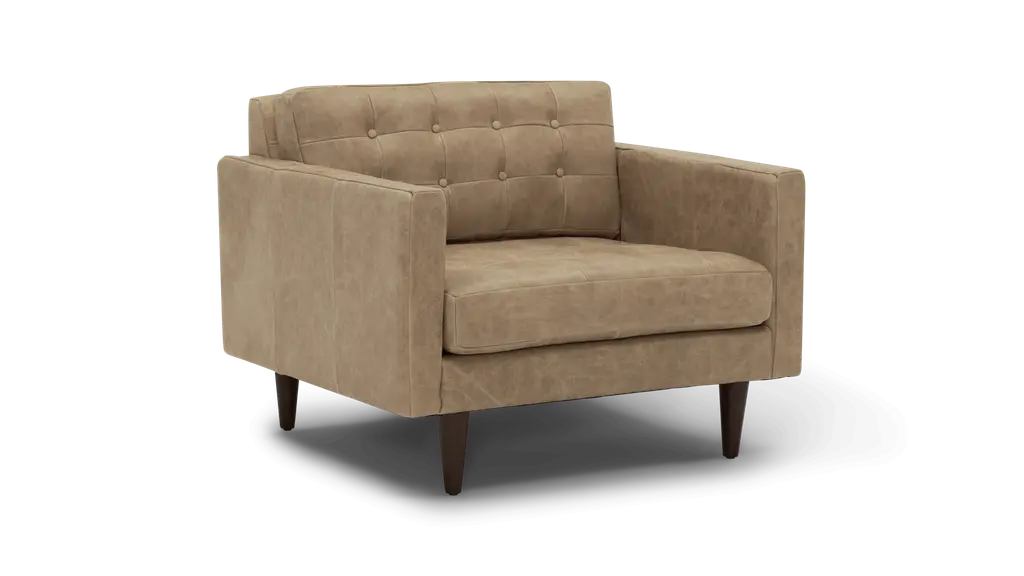 Made in Italy, the Arturo Leather Chair features a classic mid-century design. The versatile style of this piece renders it easily paired with a wide variety of modern and rustic decor. Featuring an eye-catching tufted design, track arms and tapering legs, this stylish chair is ready to become your new favorite destination for rest and relaxation. Upholstered in top-grain leather, this chair can be paired with the rest of the Arturo Collection, or it can stand solo in any living room or family room, helping to round out conversational seating.