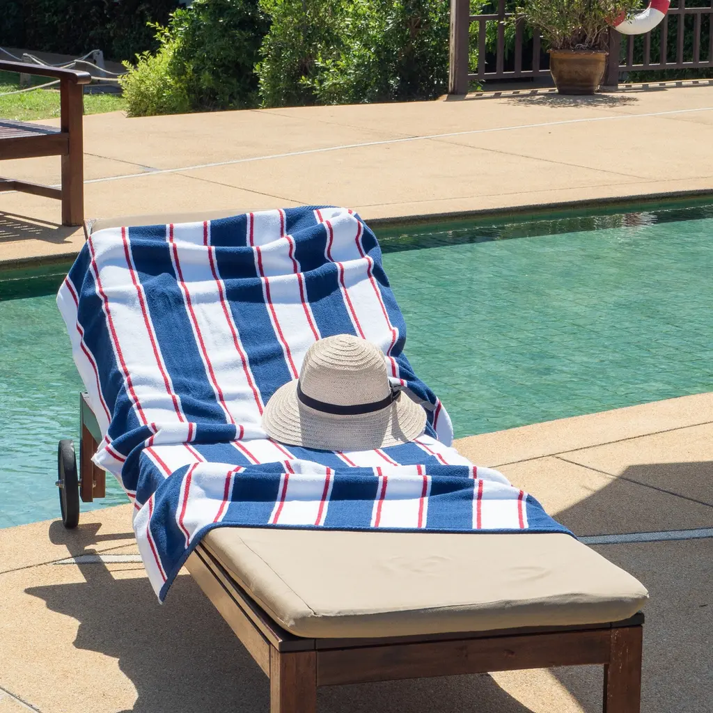 Aston & Arden Oversized Pinstriped Resort Beach Towel - 35x70 - Navy/red