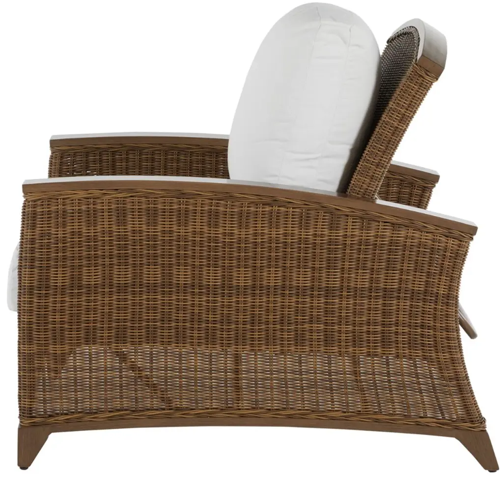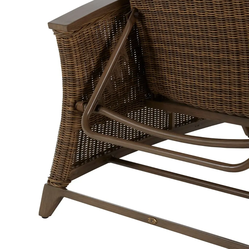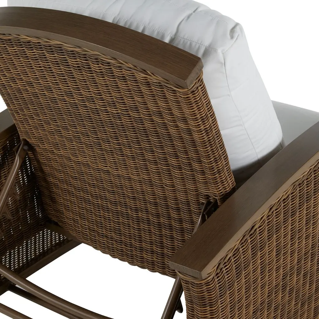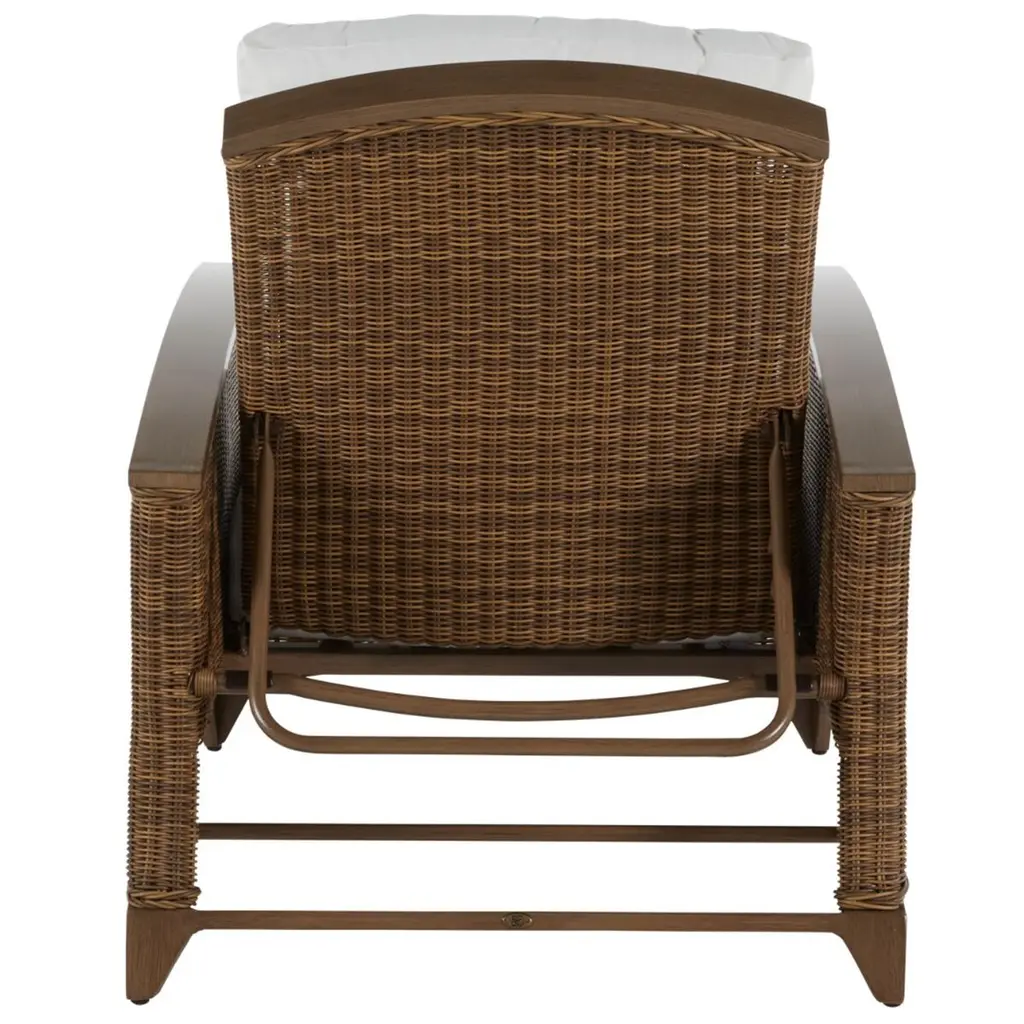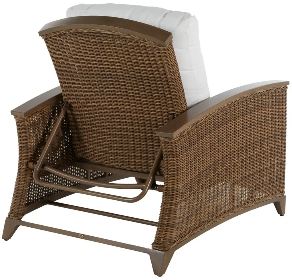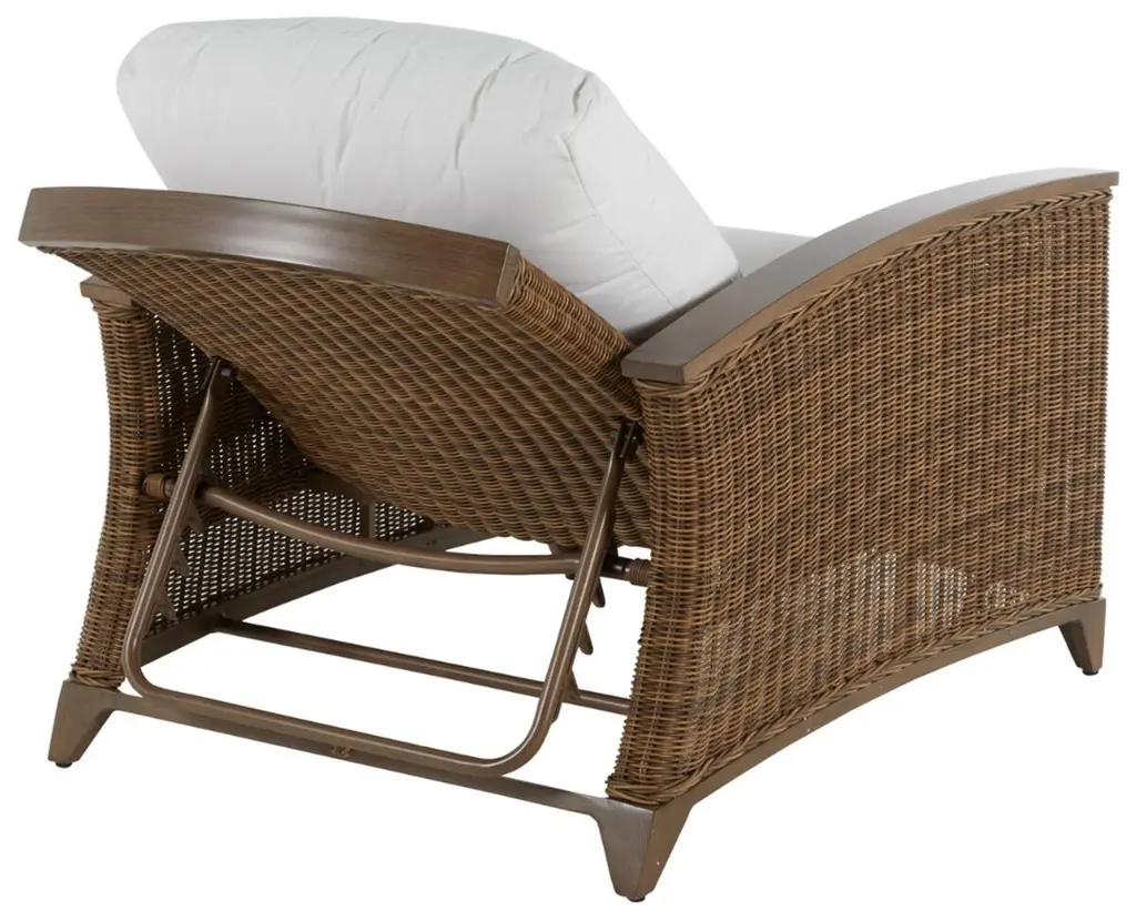 The Astoria Recliner Chair is an update of the classic outdoor wicker chair with the added bonus of it being able to recline. With sleek aluminum detailing and UV-resistant resin wicker over a heavy-gauge aluminum frame, this chair is built to withstand the outdoor elements. The back reclines with a simple mechanism similar to chaise lounges. The chair features an antiqued application and fine braiding detail for the utmost in quality and style. Cloud-soft cushions promise years of outdoor relaxation.