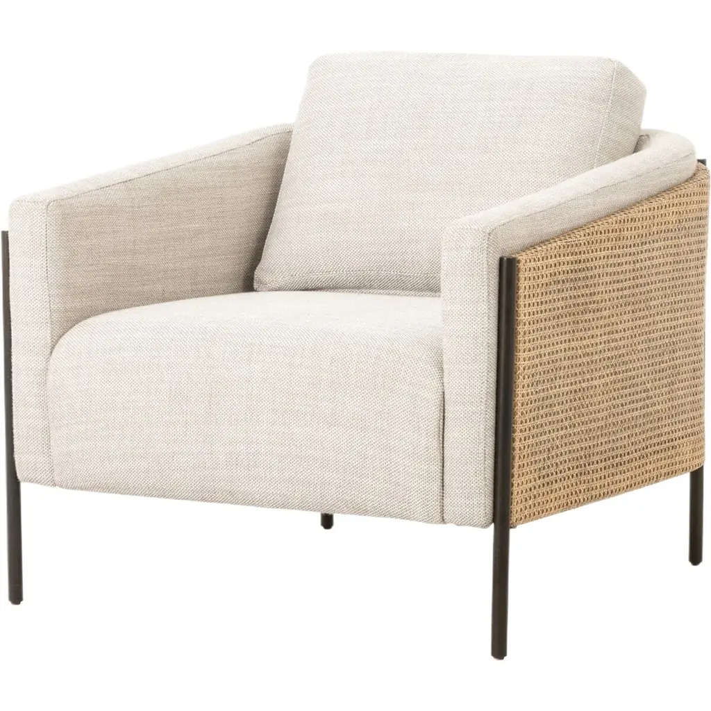 Crafted of rubberwood with a barrel-style silhouette, geometric framework, and natural cane paneling, this cozy club chair is sure to stand out in any space. Amply padded cushions ensure a comfortable seat.