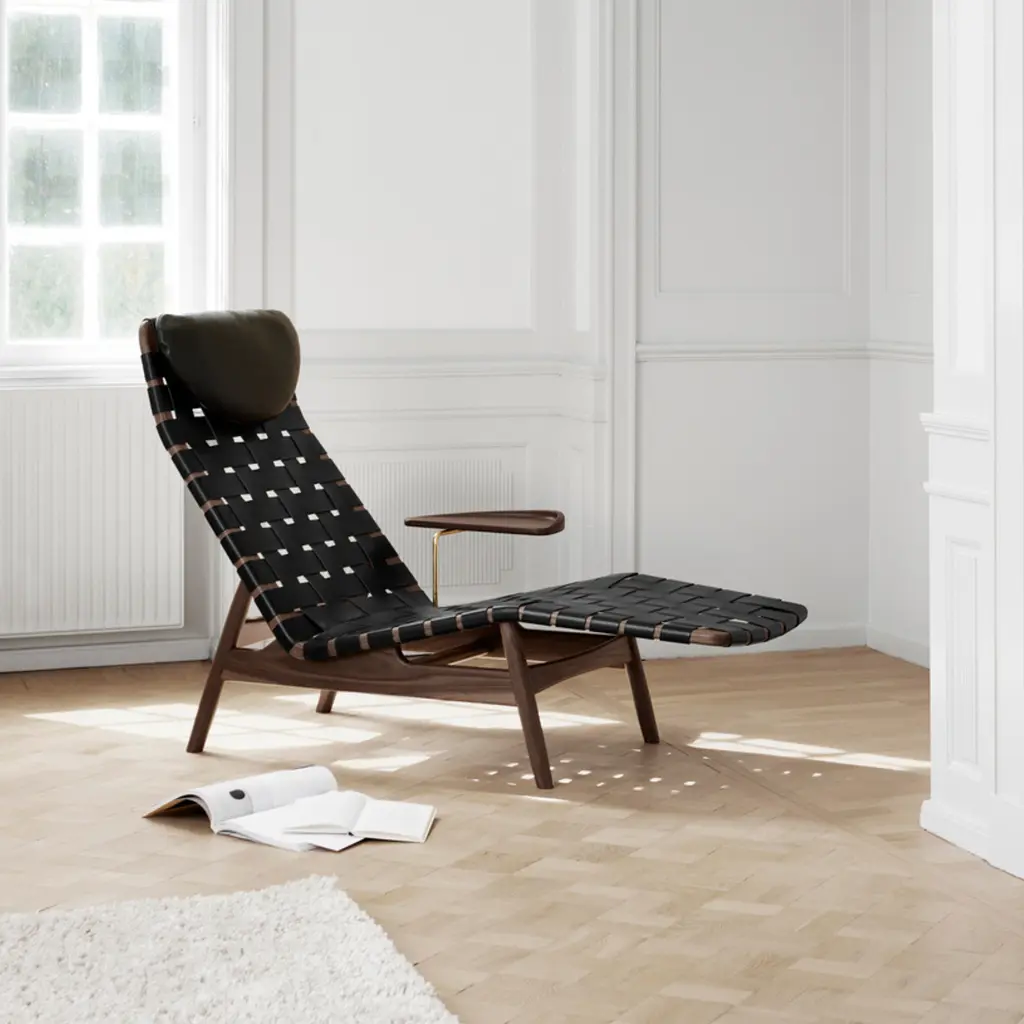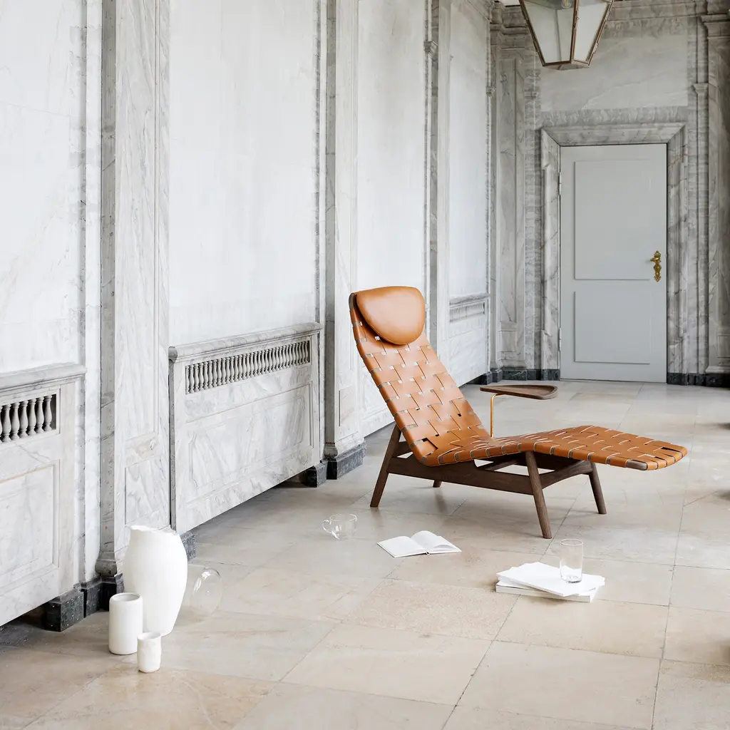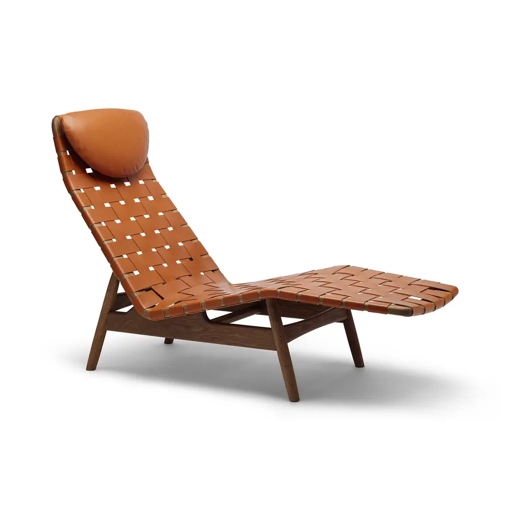 Bring a piece of Danish design history into your home with the Sibast AV Egoist Chaise Longue. Originally designed in 1951 by celebrated Danish architect and designer Arne Vodder, the AV Egoist lounge chair was initially produced in an extremely limited series. Now, Arne Vodder’s son, Michael Vodder, has partnered with Sibast Furniture to bring his father’s signature design back to life for a new generation of design lovers. Recreated with accuracy, the Sibast AV Egoist Chaise Longue features the same graceful silhouette and tactile blend of natural materials. A pleasure to use and to admire, this elegant chaise longue features woven leather wrapped around a wood frame, to bring exceptional warmth and coziness to your favorite lounge area. AV Egoist comes in different versions, to complement any décor and color palette. While the frame comes in walnut, white oiled oak, or smoked oak, the leather is available in Black, Cognac and Nature colors. A cushion provides excellent head support, while an optional side table provides the perfect way to relax with a cup of coffee and a book. Crafted to be a part of your home for generations, the Sibast AV Egoist Chaise Longue will develop the marks of a well-loved piece of furniture over time.