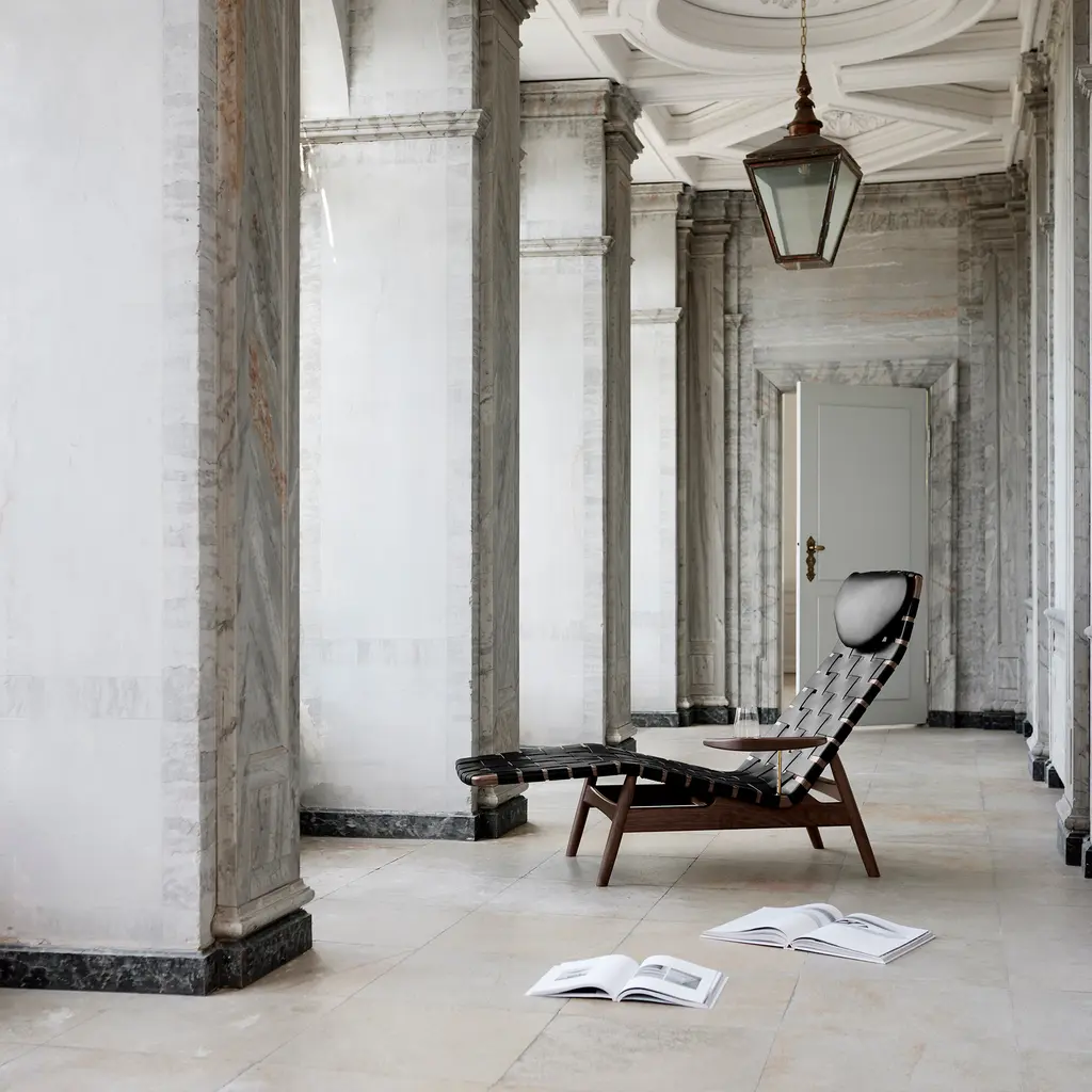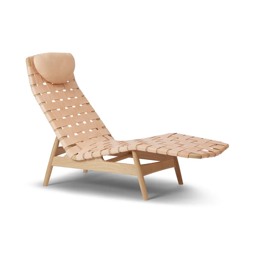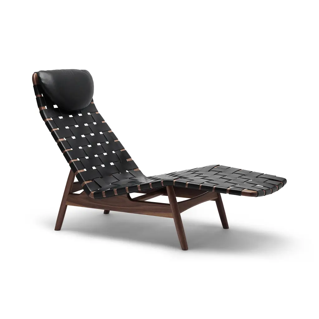 Bring a piece of Danish design history into your home with the Sibast AV Egoist Chaise Longue. Originally designed in 1951 by celebrated Danish architect and designer Arne Vodder, the AV Egoist lounge chair was initially produced in an extremely limited series. Now, Arne Vodder’s son, Michael Vodder, has partnered with Sibast Furniture to bring his father’s signature design back to life for a new generation of design lovers. Recreated with accuracy, the Sibast AV Egoist Chaise Longue features the same graceful silhouette and tactile blend of natural materials. A pleasure to use and to admire, this elegant chaise longue features woven leather wrapped around a wood frame, to bring exceptional warmth and coziness to your favorite lounge area. AV Egoist comes in different versions, to complement any décor and color palette. While the frame comes in walnut, white oiled oak, or smoked oak, the leather is available in Black, Cognac and Nature colors. A cushion provides excellent head support, while an optional side table provides the perfect way to relax with a cup of coffee and a book. Crafted to be a part of your home for generations, the Sibast AV Egoist Chaise Longue will develop the marks of a well-loved piece of furniture over time.