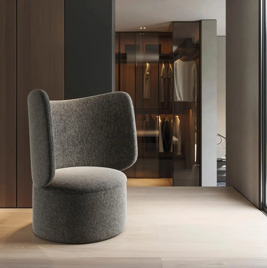This contemporary lounge chair esthetic is reminiscent of the sinuous forms and clean and neutral lines of classical architecture. It envelops and hugs you, the base joins the backrest in a warm and subtle way.Contact us to inquire about COM/COL instructions.Dimensions:Width 98 cm - 38.6”Depth 80 cm - 31.5”Height 106 cm - 41.7”Please contact us if you have any questions about customization and pricing. We will be glad to check with the factory’s technical team if sizes, finishes, and colors can be customized. We do our best to expedite production and to ship and deliver product within the listed lead time, however current lead times might be longer due to global shipping backlog and delays. These delays are out of our control and cannot be a reason to cancel an order.