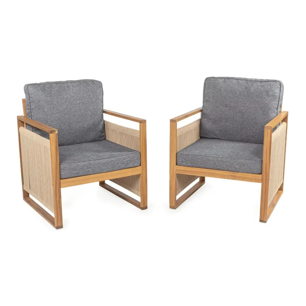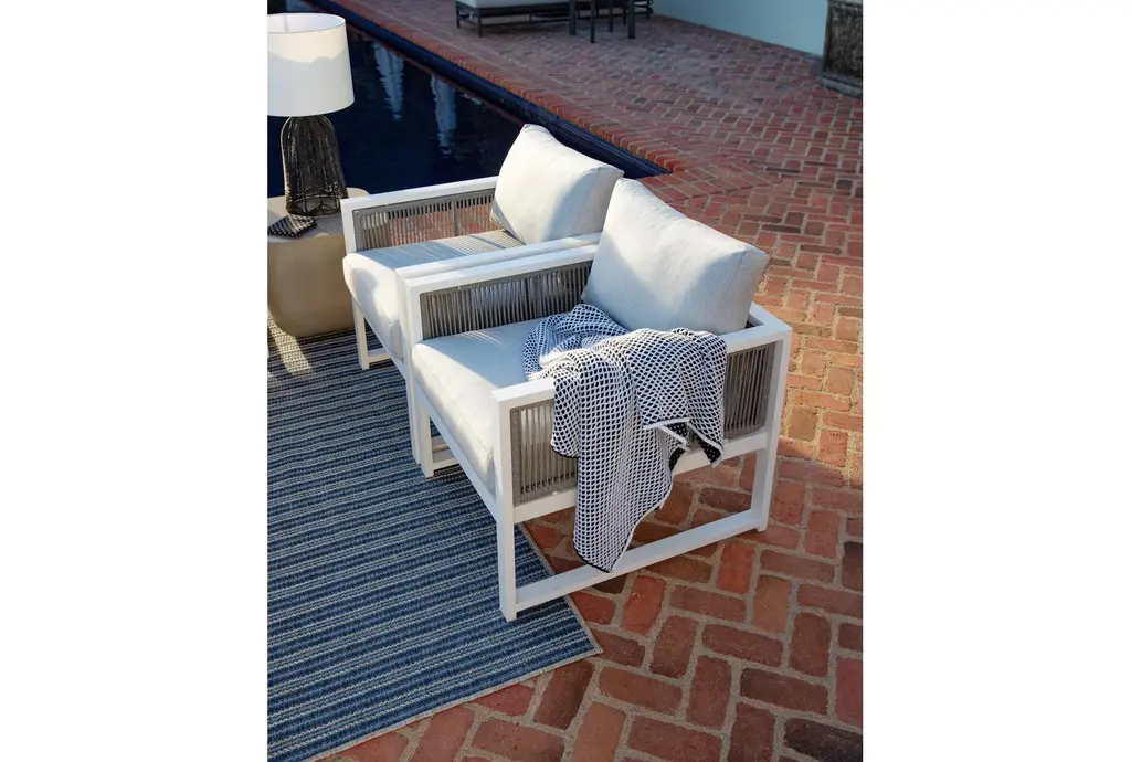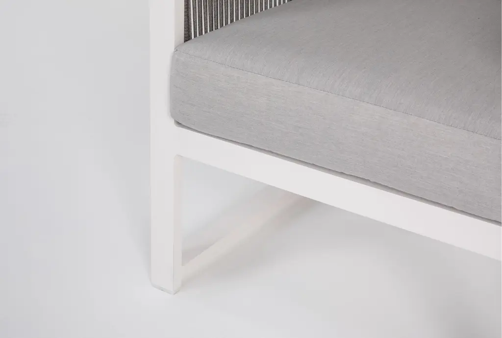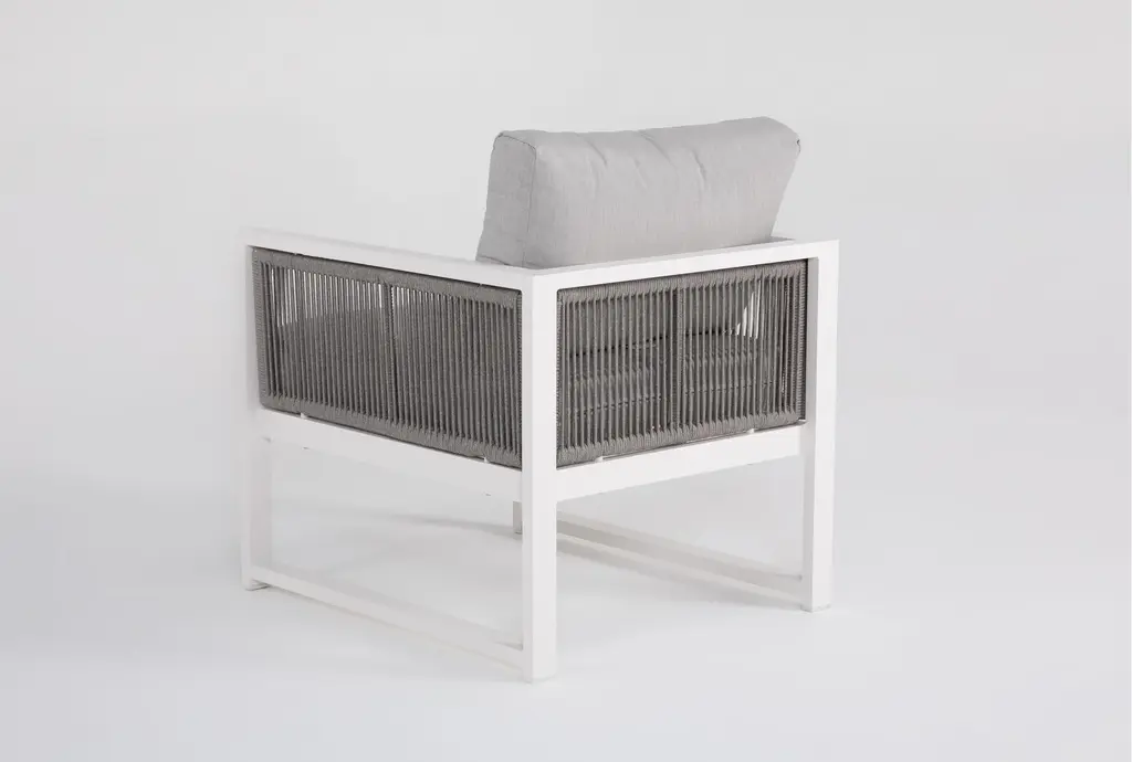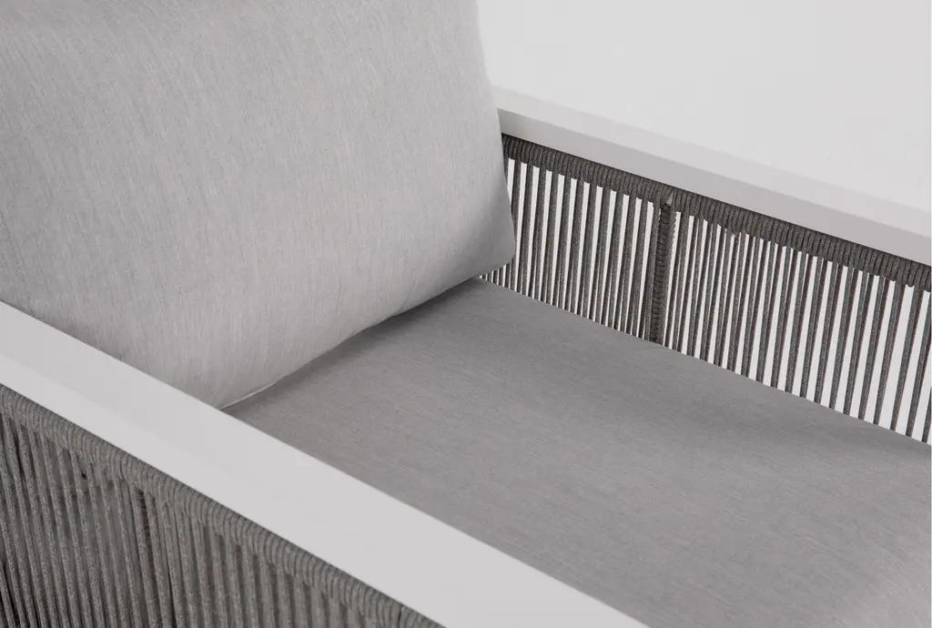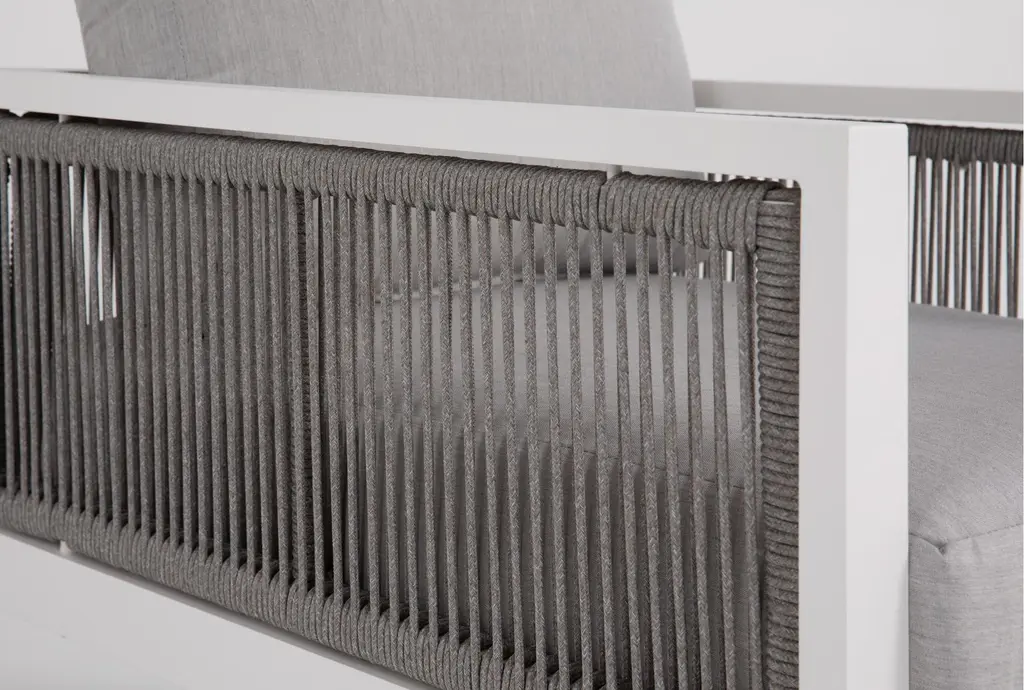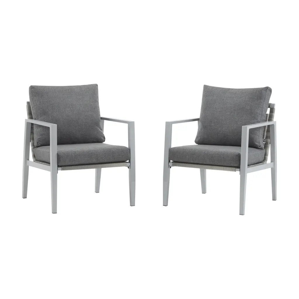 Enhance your outdoor space with the Avila White Metal + Grey Rope 2 Piece Conversation Set with Arms. This modern set combines white and grey hues with durable materials to create a stylish and functional addition to your patio, deck, or veranda. Designed for comfort and longevity, the set is perfect for lounging and enjoying the outdoors.