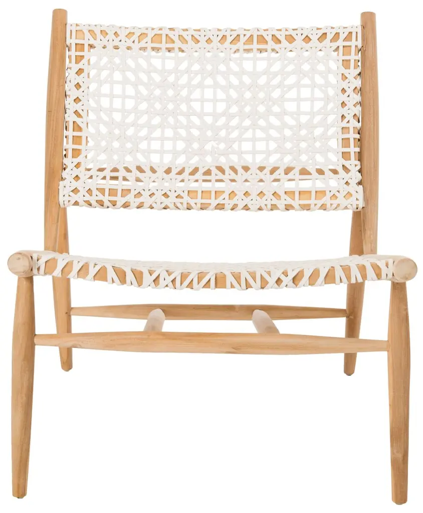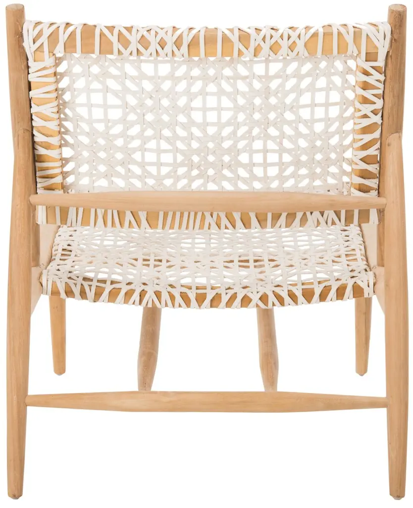 Avirair Teak/leather Accent Chair, White/natural
