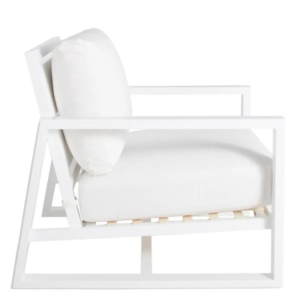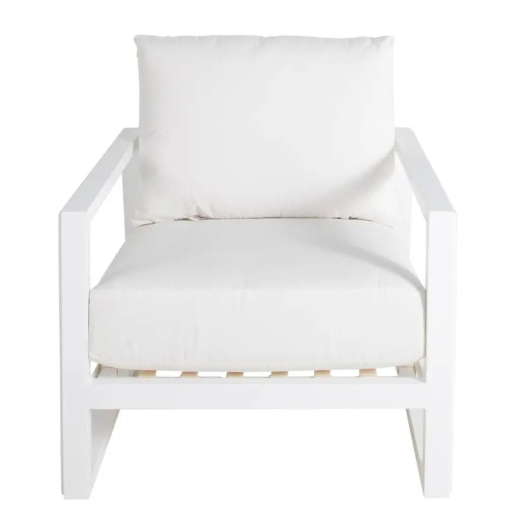 The Avondale Aluminum Lounge Chair features a classic mid-century modern design with deep seating and simple lines. Made of premium wrought aluminum and finished with a durable powder-coating, this stylish chair is built to last for years of outdoor enjoyment. This chair mixes well with aluminum dining pieces, accent tables, and a variety of other outdoor styles.