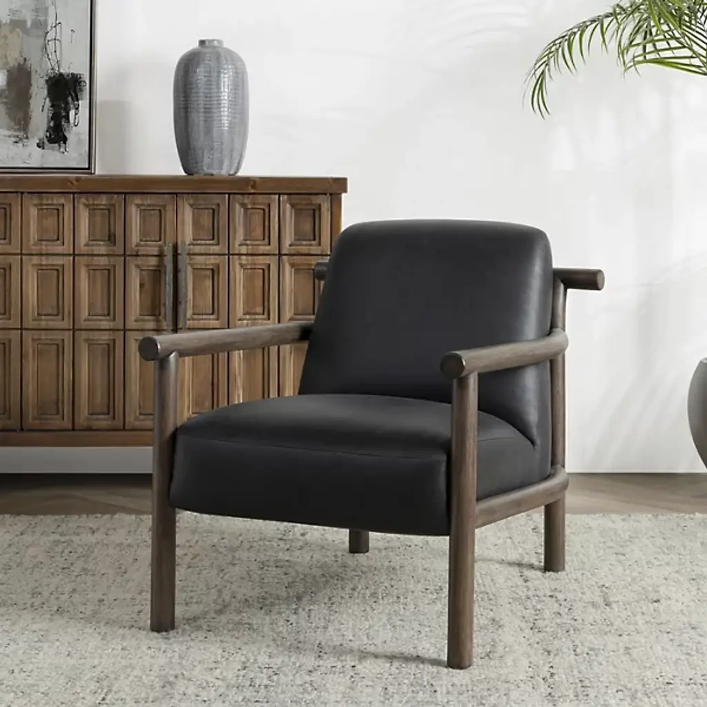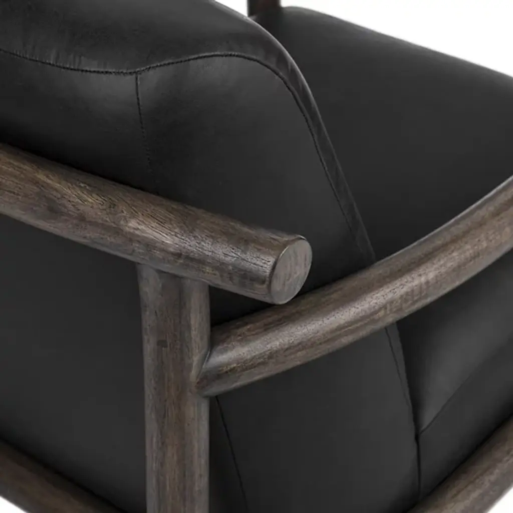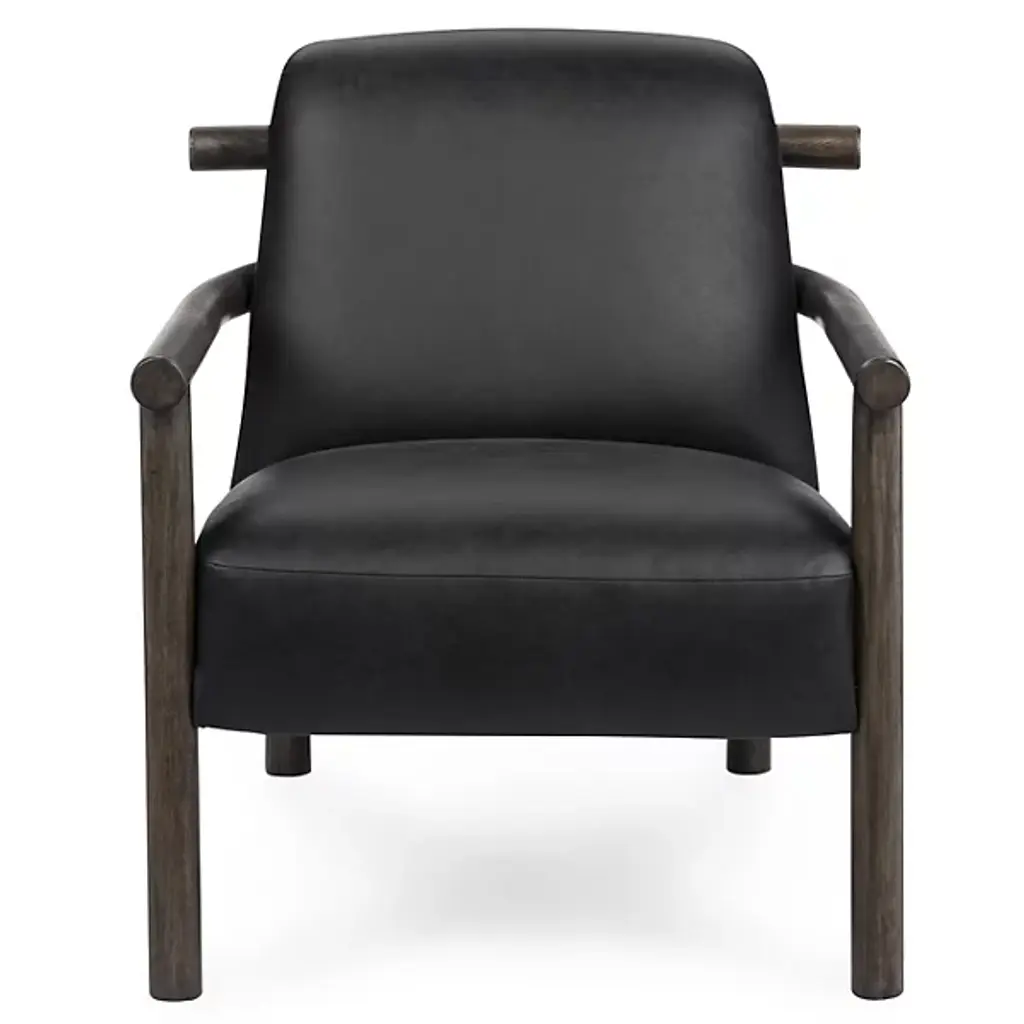 The Azoria Accent Chair from Classic Home combines contemporary comfort with rustic charm. Featuring soft curves and a plush backrest backed by an upper arc that overlaps the frame to double as handles, it’s easy to reposition and perfect for rapidly changing living spaces. Upholstered in luxurious top-grain leather and filled with plush foam, this chair delivers both style and support. Sturdy rubberwood legs add durability and a natural touch, pairing well with rustic, modern, or contemporary interiors.