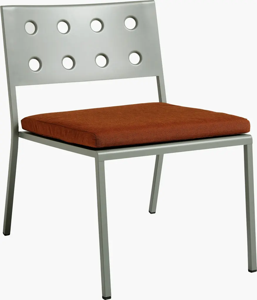 HAY’s Balcony lounge armchair is part of a clever collection of outdoor furniture designed by the Bouroullec brothers. Made of thin steel sheet, the elegant Balcony lounge chairs are incomparably light and easy to move, and they can also be stacked on top of each other to save space – a perfect addition to the balcony, garden or patio. Featuring a weather-resistant coating the Balcony collection is as carefree as it looks. The round holes pressed through the steel plate provide multiple functions: they add character and softness to the geometrical design and allow rainwater to drain off the chair's surface, while also strengthening the structure of the furniture. Add some extra comfort and complete the look with Balcony cushions, sold separately.