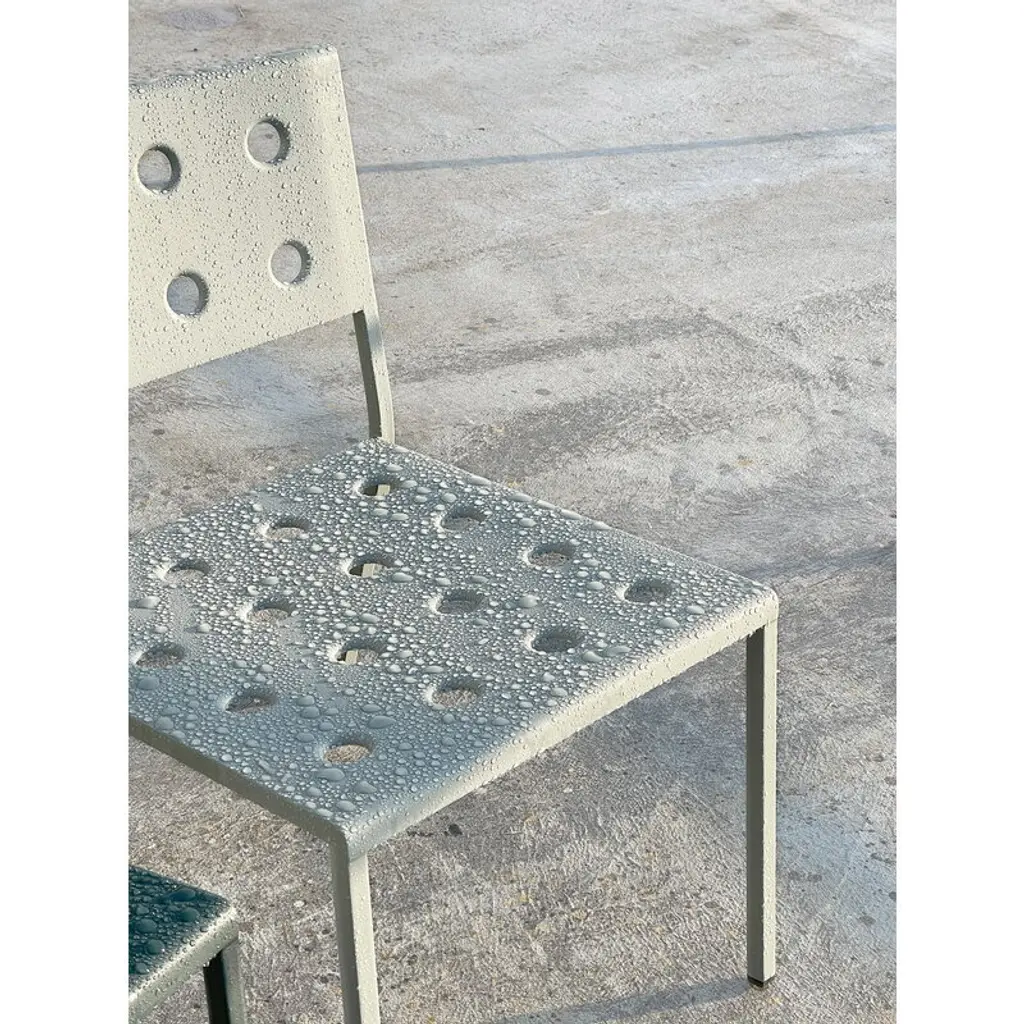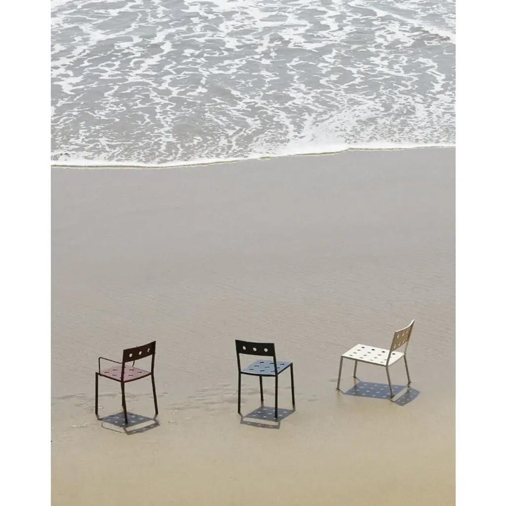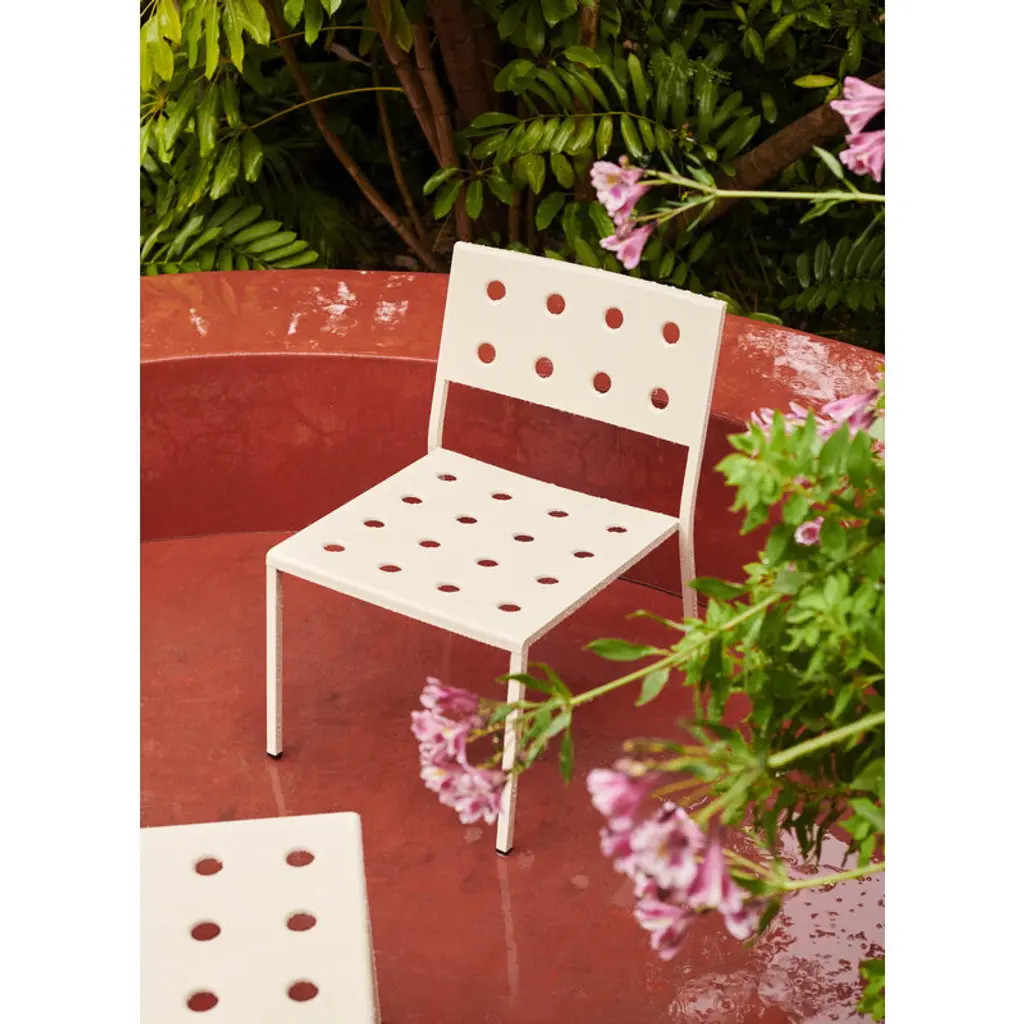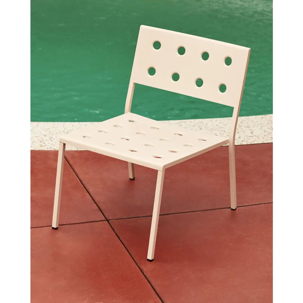 HAY’s Balcony lounge chair is part of a clever collection of outdoor furniture designed by the Bouroullec brothers. Made of thin steel sheet, the elegant Balcony lounge chairs are incomparably light and easy to move, and they can also be stacked on top of each other to save space – a perfect addition to the balcony, garden or patio. Featuring a weather-resistant coating the Balcony collection is as carefree as it looks. The round holes pressed through the steel plate provide multiple functions: they add character and softness to the geometrical design and allow rainwater to drain off the chair's surface, while also strengthening the structure of the furniture. Add some extra comfort and complete the look with Balcony cushions, sold separately.