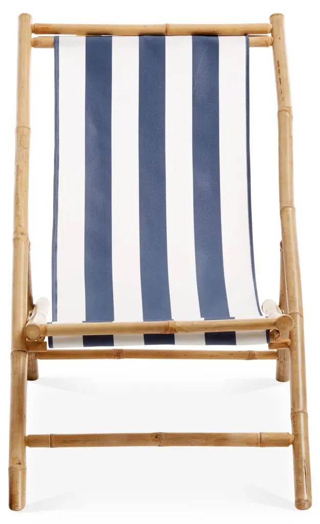 Relax in sustainable style with this artisan-crafted bamboo lounge chair, featuring a striped sling seat, hinged hardware, and locking knife supports. It also folds for easy storage, which is recommended when not in use. Because each item is made using natural materials, minor variations should be expected.
