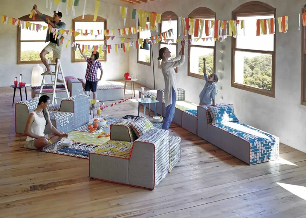 Fibre composition: 100% new wool.Filling: Wood frame and 30 kg foam rubber.Modularity taken to the limit. All the pieces in the BANDAS collection can be interchanged.An ingenious system, designed by the extraordinary Patricia Urquiola, allows the collection to be adapted to any space, any personality and any mood.Life is change and BANDAS will change with you.