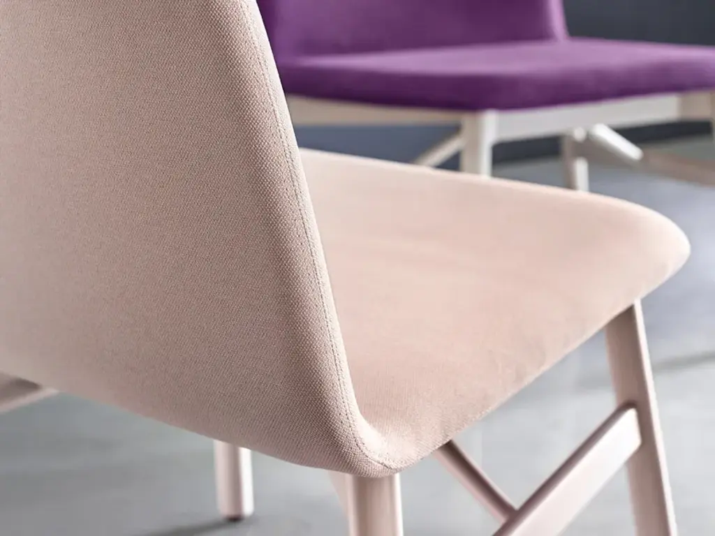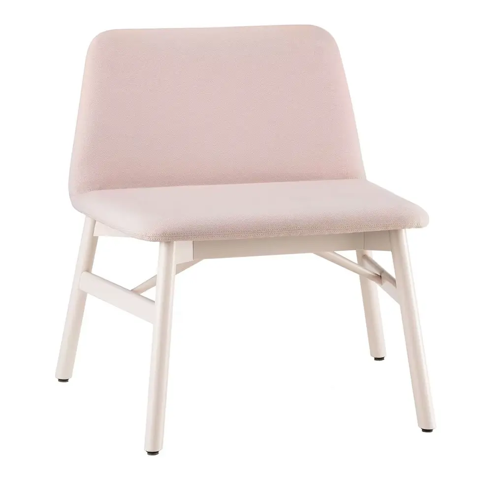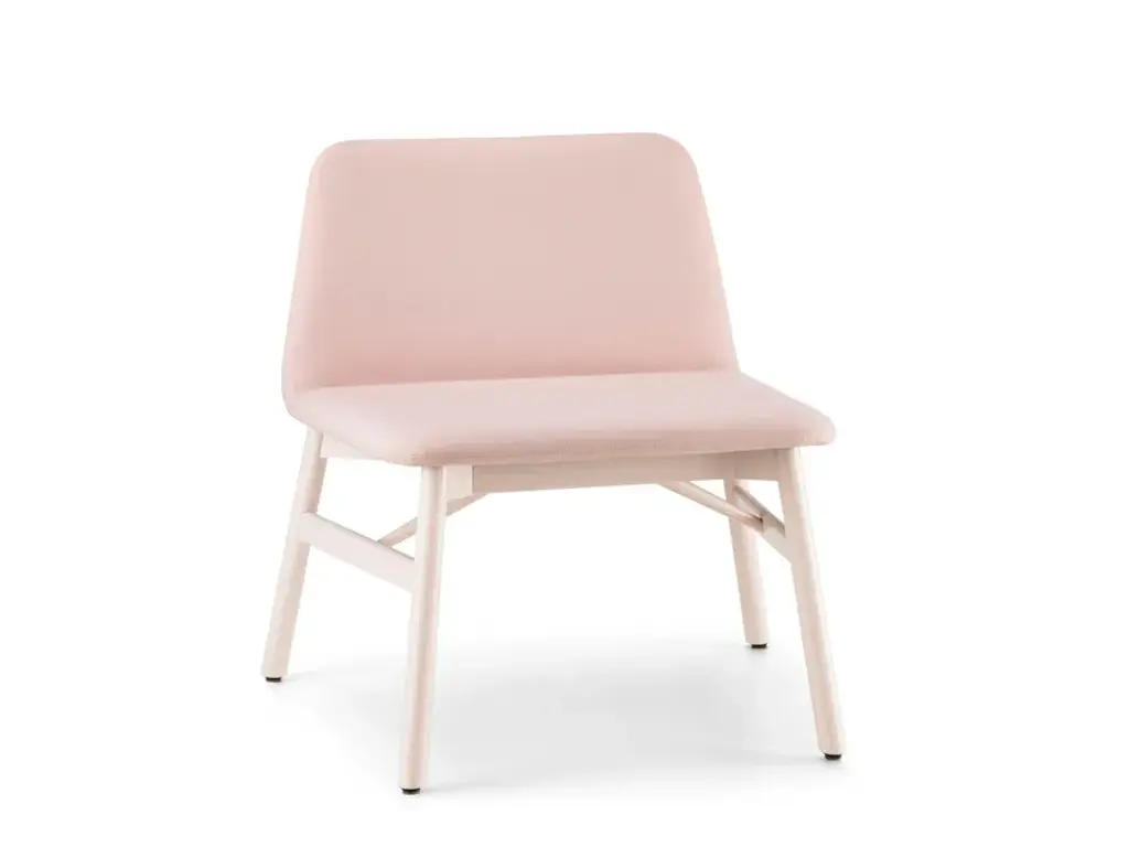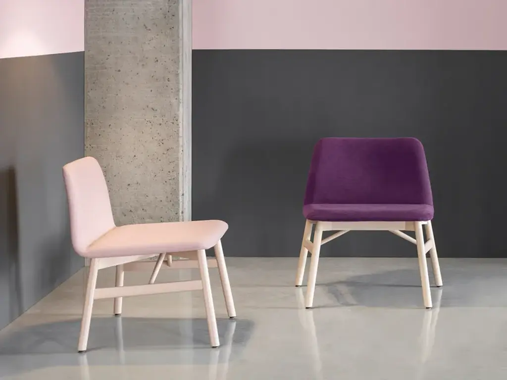 Lounge chair with base in beechwood and padded shell from the BARDOT collection, designed by Emilio Nanni.
