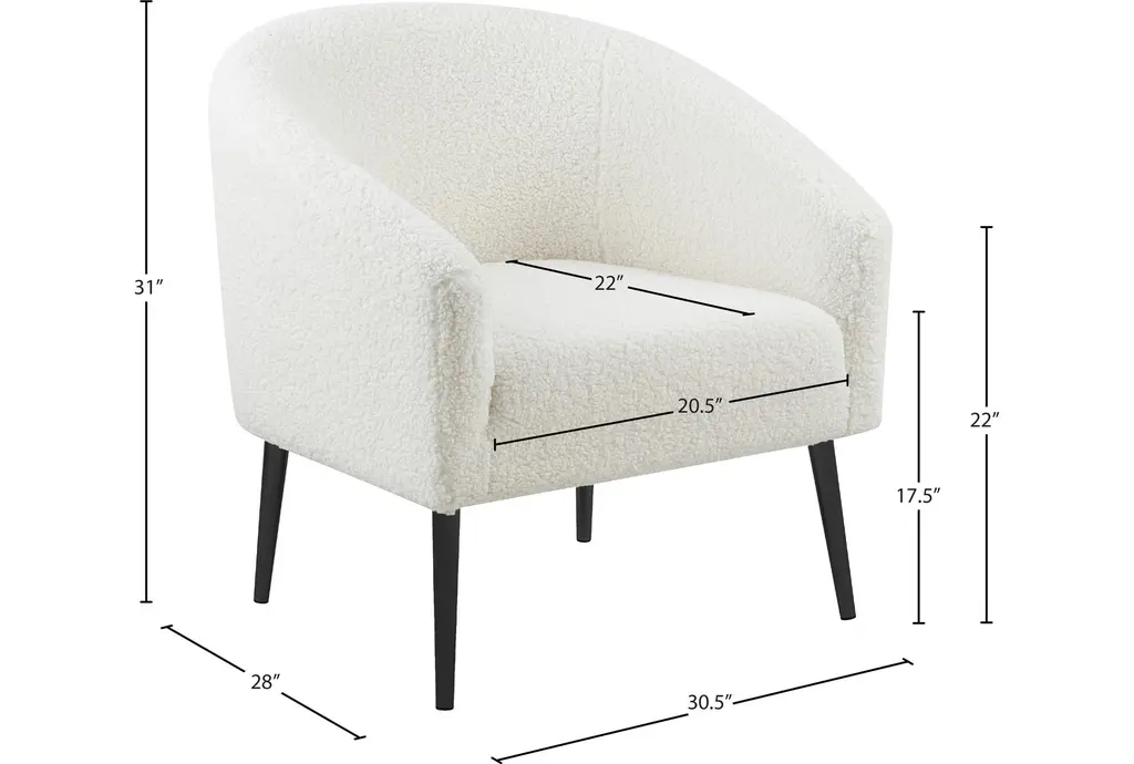 The Barlow White Faux Sheepskin Fur Accent Chair offers a cozy and stylish addition to your living space. Upholstered in soft faux sheepskin, this chair provides comfort and warmth. Its curved design and supportive arms make it perfect for lounging or adding a touch of luxury to your room.