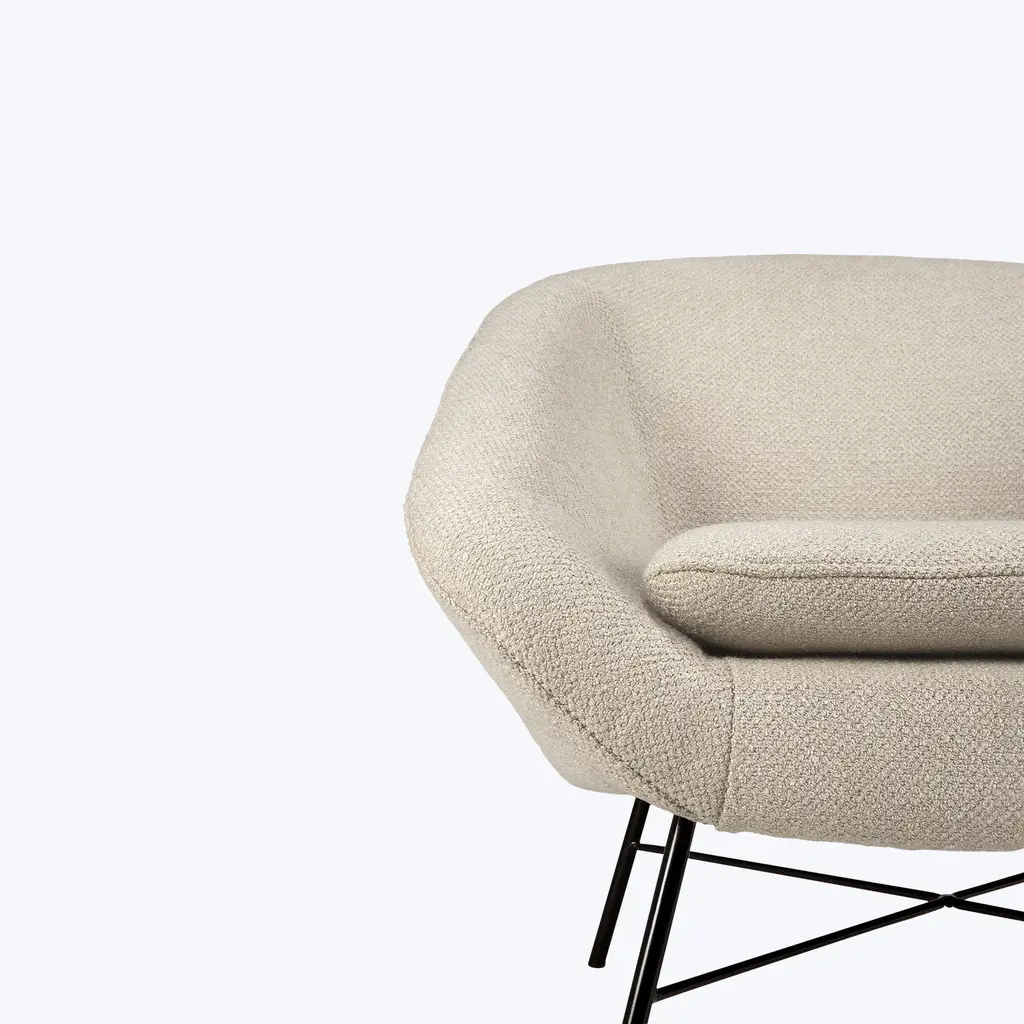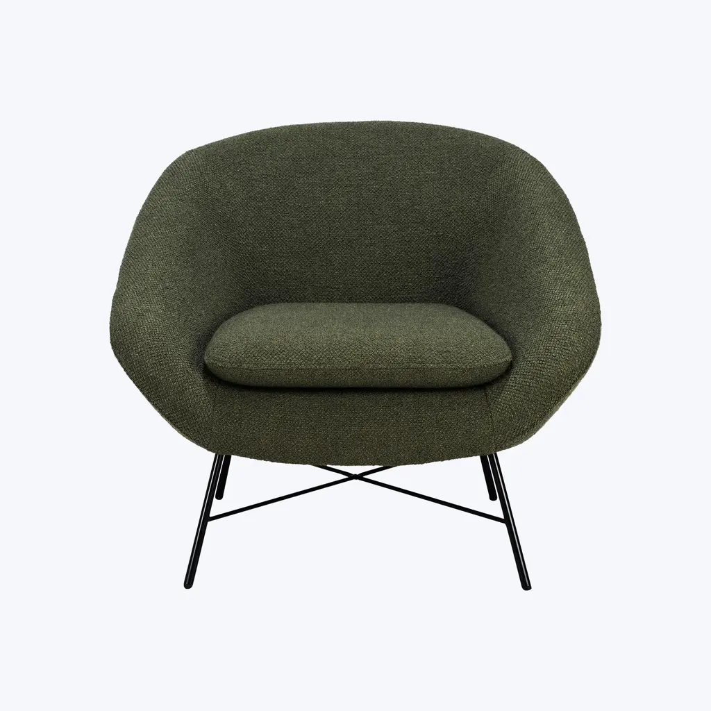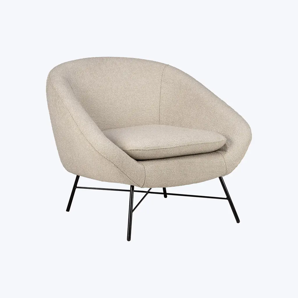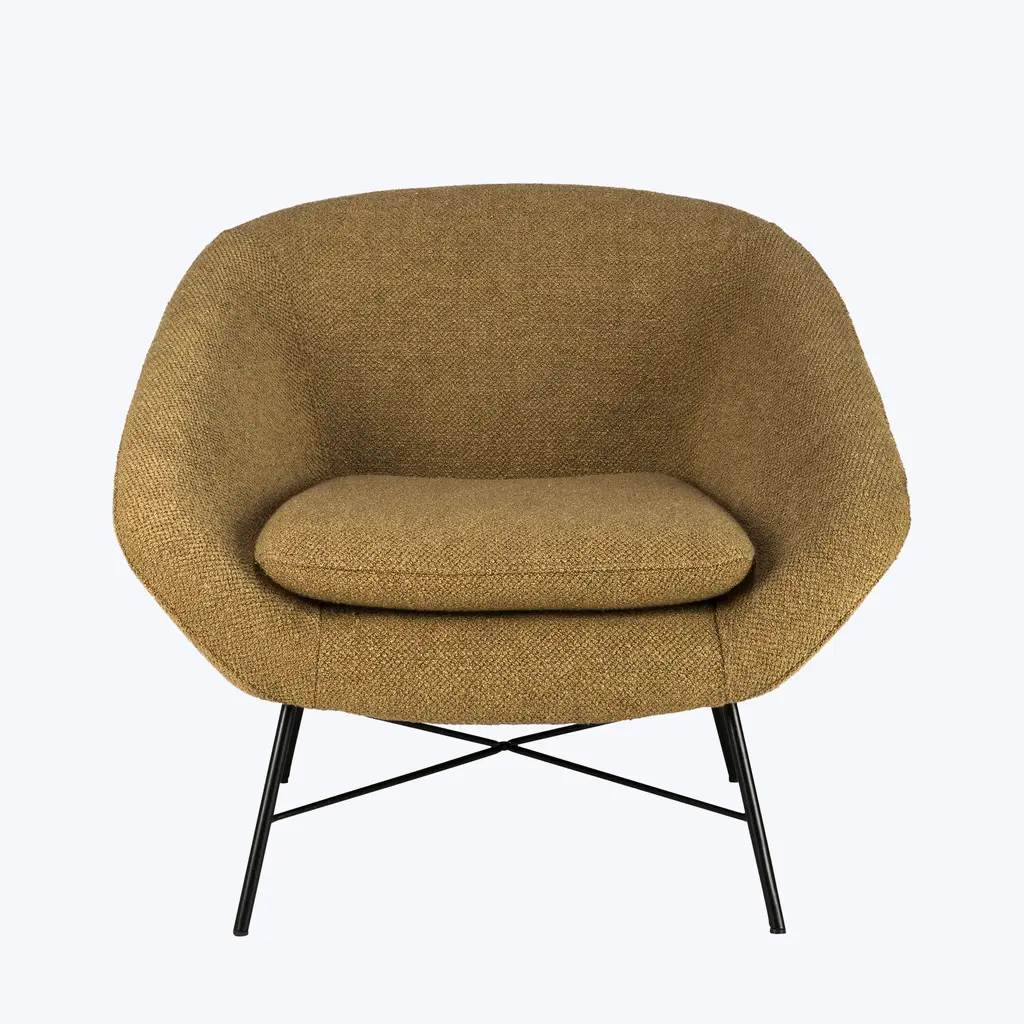 The Upholstered Barrow Lounge Chair, crafted in Poland, combines vintage 50s-inspired design with modern comfort. Measuring 32" W x 31.5" D x 28" H, with a seat height of 16.5", this chair is available in off-white, ginger, pine green, and copper upholstery options. The chair features a lightweight metal base that enhances its timeless, retro aesthetic while providing sturdy support. The soft, plush upholstery wraps around the seat, inviting you to sink into its comfort while the sleek metal legs create an elegant contrast, highlighting the chair’s modern design. Weighing 42 lbs, the Barrow Lounge Chair offers both durability and exceptional comfort, making it a perfect addition to any living space. With its elegant yet casual design, this Barrow chair blends seamlessly into a variety of interiors, bringing a touch of vintage charm and modern sophistication to your home. Whether placed near a window or beside a bookshelf, its inviting presence adds a sophisticated focal point to any room.