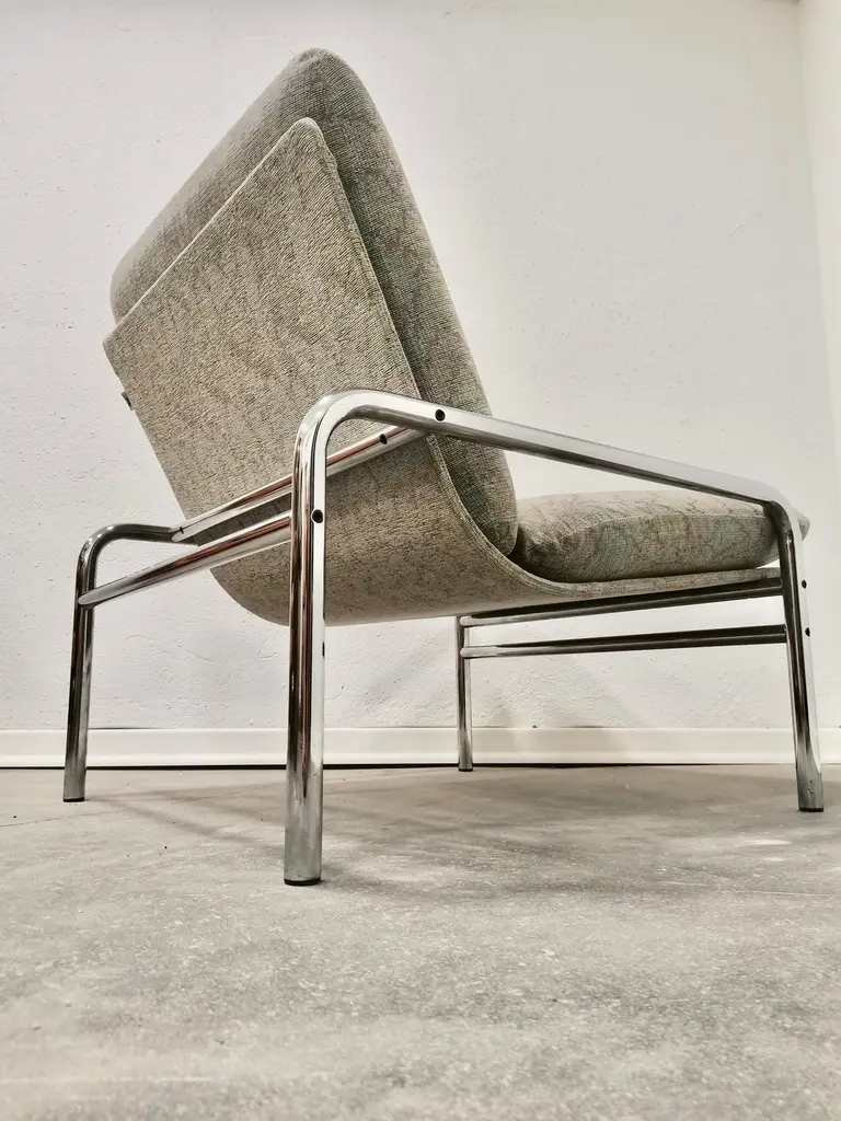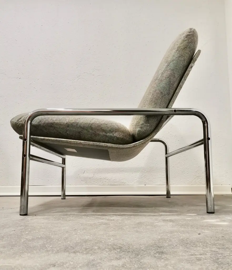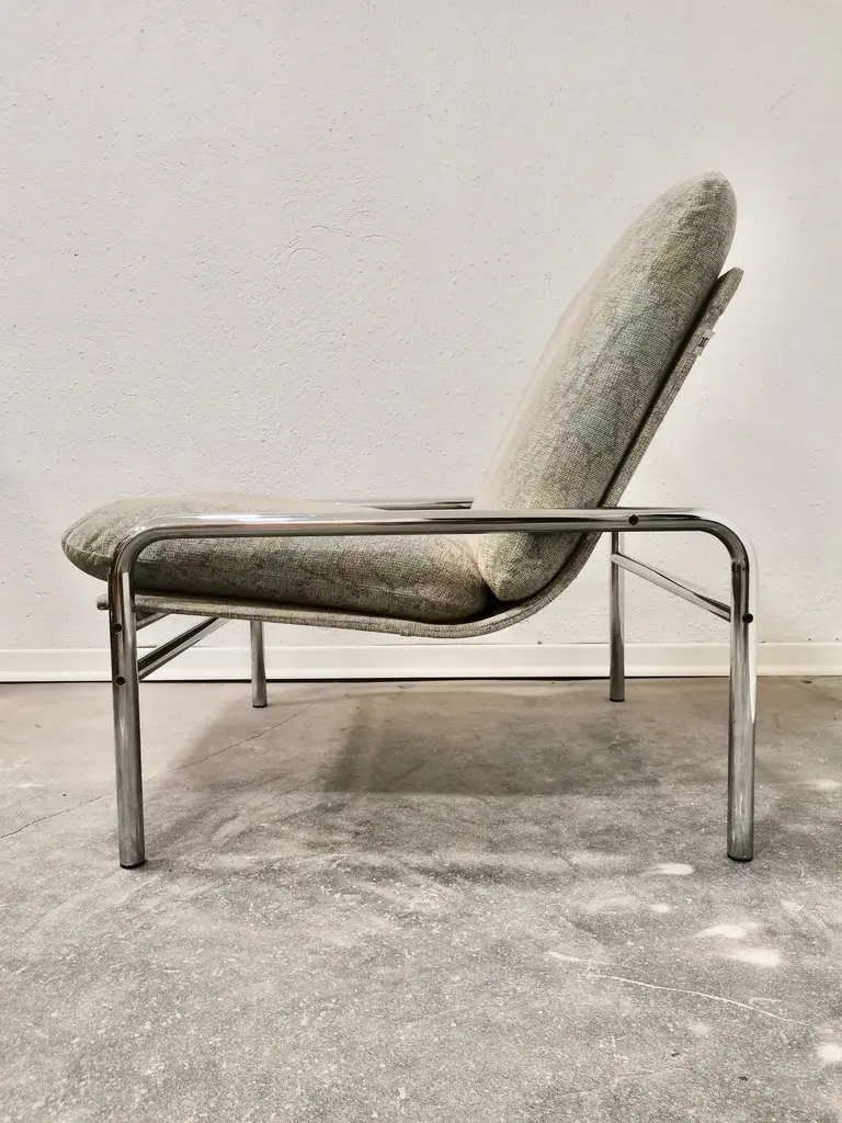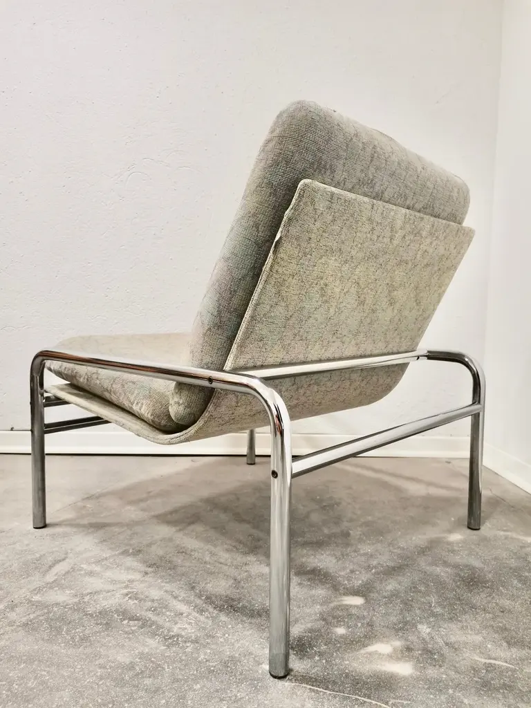 Very rare lounge chair which was produced in late 1980s by Stol Kamnik. Its modern look is still fashionable with reminiscence of Bauhaus period. It is beautiful and very comfortable. It can be paired with any style of vintage furniture. A touch of luxury from the 80s.
