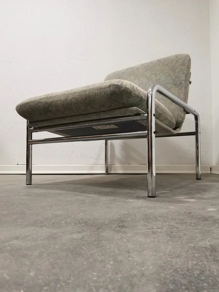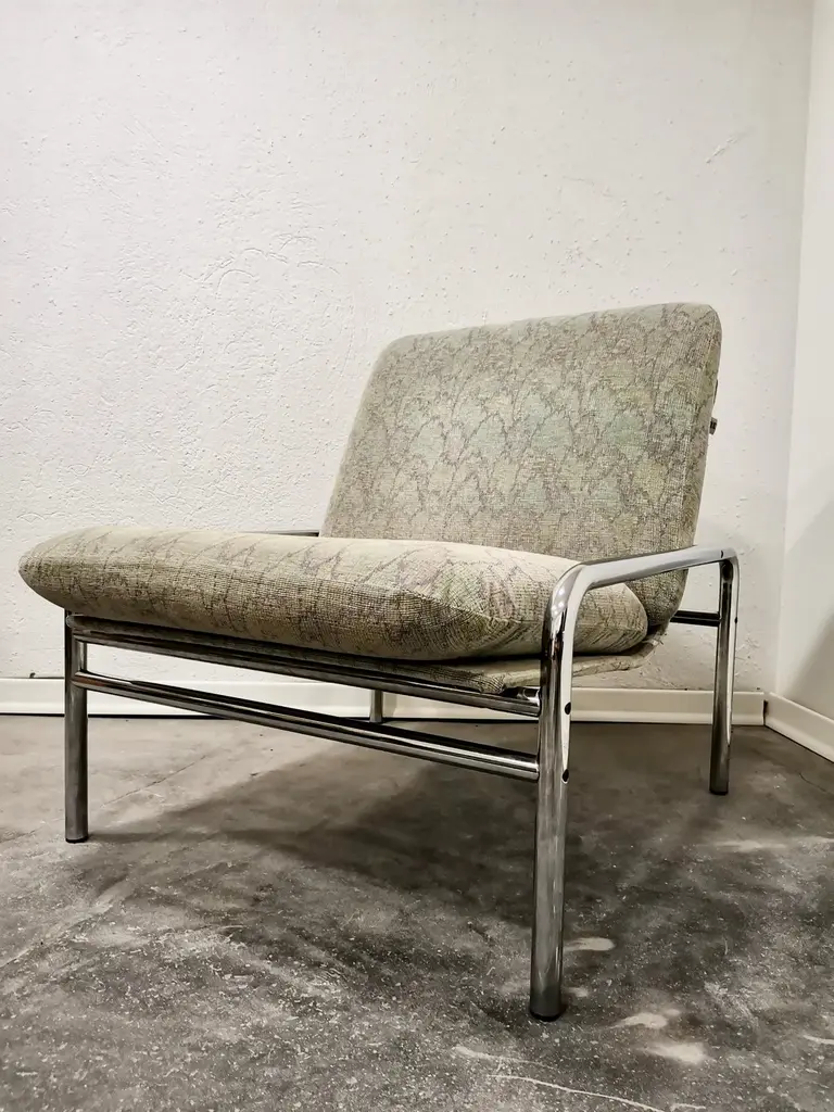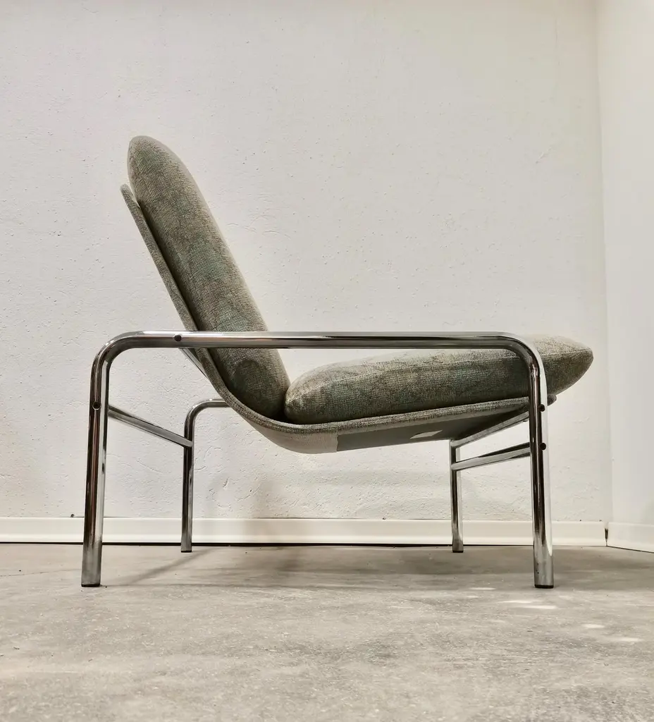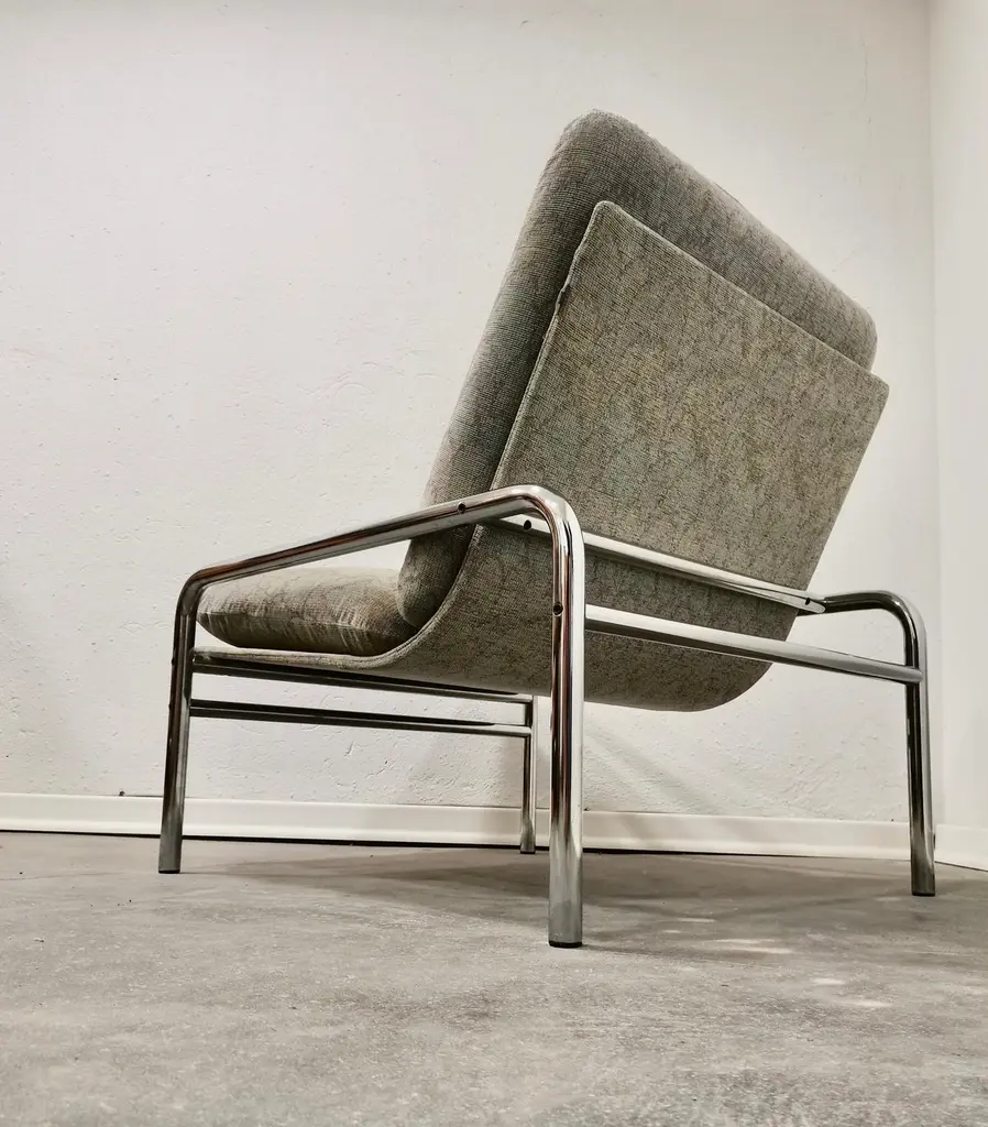 Very rare lounge chair which was produced in late 1980s by Stol Kamnik. Its modern look is still fashionable with reminiscence of Bauhaus period. It is beautiful and very comfortable. It can be paired with any style of vintage furniture. A touch of luxury from the 80s.