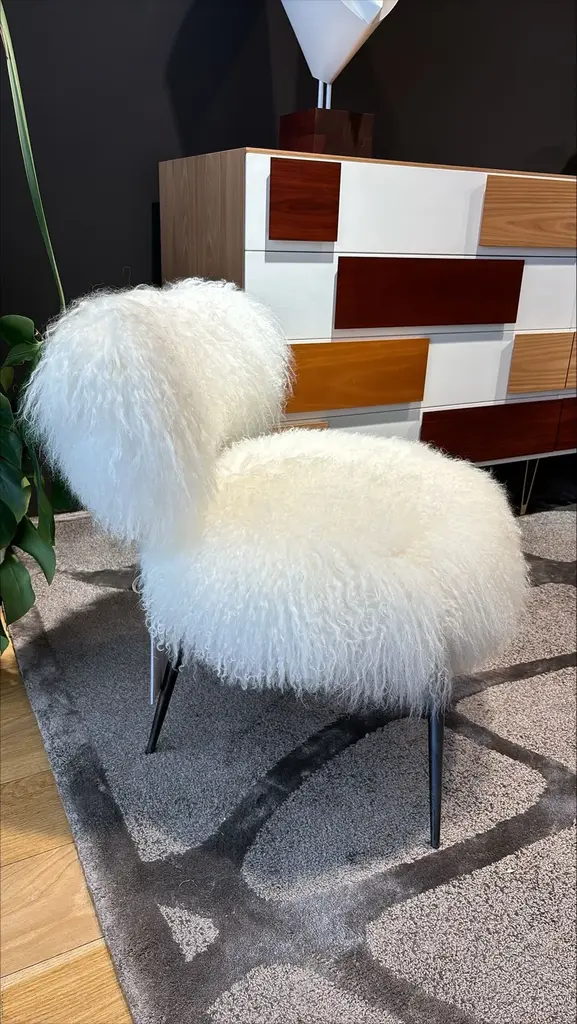 NEPAL is a little armchair designed by Paola Navone.Metal frame, stove-enamelled finish with antioxidant protection with clear matte enamel. Birch plywood seat; backrest in curved beech plywood. Differentiated density polyurethane foam padding with fibre acrylic upholstery.Available in white mongolia leather.******************************************************************************************PURCHASE INFORMATIONArticle displayed at the Archiproducts Bari showroom - Corso V. Emanuele II, 189 Bari.******************************************************************************************