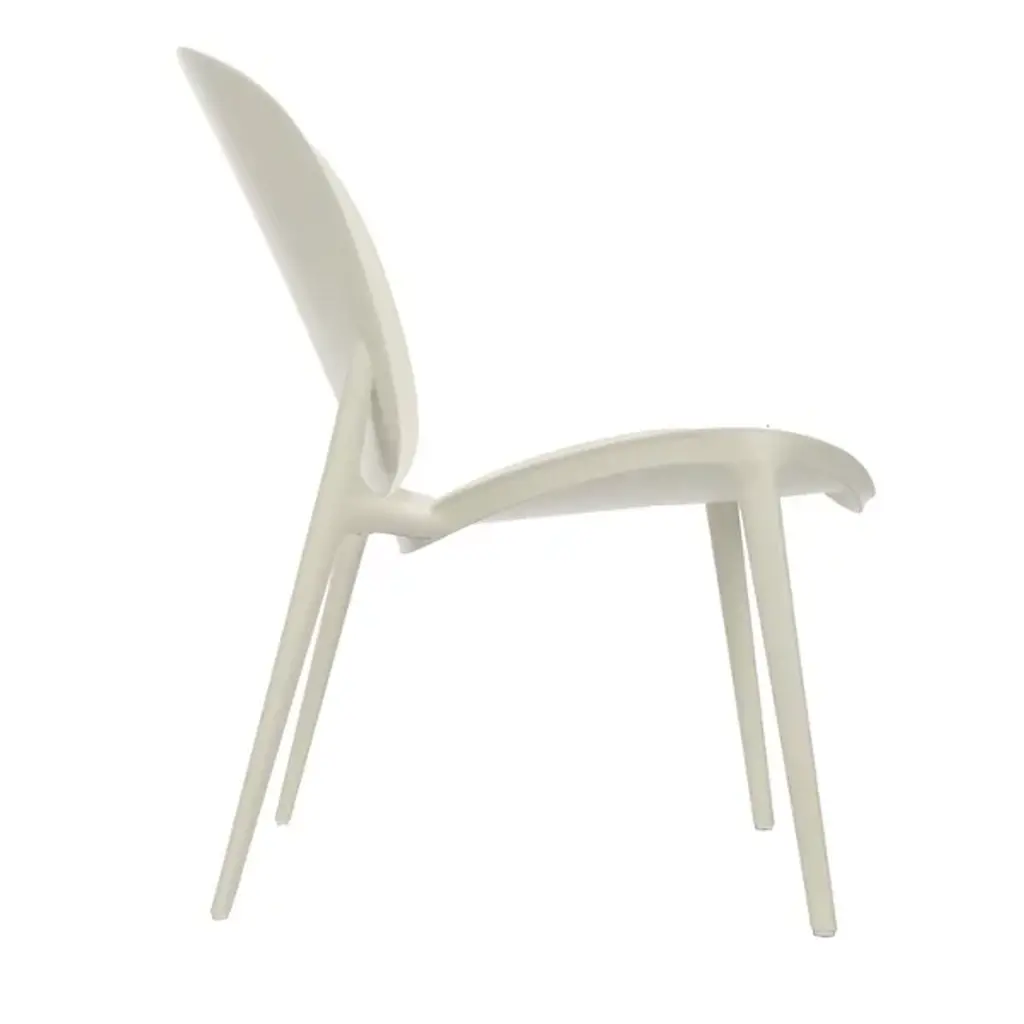 Relax into the steady beat of the Be Bop Lounge Chair, a curving contemporary design by Kartell. Designed in 2018 by the talented Ludovica and Roberto Palomba, and made in Italy, it blends the lines of traditional African stools with modern American design, as its thin legs telescope out in width as they angle inward to support a curving seat and back. The polypropylene material and smooth surfaces may appear stark at first glance but Be Bop’s gentle curves offer a symphony of support.