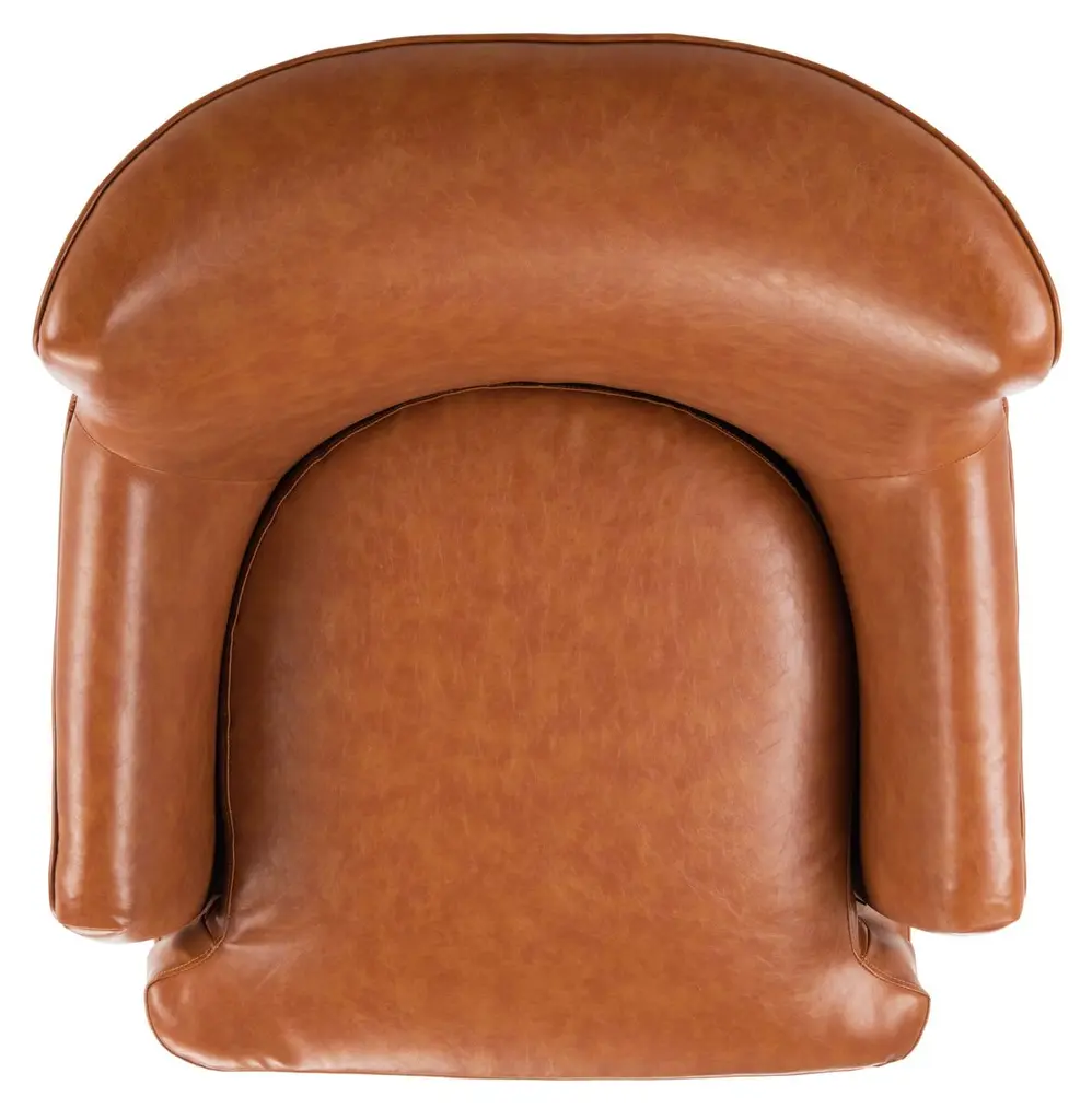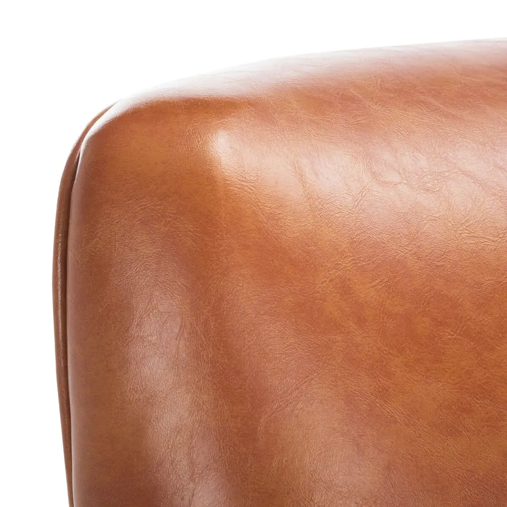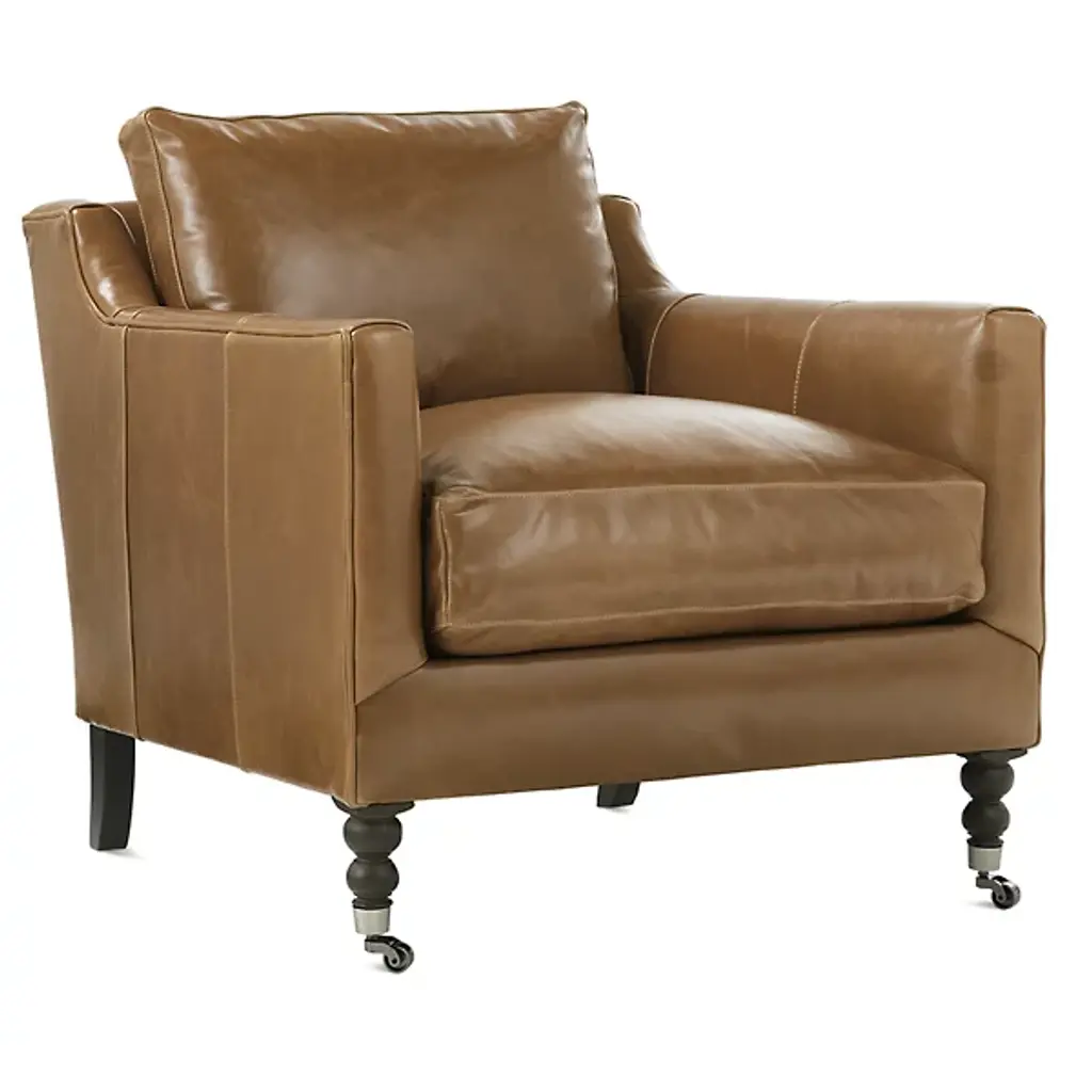 This armchair's handsome silhouette and turned front legs give it a timeless stateliness; generous cushioning provides optimal comfort. The durable upholstery looks and feels like supple leather but is actually cruelty free.