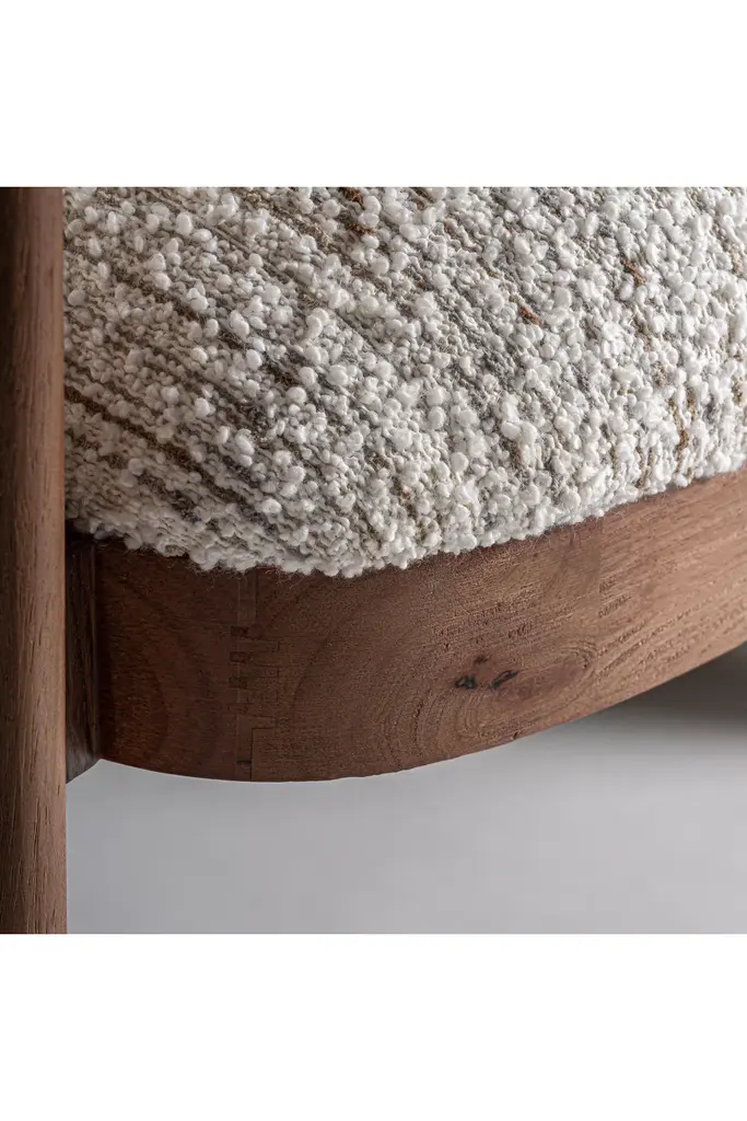 Introducing the sophisticated Beige Round Back Armchair from Vical Home. Inspired by art deco, this Erbach armchair exudes elegance with its pine wood frame and mottled beige polyester upholstery. Sink into the comfort of its foam cushioning and elevate your living space with this luxurious piece.