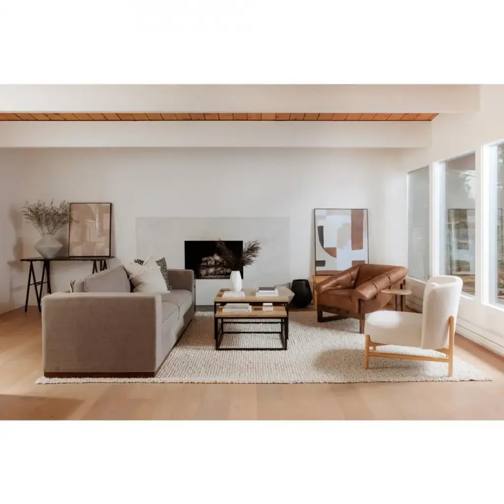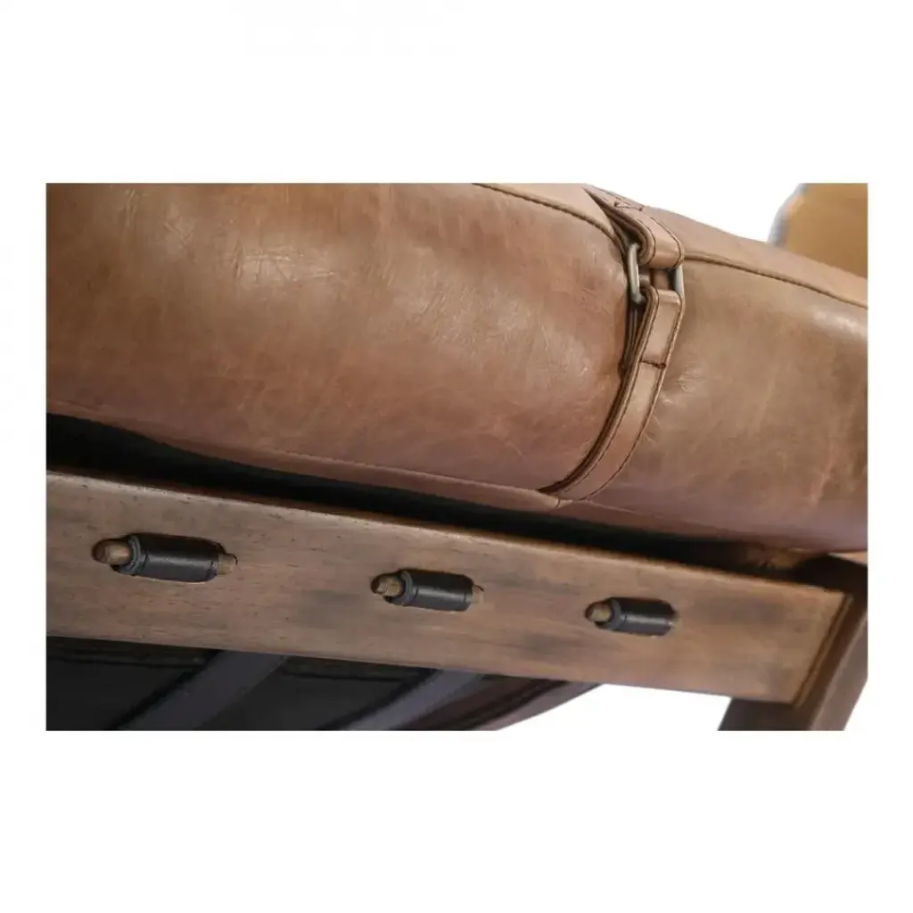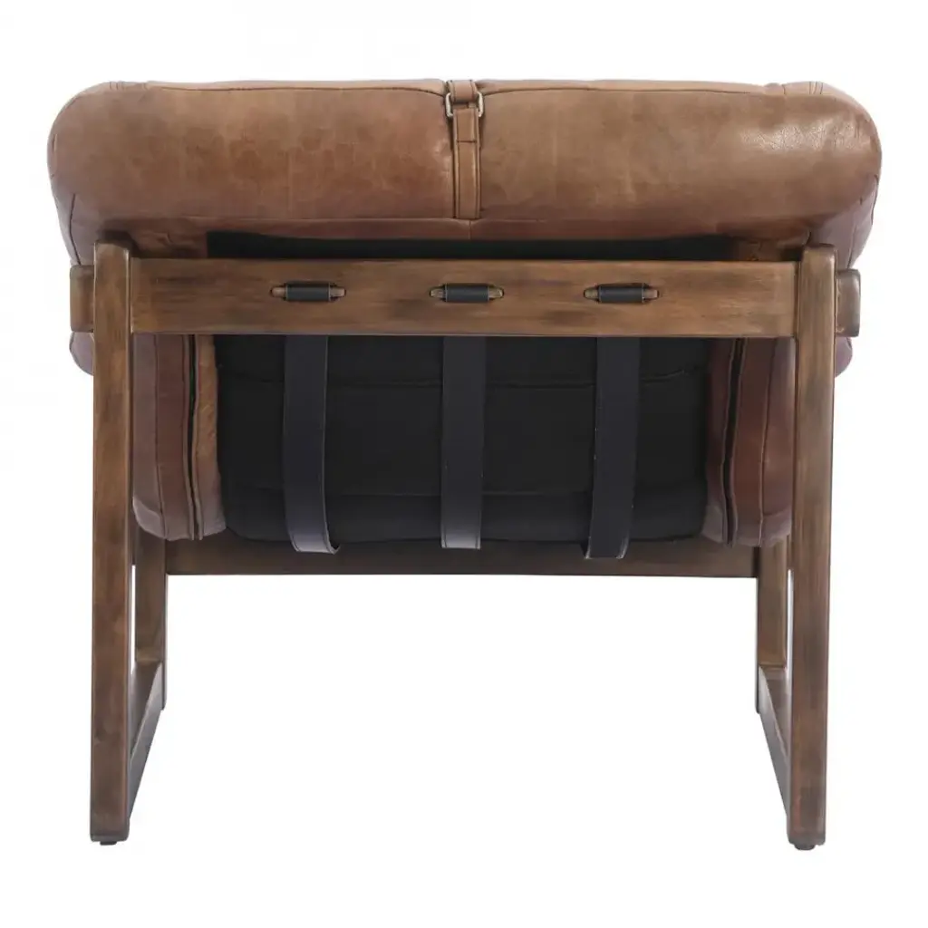 A Mid-Century delight, the Bellos Accent Chair features tactile allure upholstered in rich top-grain leather that will only mellow with age. Strapped detailing is matched with a low-slung silhouette and lightly tufted seat, an invitation to statement, comfort and relaxation.