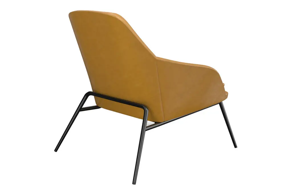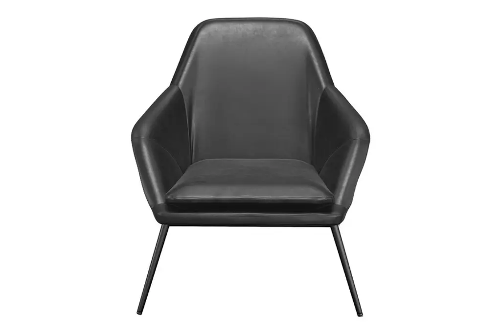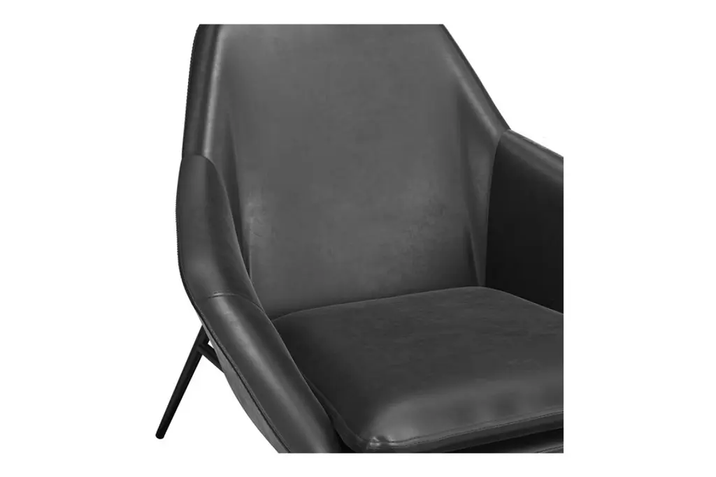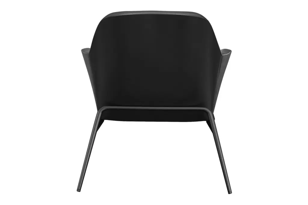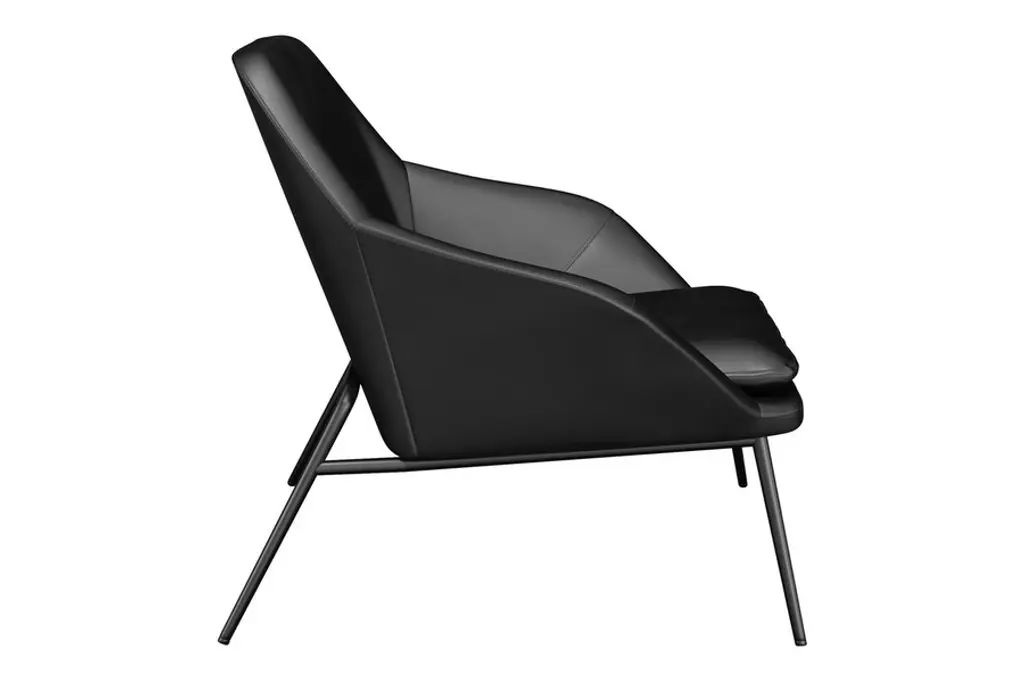The Belmont Lounge Chair has a classic polished design with sharp geometric angles. It is fully padded in plush cushioning upholstered in a smooth vegan leather. Its stately design features a high backrest, ergonomic contoured seat and soft sloping arms for exceptional comfort and lumbar support. Its tapered and splayed legs add an element of Danish-inspired sophistication to its overall aesthetic. You also have the choice of leatherette color to meet your style preferences. Supported by a strong black steel frame, this type of lounge chair will be around for a long time, giving you heaps of good use for years to come.