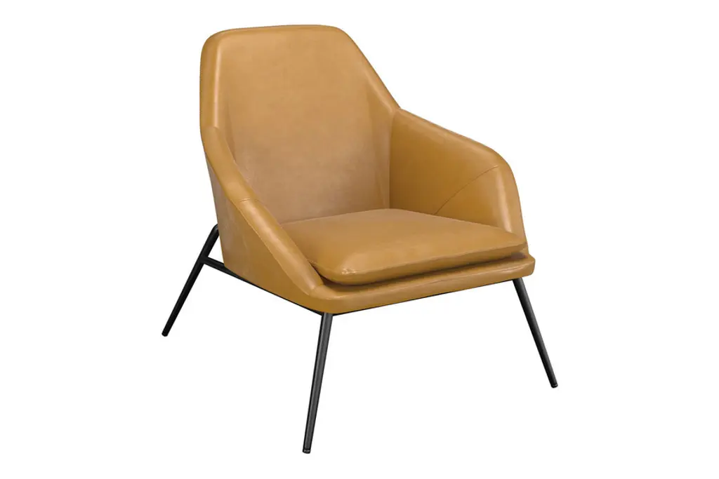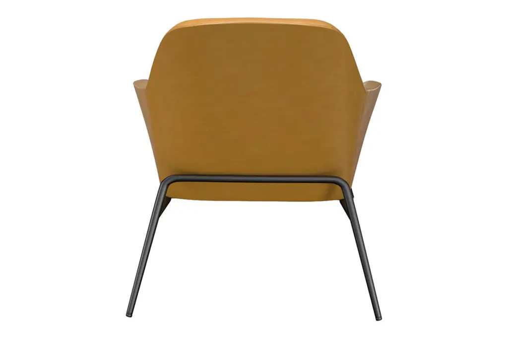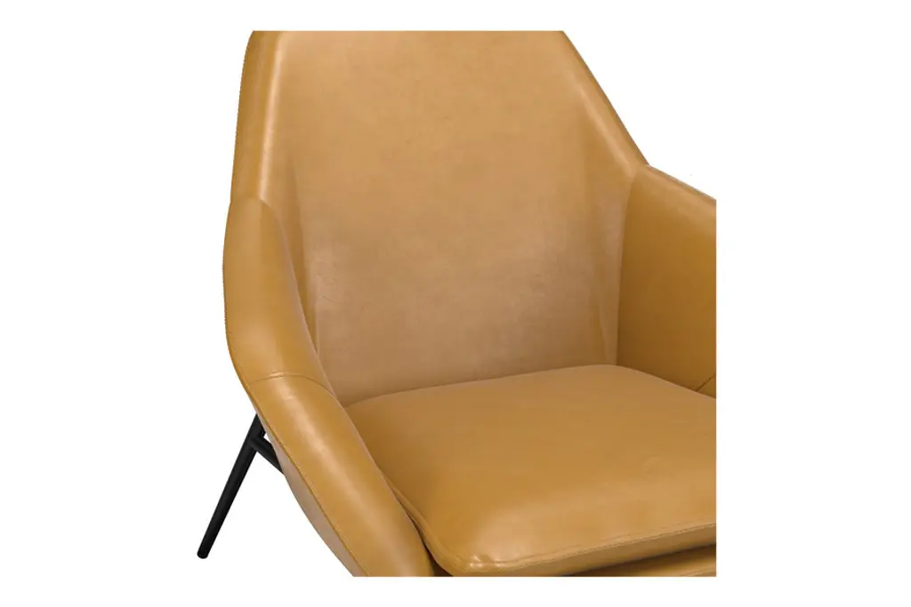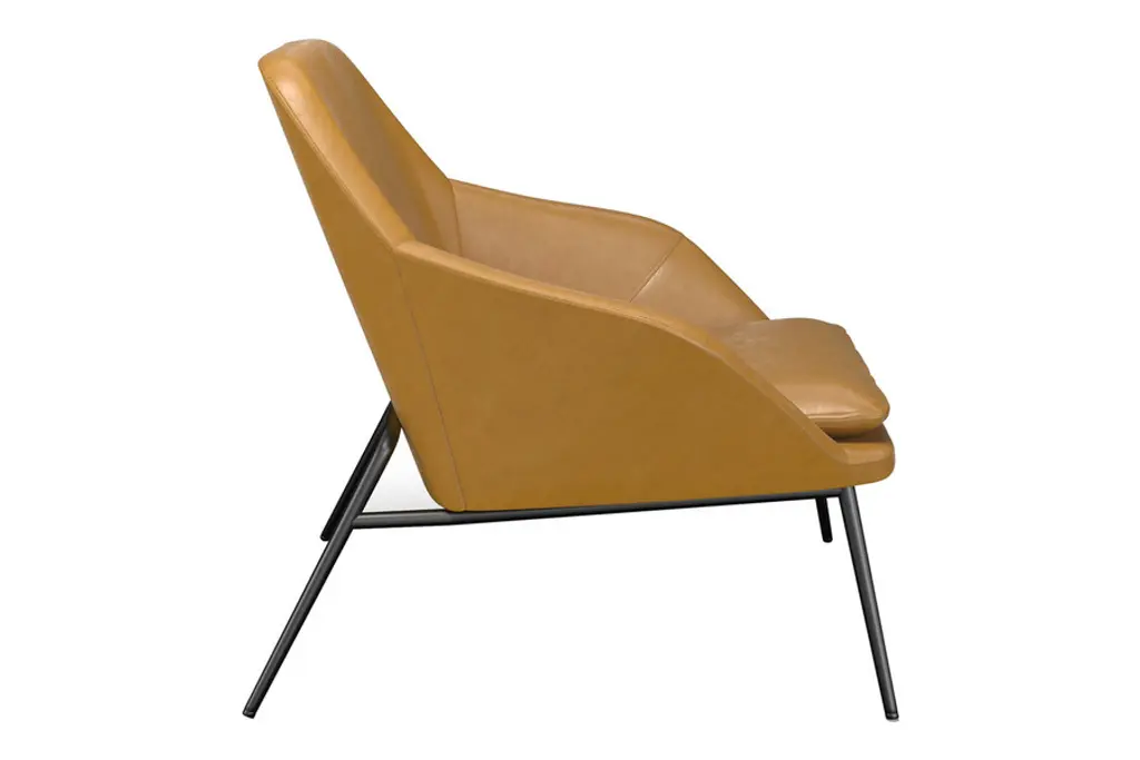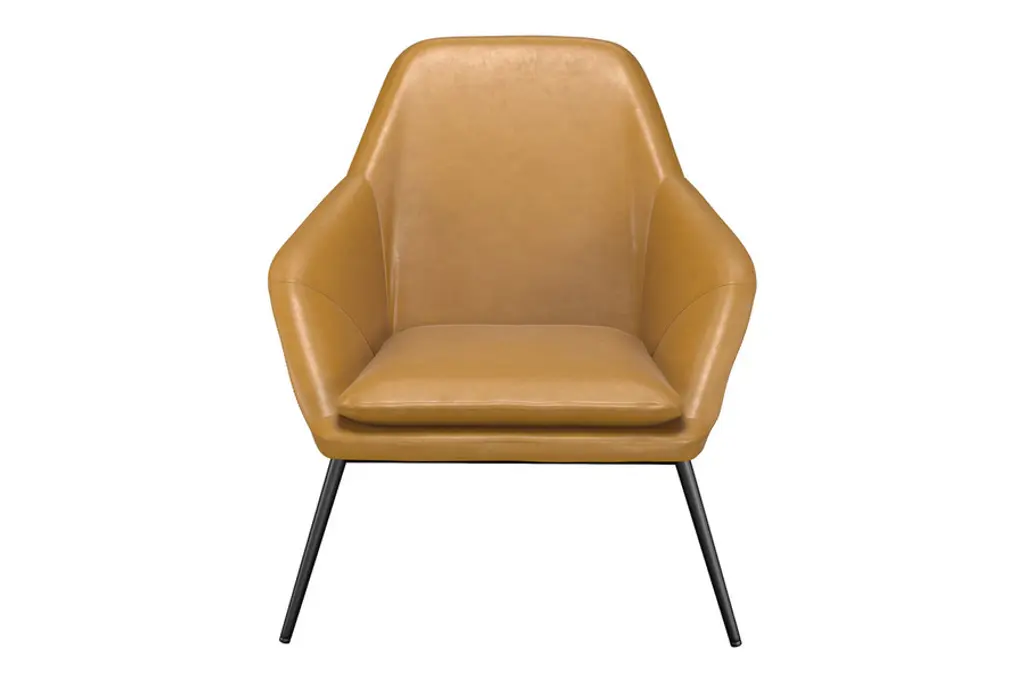The Belmont Lounge Chair has a classic polished design with sharp geometric angles. It is fully padded in plush cushioning upholstered in a smooth vegan leather. Its stately design features a high backrest, ergonomic contoured seat and soft sloping arms for exceptional comfort and lumbar support. Its tapered and splayed legs add an element of Danish-inspired sophistication to its overall aesthetic. You also have the choice of leatherette color to meet your style preferences. Supported by a strong black steel frame, this type of lounge chair will be around for a long time, giving you heaps of good use for years to come.