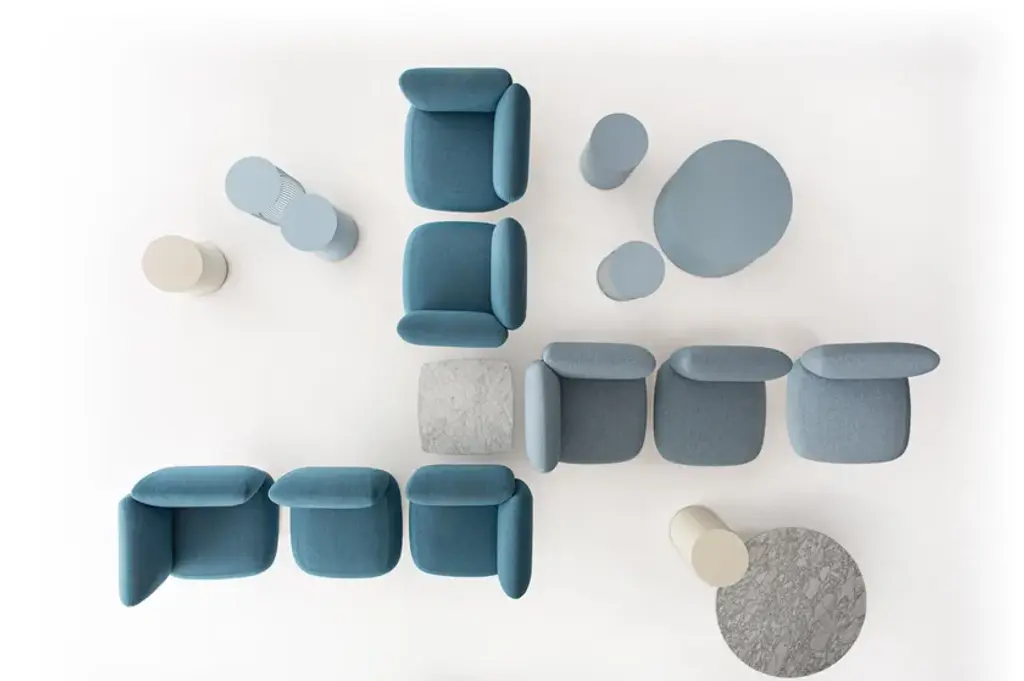 Bernard is an easy chair with flame-retardant undeformable polyurethane foam of different densities padding and metal structure.- Reinforced frame for public area use- Flame-retardant polyurethane foam- Undeformable polyurethane foam of different densities- Reinforced stitching with carbon fiber support- Bases customizable with other colors on customer’s requestBernard is a complete and versatile collection, suitable in both residential and contract. The original core is represented by a sophisticated small armchair, which stands out for the double seat direction, obtained thanks to the design of identical modules for the backrest and armrest, which can freely vary their function. Beside the small armchair: the two and three seater sofa, ottomans, lounge chair and two tables characterized by the same lightweight metal seat structure. Thanks to the plurality of available elements, Bernard allows to create original and always comfortable compositions.